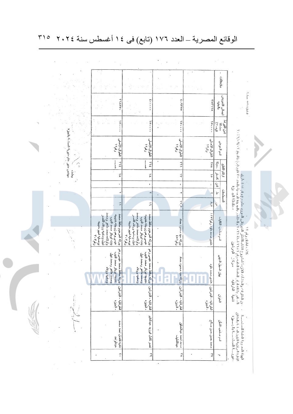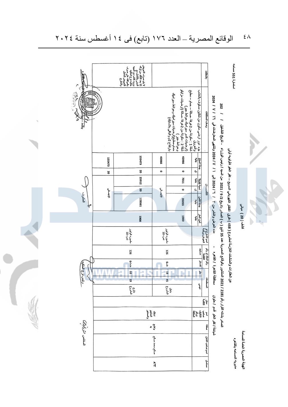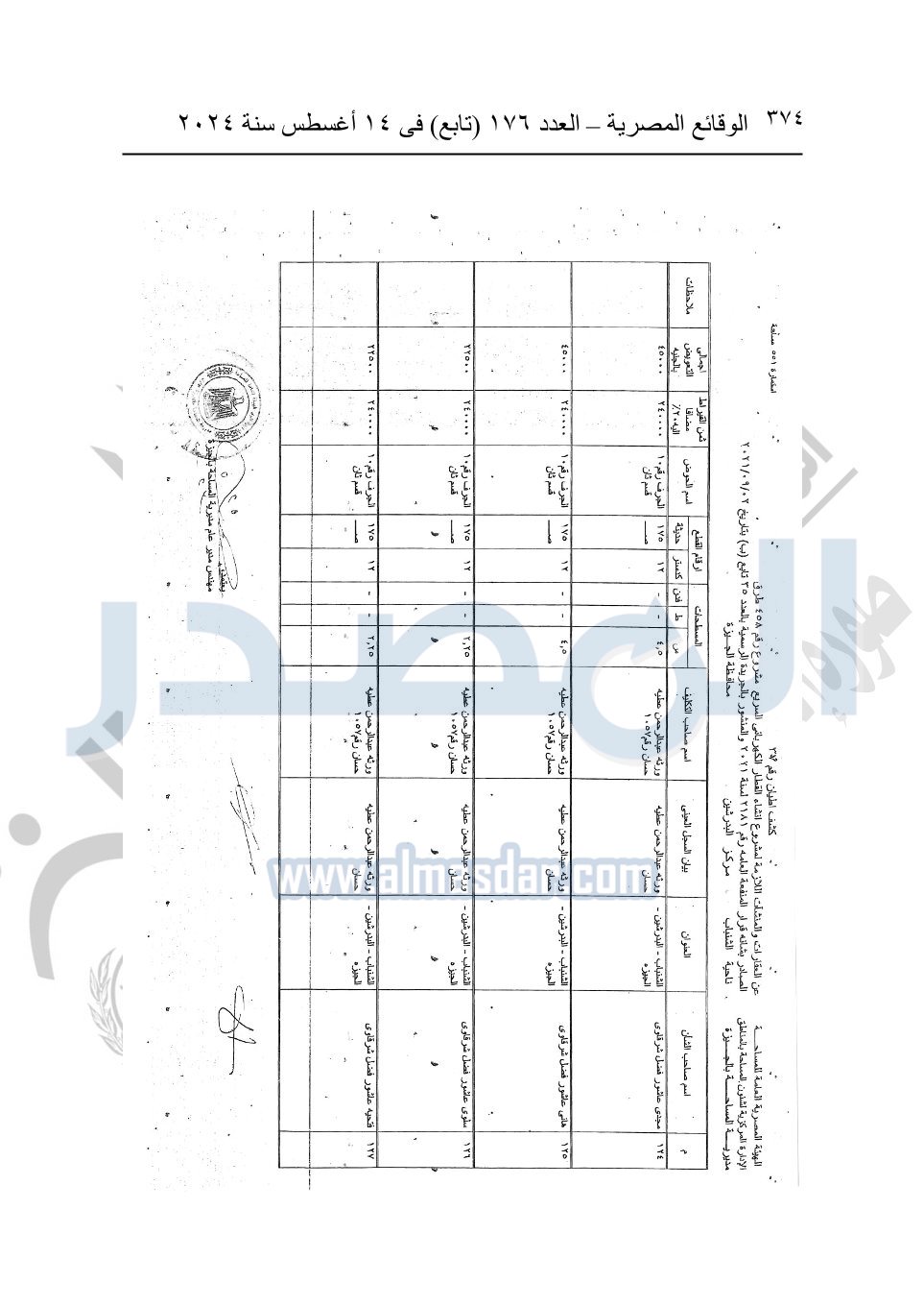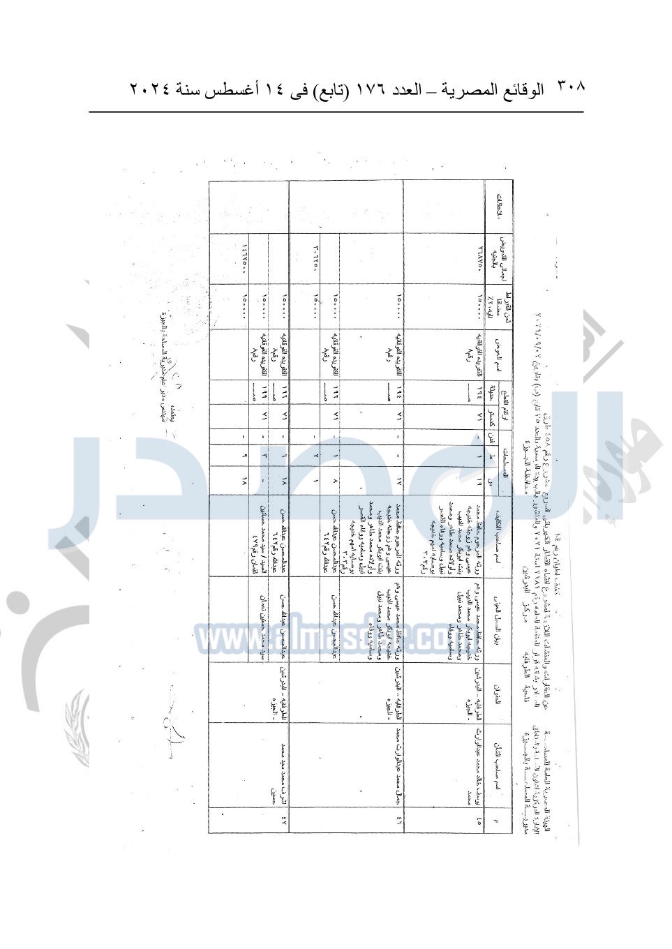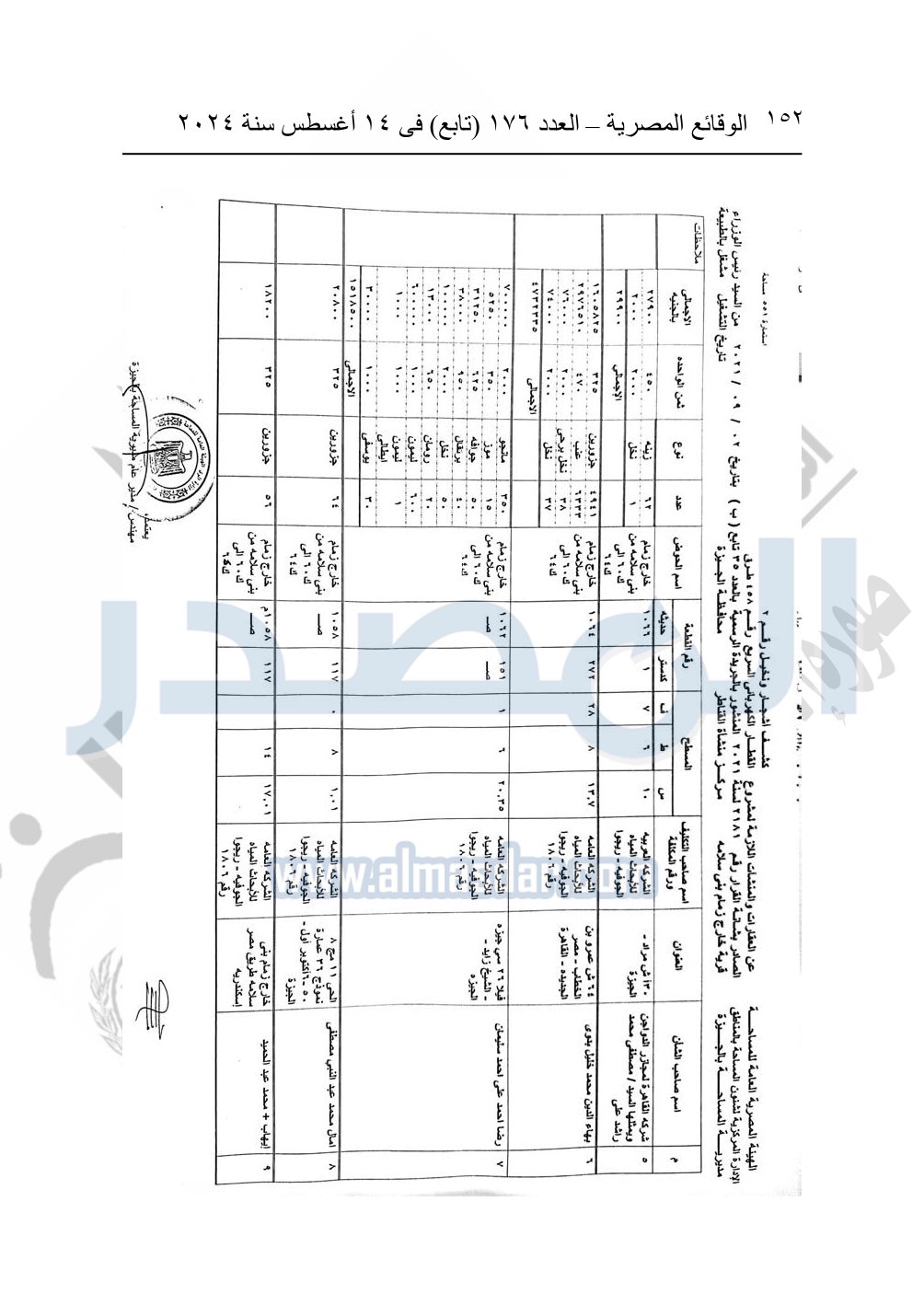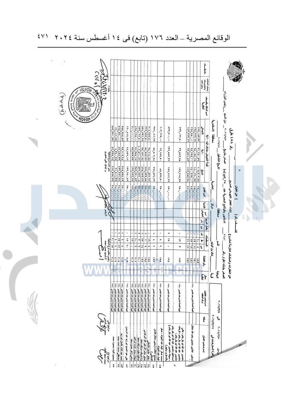 نشرت الوقائع المصرية في العدد 176 "تابع"، في 14 أغسطس 2024، قرار وزارة النقل رقم 456 لسنة 2024، صادر في 17-7-2024، بشأن نزع ملكية بعض الأراضي والعقارات لتنفيذ مشروع القطار الكهربائي السريع.