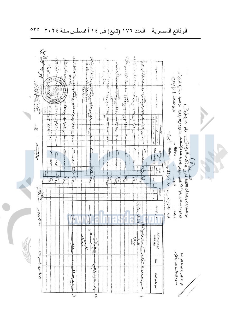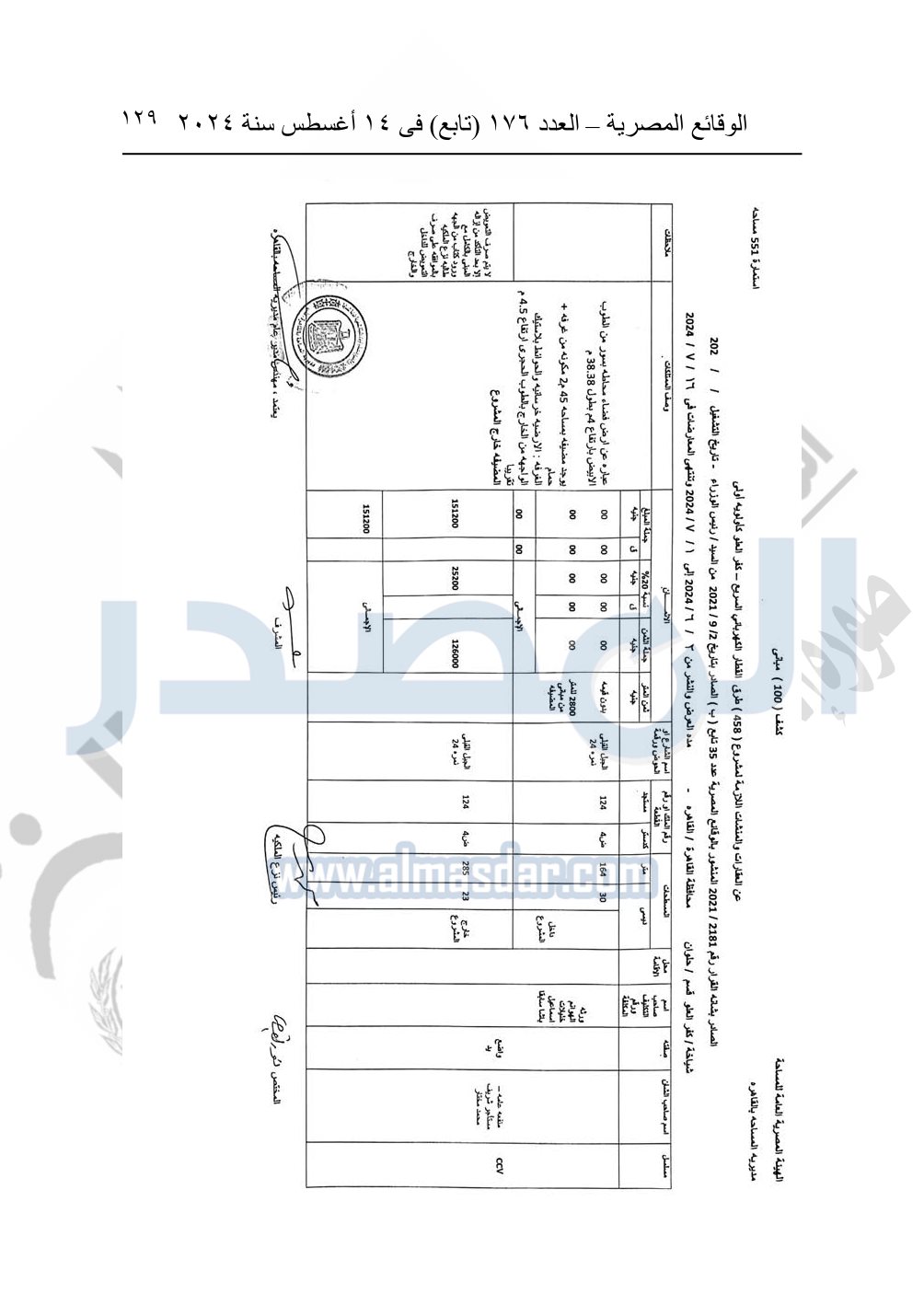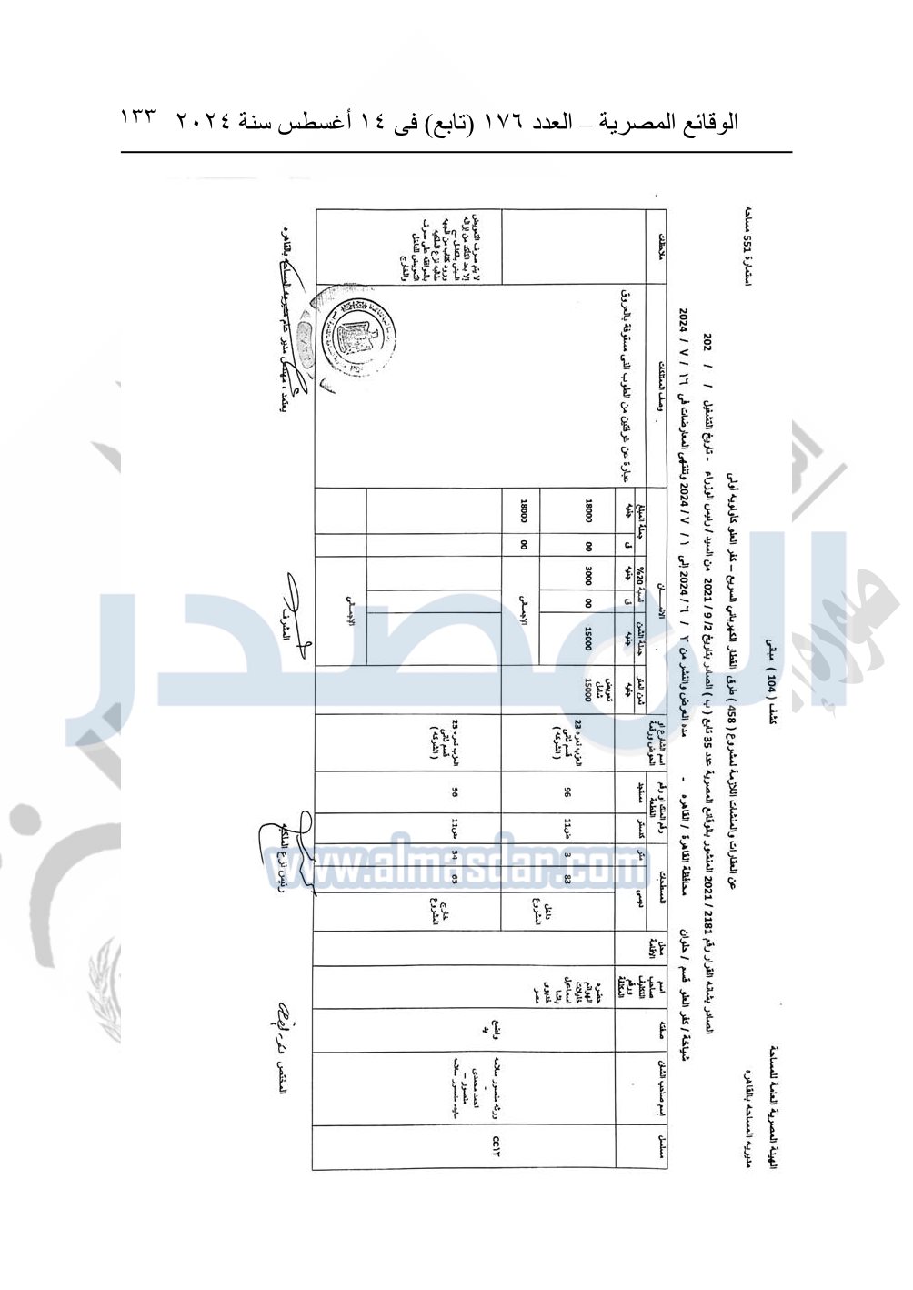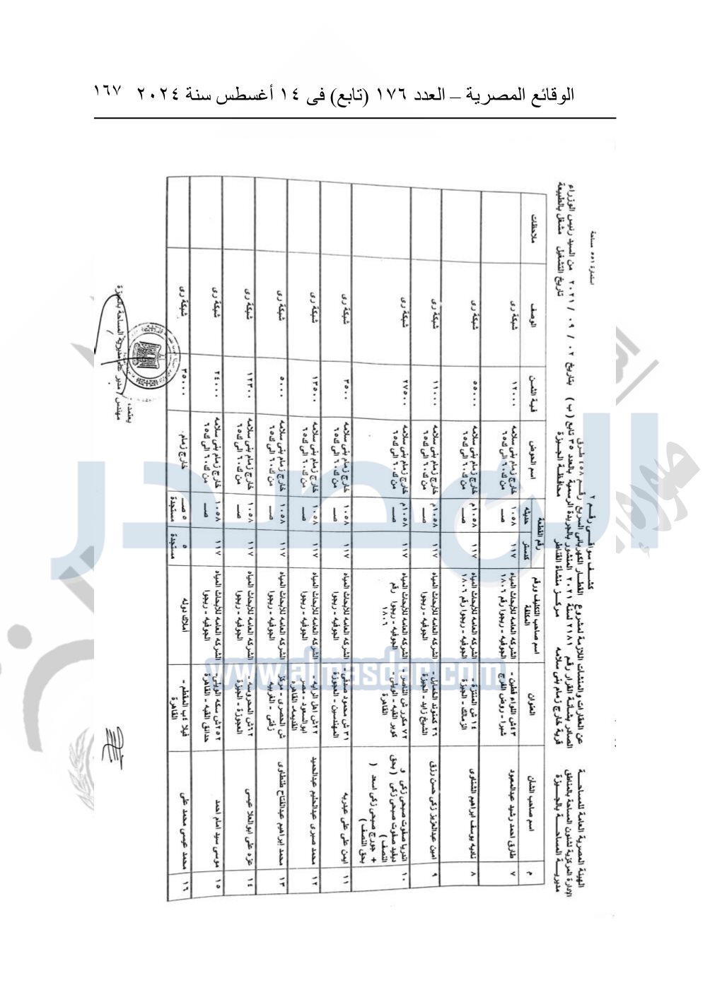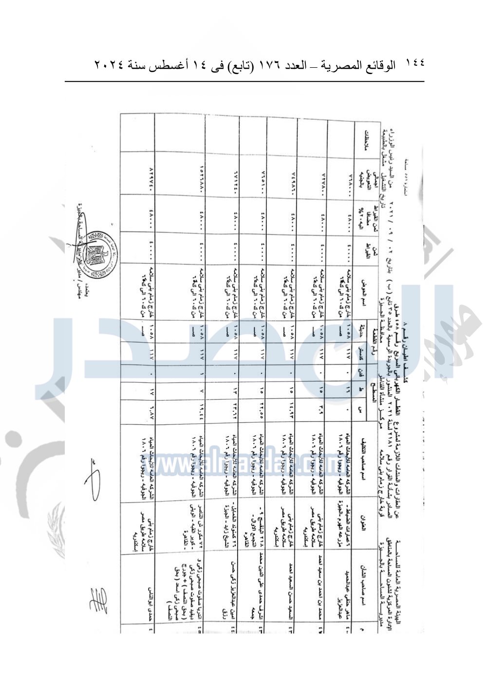 نشرت الوقائع المصرية في العدد 176 "تابع"، في 14 أغسطس 2024، قرار وزارة النقل رقم 456 لسنة 2024، صادر في 17-7-2024، بشأن نزع ملكية بعض الأراضي والعقارات لتنفيذ مشروع القطار الكهربائي السريع.
