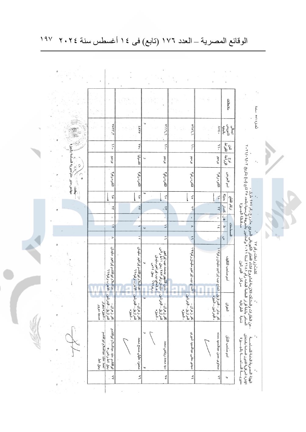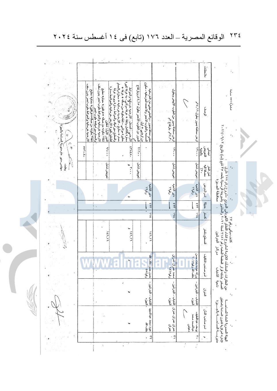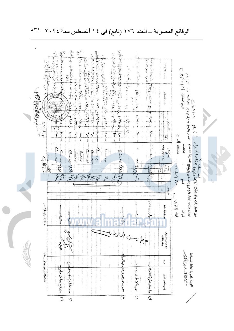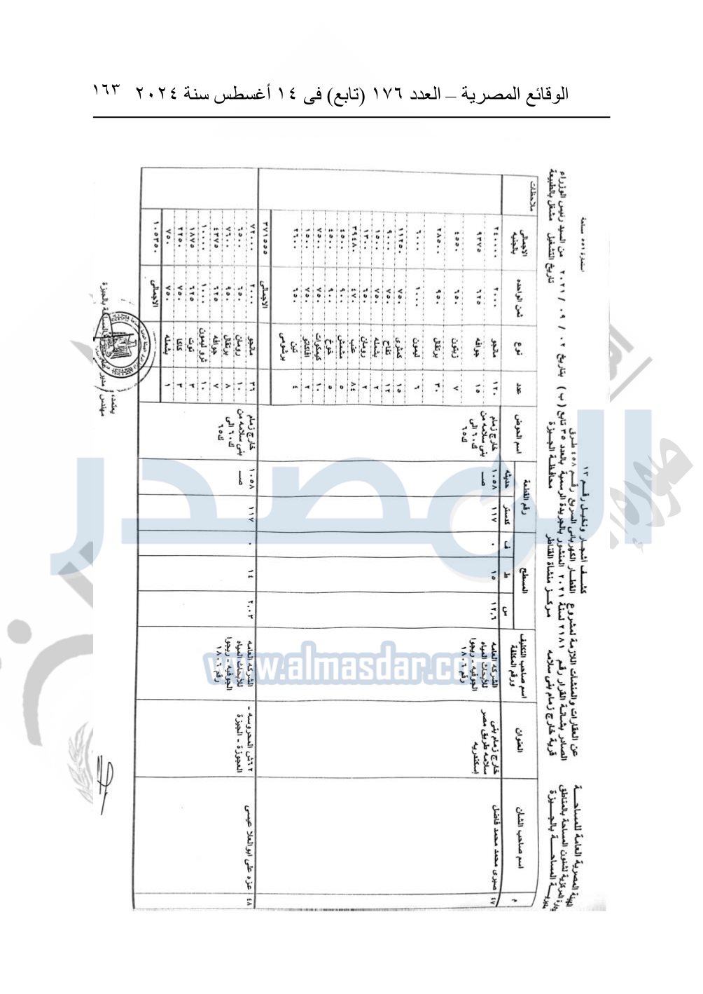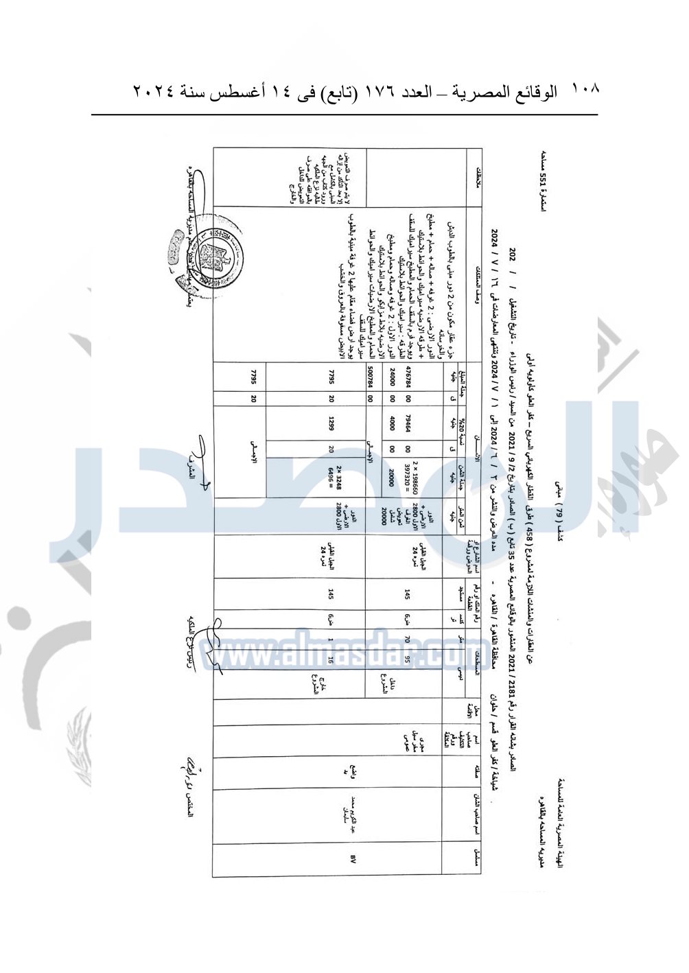 نشرت الوقائع المصرية في العدد 176 "تابع"، في 14 أغسطس 2024، قرار وزارة النقل رقم 456 لسنة 2024، صادر في 17-7-2024، بشأن نزع ملكية بعض الأراضي والعقارات لتنفيذ مشروع القطار الكهربائي السريع.