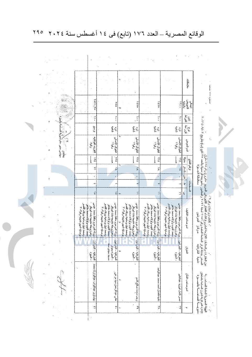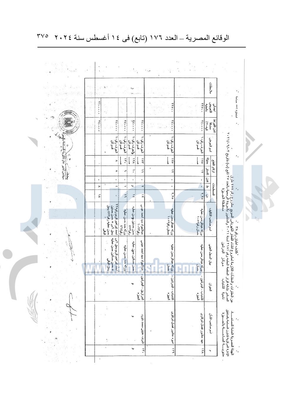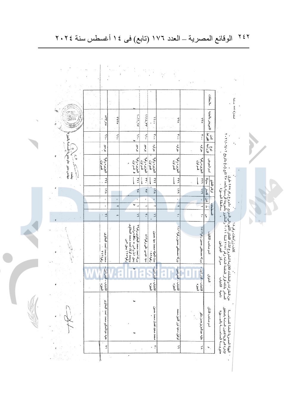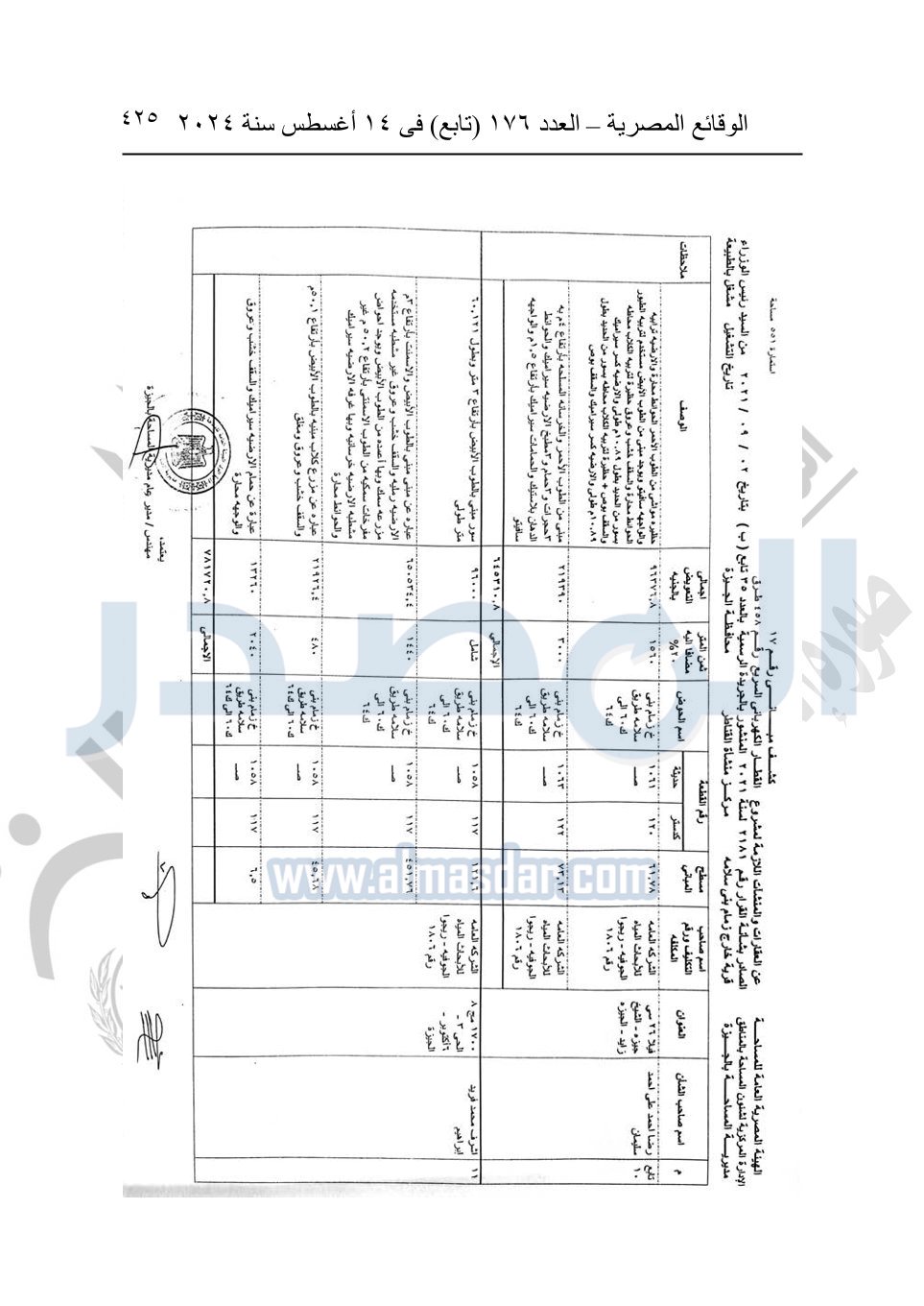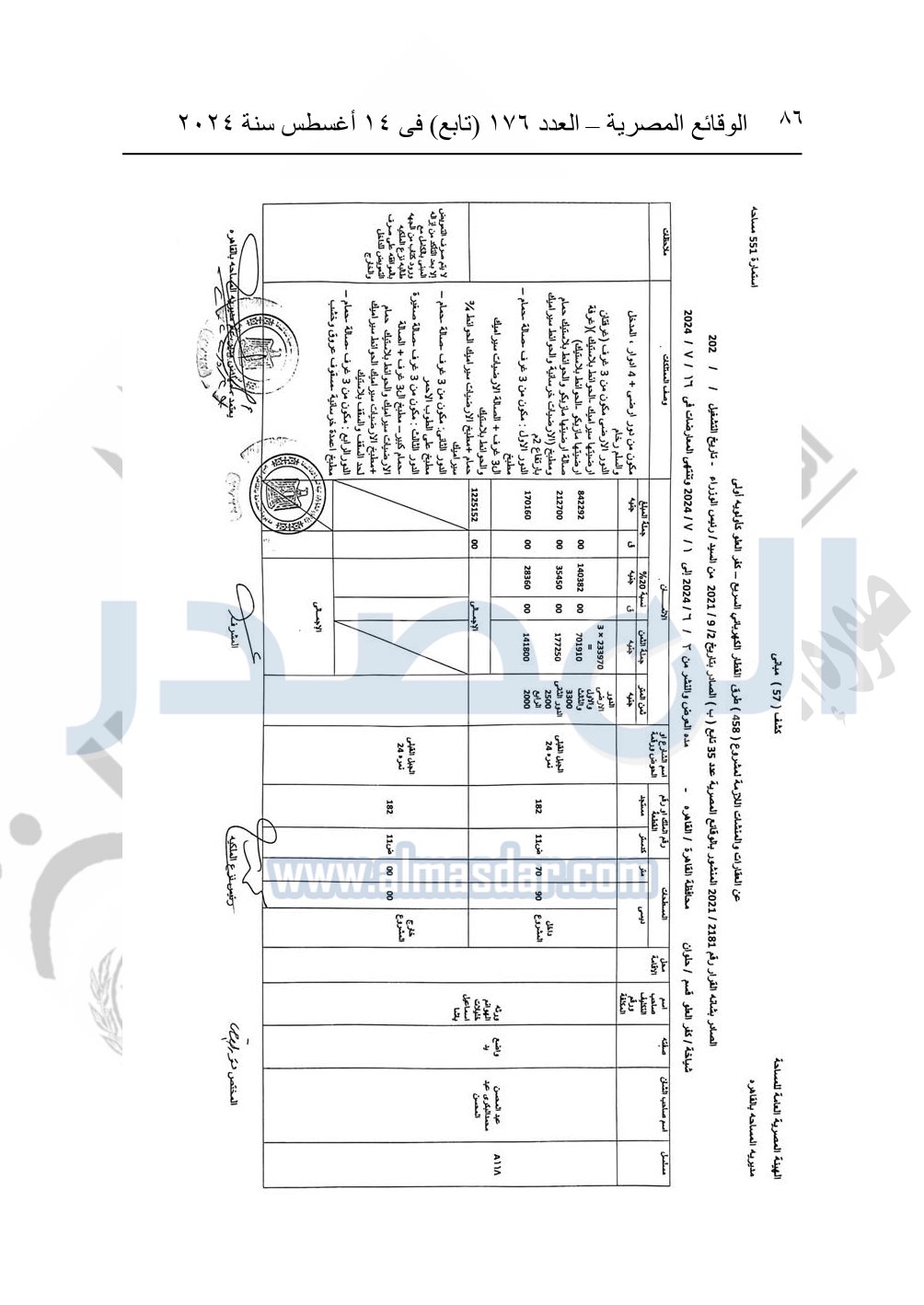نشرت الوقائع المصرية في العدد 176 "تابع"، في 14 أغسطس 2024، قرار وزارة النقل رقم 456 لسنة 2024، صادر في 17-7-2024، بشأن نزع ملكية بعض الأراضي والعقارات لتنفيذ مشروع القطار الكهربائي السريع.