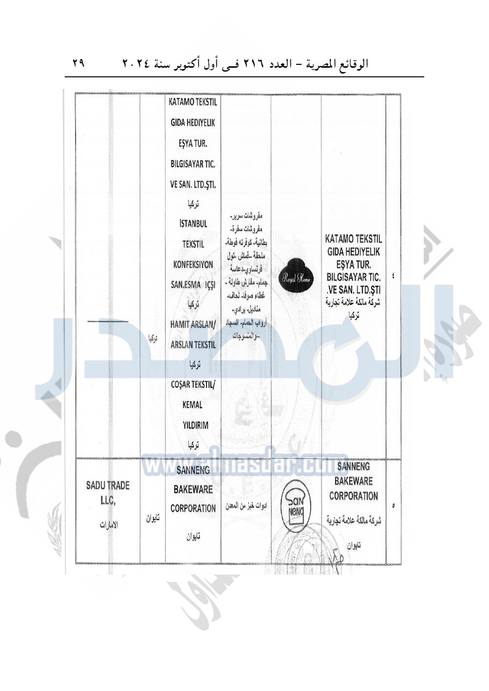كما نشرت الوقائع المصرية في العدد 216، قرار الهيئة العامة للرقابة على الصادرات والواردات رقم 1248 لسنة 2024، بشأن قيد بعض المصانع والشركات مالكة العلامات التجارية المستوفاة لقواعد تسجيل المصانع المؤهلة لتصدير منتجاتها إلى جمهورية مصر العربية.