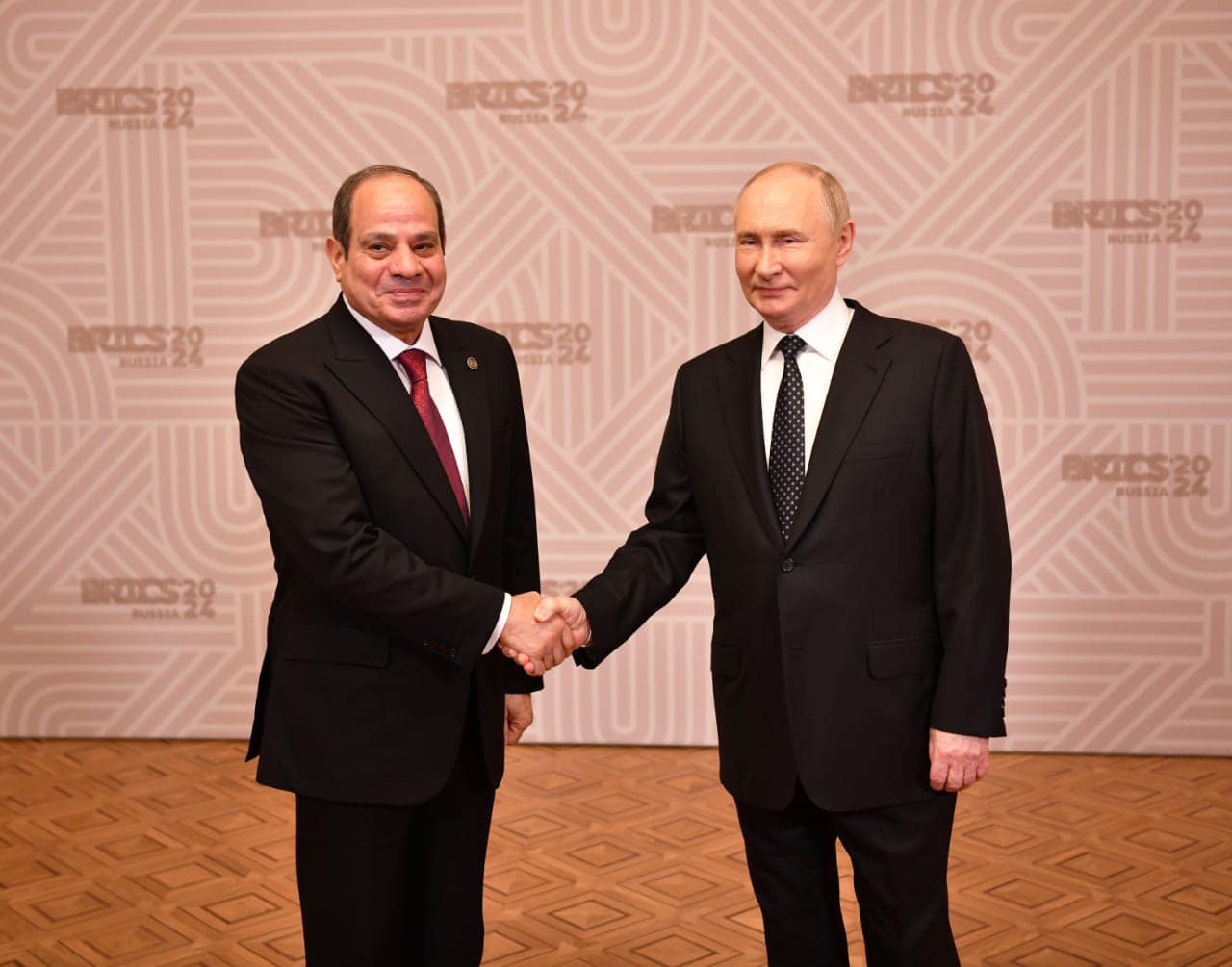 وعقد الرئيسان جلسة مباحثات موسعة، رحب خلالها الرئيس بوتين بزيارة الرئيس إلى روسيا، معرباً عن سعادته بالمشاركة الأولى لمصر كعضو بتجمع البريكس، ومؤكداً أن انضمام مصر للتجمع يمثل إضافة لمسارات عمله، ويساهم في تعزيز دوره كمنصة لتعزيز التعاون متعدد الأطراف بين الدول النامية.