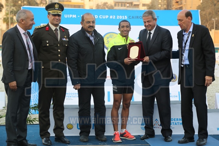 بالصور .. وزير "الرياضة" يتوج الفائزين بالمراكز الأولى ببطولة كأس العالم للخماسي الحديث