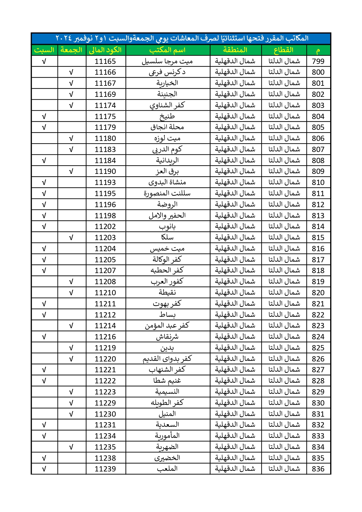 وأوضحت، أنه تقرر تشغيل 2500 مكتب بريد بجميع المحافظات على مستوى الجمهورية، إلى جانب جميع الأكشاك البريدية وسيارات البريد المتنقلة يومي "الجمعة والسبت" الموافقين 1، 2 نوفمبر 2024؛ على أن تبدأ مواعيد العمل يوم الجمعة من الساعة الواحدة ظهرًا حتى الساعة الثامنة مساءً، ويوم السبت ابتداءً من الساعة الثامنة صباحًا حتى الساعة الثالثة عصرًا؛ وذلك بهدف تسهيل حصول أصحاب المعاشات على مستحقاتهم المالية بكل سهولة ويسر".