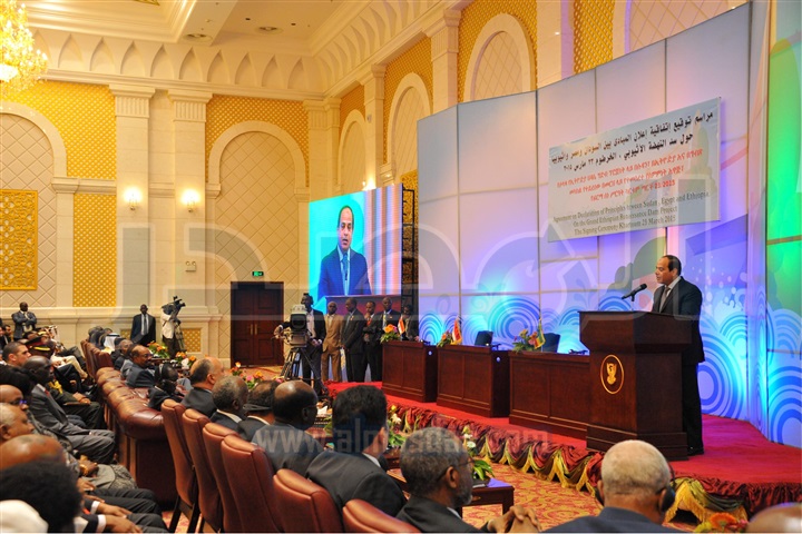 وصرح السفير علاء يوسف، المتحدث الرسمي باسم رئاسة الجمهورية، بأنه عقب إجراء مراسم الاستقبال الرسمي التي شملت استعراض حرس الشرف وعزف السلامين الوطنيين، توجه الرئيسان إلى القصر الجمهوري بالخرطوم، حيث تم عقد جلسة مباحثات ثلاثية مُغلقة بمشاركة رئيس الوزراء الإثيوبي "هيلاماريام ديسالين"، تلتها جلسة مباحثات موسعة بحضور وفود الدول الثلاث. وتلى ذلك مراسم التوقيع على إعلان المبادئ الخاص بسد النهضة الإثيوبي، بمشاركة عدد من ممثلي بعض دول حوض النيل.