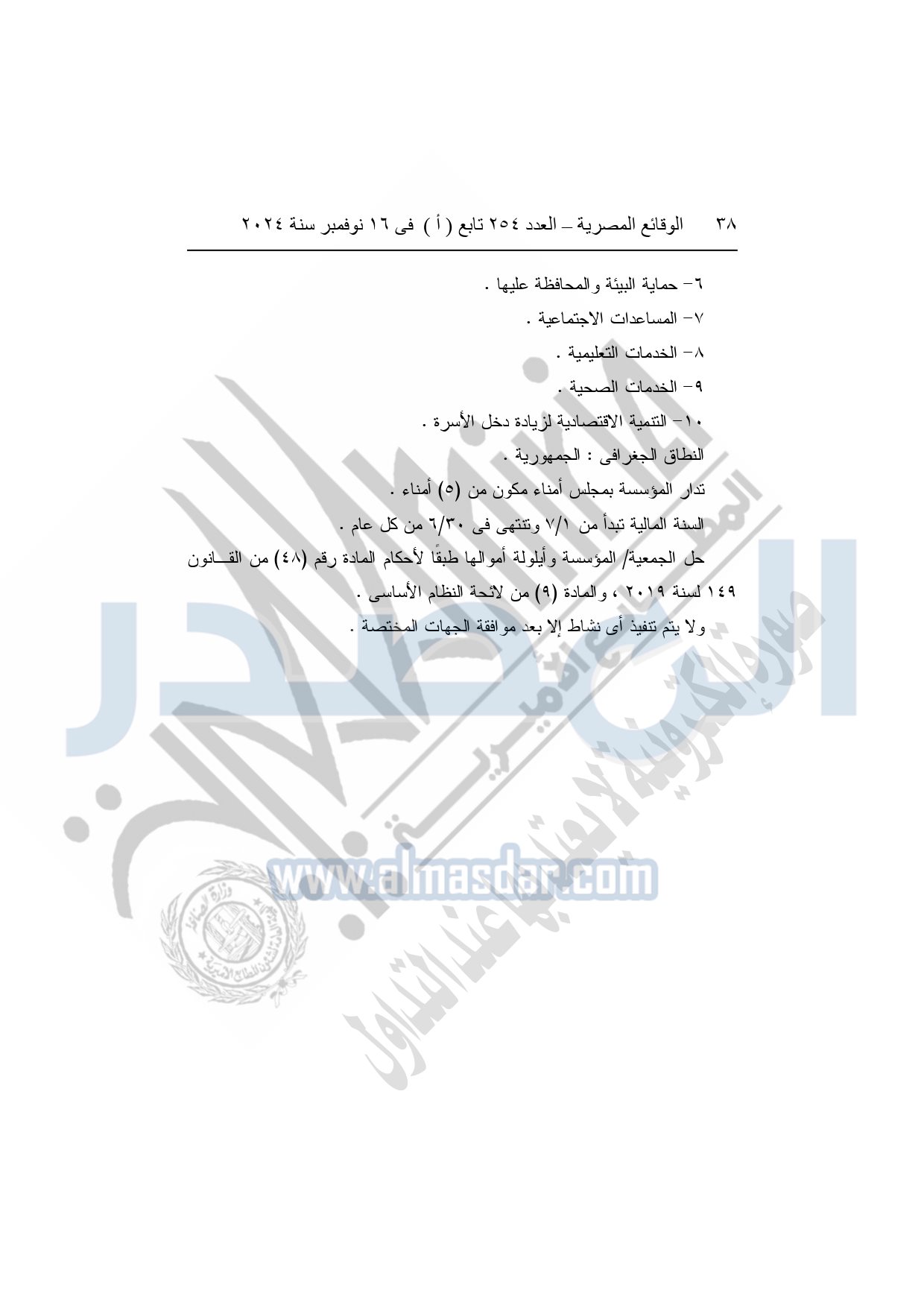 كما نشرت الوقائع المصرية في العدد 254 تابع "أ"، بتاريخ 16 نوفمبر 2024، قرار مديرية التضامن الاجتماعي بمحافظة الشرقية، الخاص بقيد رقم 3857، بشأن قيد لائحة النظام الأساسي لمؤسسة جوار البيت للتنمية بمنيا القمح.