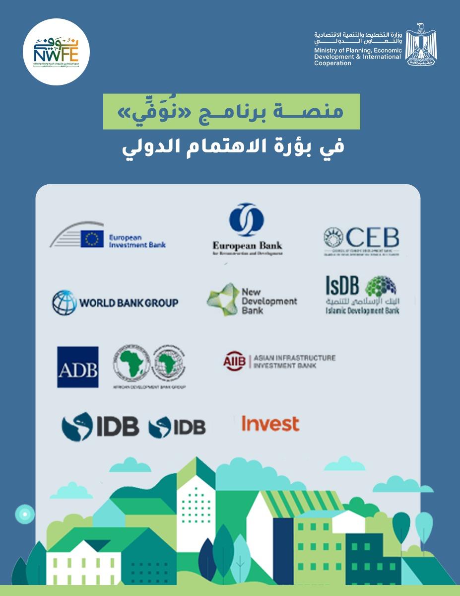 وأشادت بنوك التنمية مُتعددة الأطراف، بالمنصة الوطنية لبرنامج «نُوَفِّي»، التي أطلقتها مصر عام 2022، من أجل تعزيز استراتيجيات الاستثمار الأخضر، موضحين أن المنصة التي أطلقتها مصر تُركز على العلاقة بين المياه والغذاء والطاقة، التي حددتها البلاد كجزء من المجالات ذات الأولوية للمناخ والتنمية، وبالتالي تُسهم المنصة المصرية في التخفيف من آثار تغير المناخ والتكيف معه، ودعم القدرة على الصمود، والانتقال العادل في إطار أهداف بيئة أوسع عبر قطاعات الطاقة والنقل والمياه والزراعة.