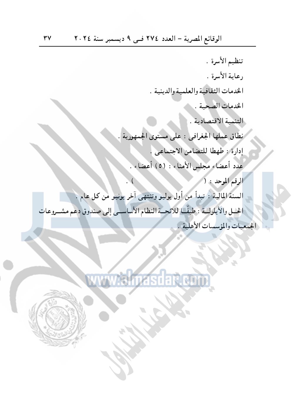 نشرت الوقائع المصرية في العدد 274، بتاريخ 9 ديسمبر 2024، قرار وزارة التضامن الاجتماعي بالإسكندرية، الخاص بقيد رقم 4491، بتاريخ 15-10-2024، بشأن قيد مؤسسة سعد الدين الخيرية.