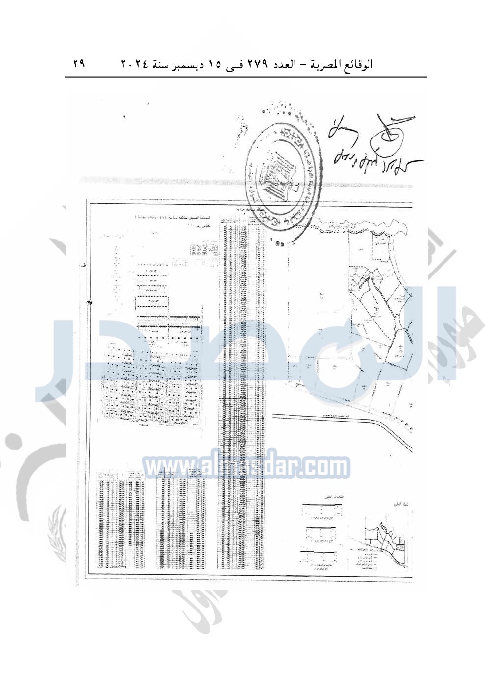 يعتمد المخطط العام لقطعة الأرض البالغ مساحتها 7274677م2 وكذا المخطط التفصيلي المنطقة الوحدات الفندقية رقم "15" بمساحة 445657م2 الكائنة بسيدى حنيش - منطقة رأس الحكمة - مطروح - بالساحل الشمالى الغربى المخصصة لشركة ألماظة للتنمية السياحية الإقامة مشروع "50%" منشأت عقارية + 50% منشأت سياحية"، وذلك طبقا للإشتراطات والحدود الموضحة على الخريطة المرفقة بهذا القرار والعقد المبرم مع الشركة بتاريخ 17-8-2023، والتي تعتبر جميعها مكملة لهذا القرار.