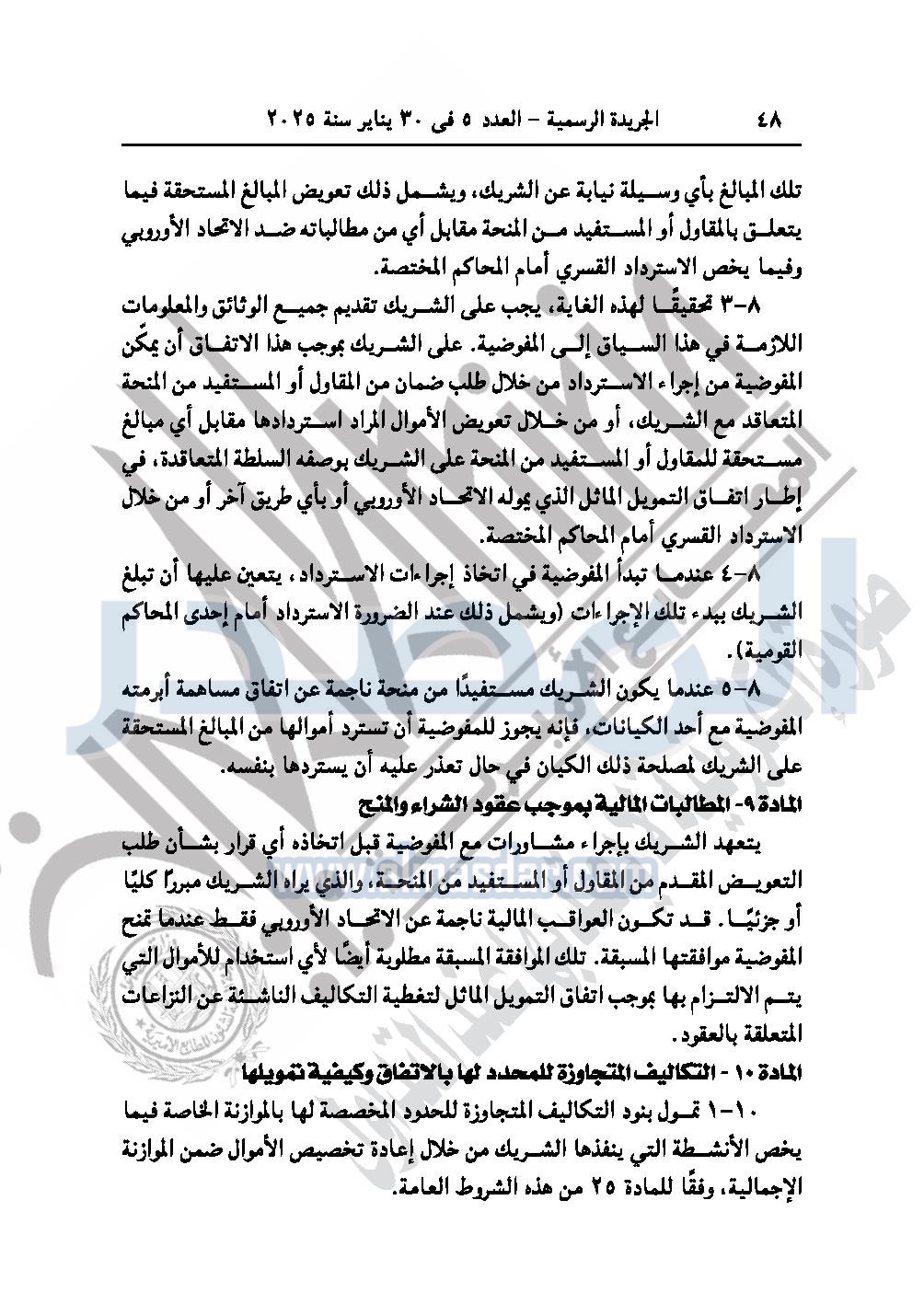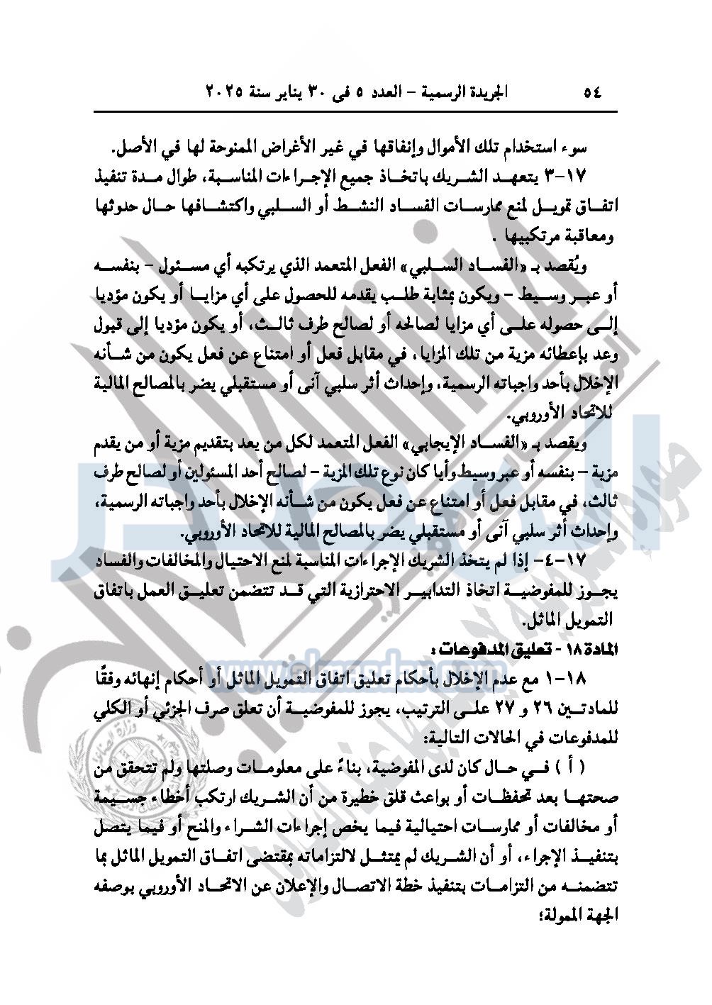 نشرت الجريدة الرسمية في العدد 5، الصادر في 30 يناير سنة 2025، قرار رئيس جمهورية مصر العربية رقم 361 لسنة 2024، بشأن الموافقة على «الاتفاق التمويلى الخاص ببرنامج دعم الاتحاد الأوروبي لتوظيف الشباب والمهارات الممول من الاتحاد الأوروبي بمنحة قدرها 25 مليون يورو»
