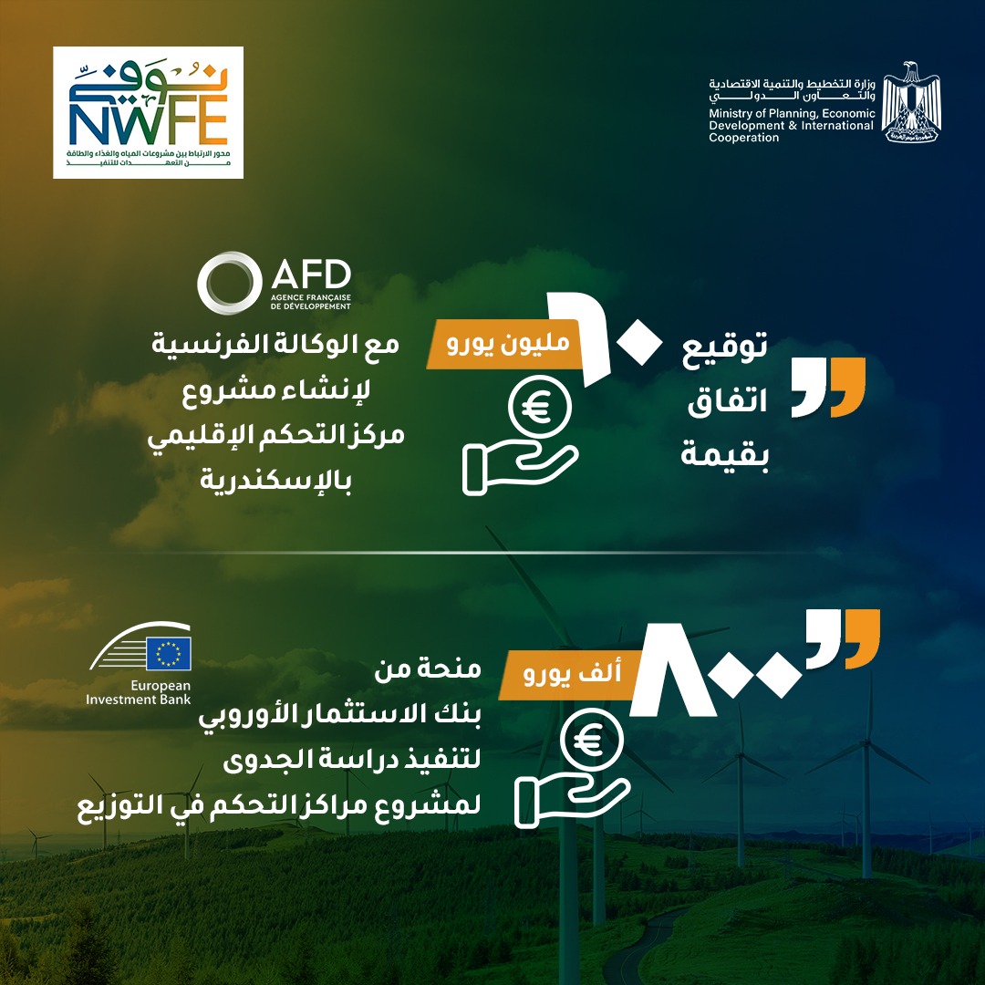 كما تم توقيع الاتفاقيات الخاصة بمشروع مركز التحكم الإقليمي بالإسكندرية مع الوكالة الفرنسية للتنمية بقيمة 60 مليون يورو متضمنة 10 ملايين يورو من الاتحاد الأوروبي، وفي سياق آخر أتاح بنك الاستثمار الأوروبي منحة بقيمة 800 ألف يورو من الاتحاد الأوروبي ويديرها البنك لتنفيذ دراسة الجدوى لمشروع مراكز التحكم في التوزيع - المرحلة الثالثة.