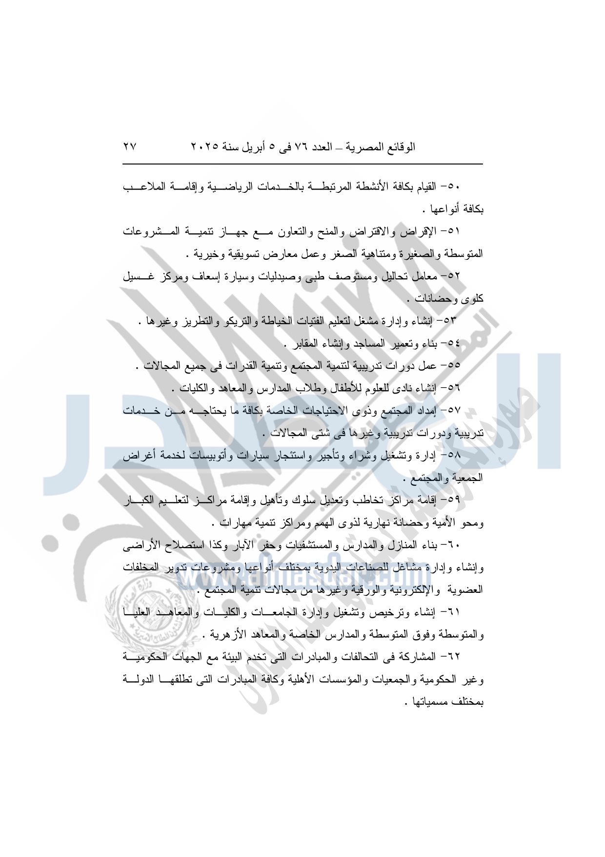 تعديل لائحة النظام الأساسي لجمعية رعاية الأسرة بالمحمودية حي المنشية الجديدة – مركز المحمودية على النحو التالي: