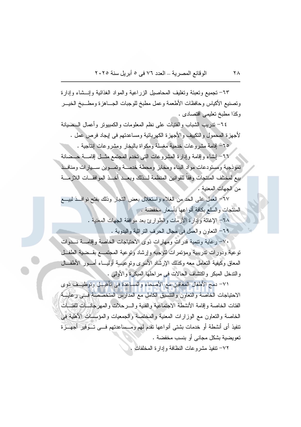 كما نشرت الوقائع المصرية في العدد 76، بتاريخ 5 أبريل 2025، قرار مديرية التضامن الاجتماعي بمحافظة البحيرة، بشأن قرار تعديل قيد لائحة النظام الأساسي لجمعية تنمية المجتمع بمعمل القزاز البلد بكفر الدوار، والمقيدة برقم 38 لسنة 2025، بتاريخ 22-2-2025.