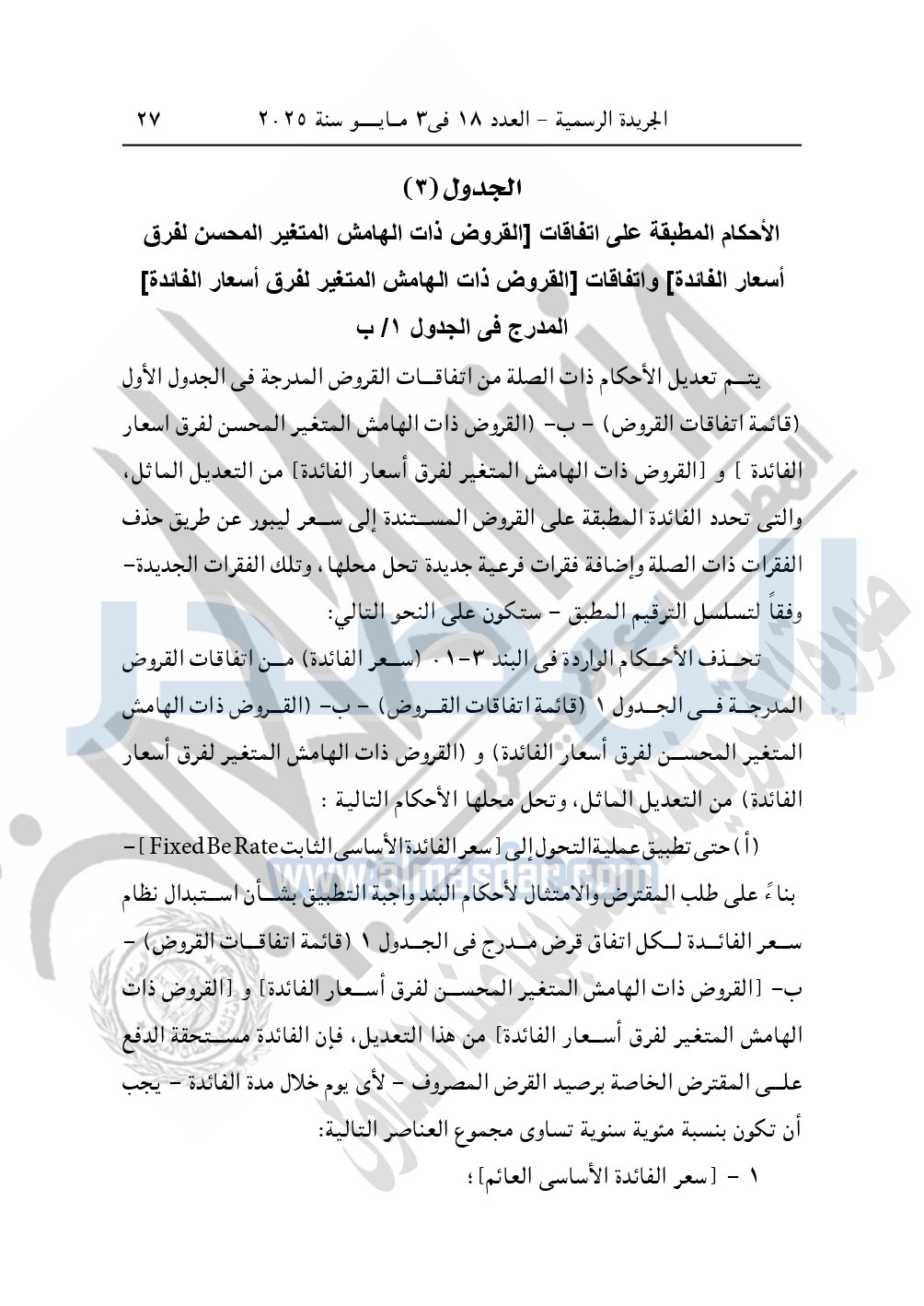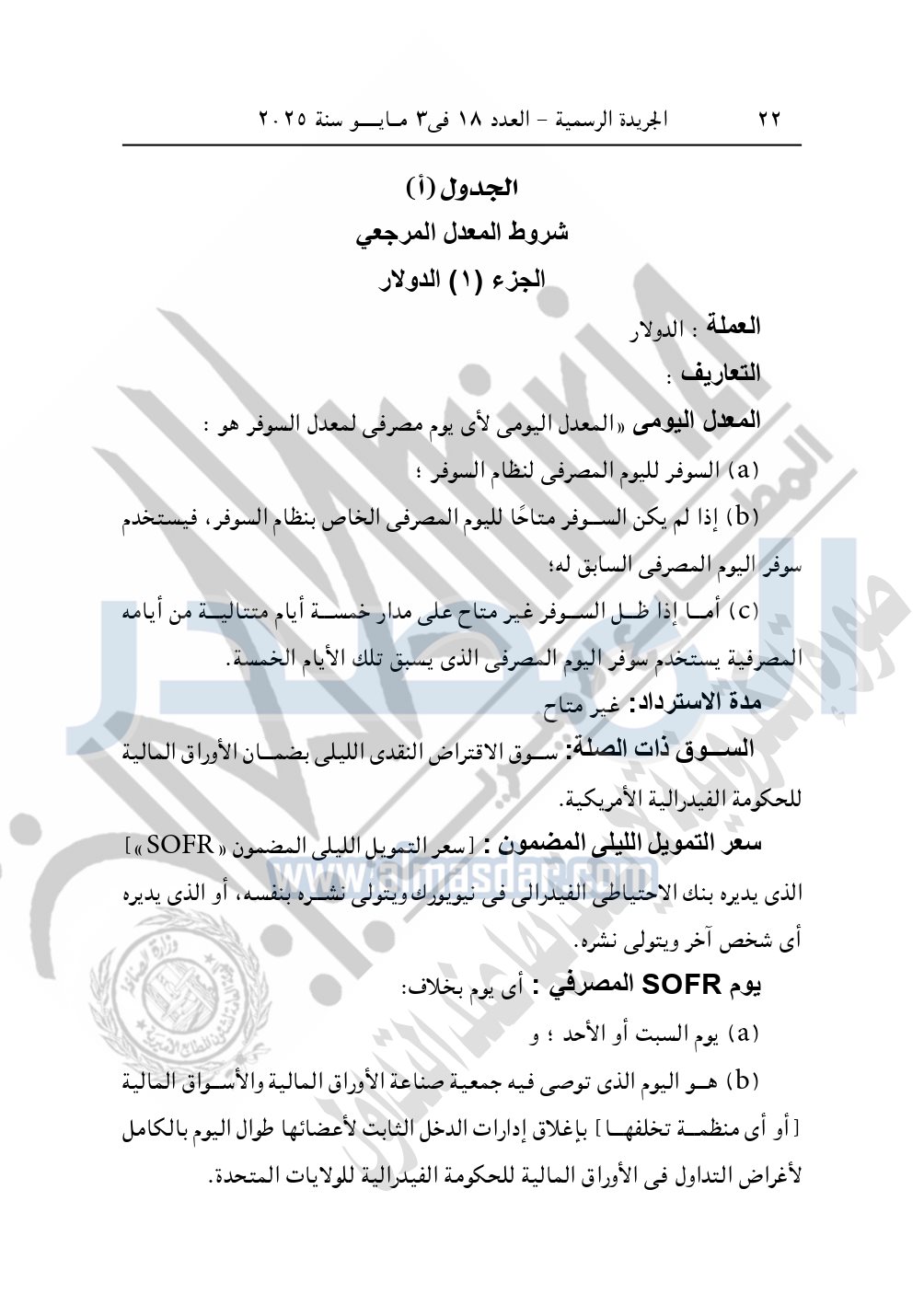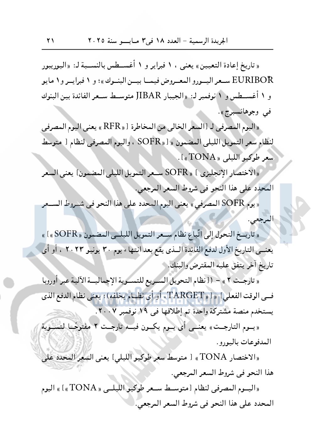 نشرت الجريدة الرسمية في العدد 18، الصادر في 3 مايو سنة 2025، قرار رئيس جمهورية مصر العربية رقم 605 لسنة 2024، بشأن الموافقة على «اتفاق التعديل الإطارى بشأن تخلى بنك التنمية الإفريقى عن الليبور LIBOR كسعر فائدة مرجعى واستبداله بالسوفر SOFR».