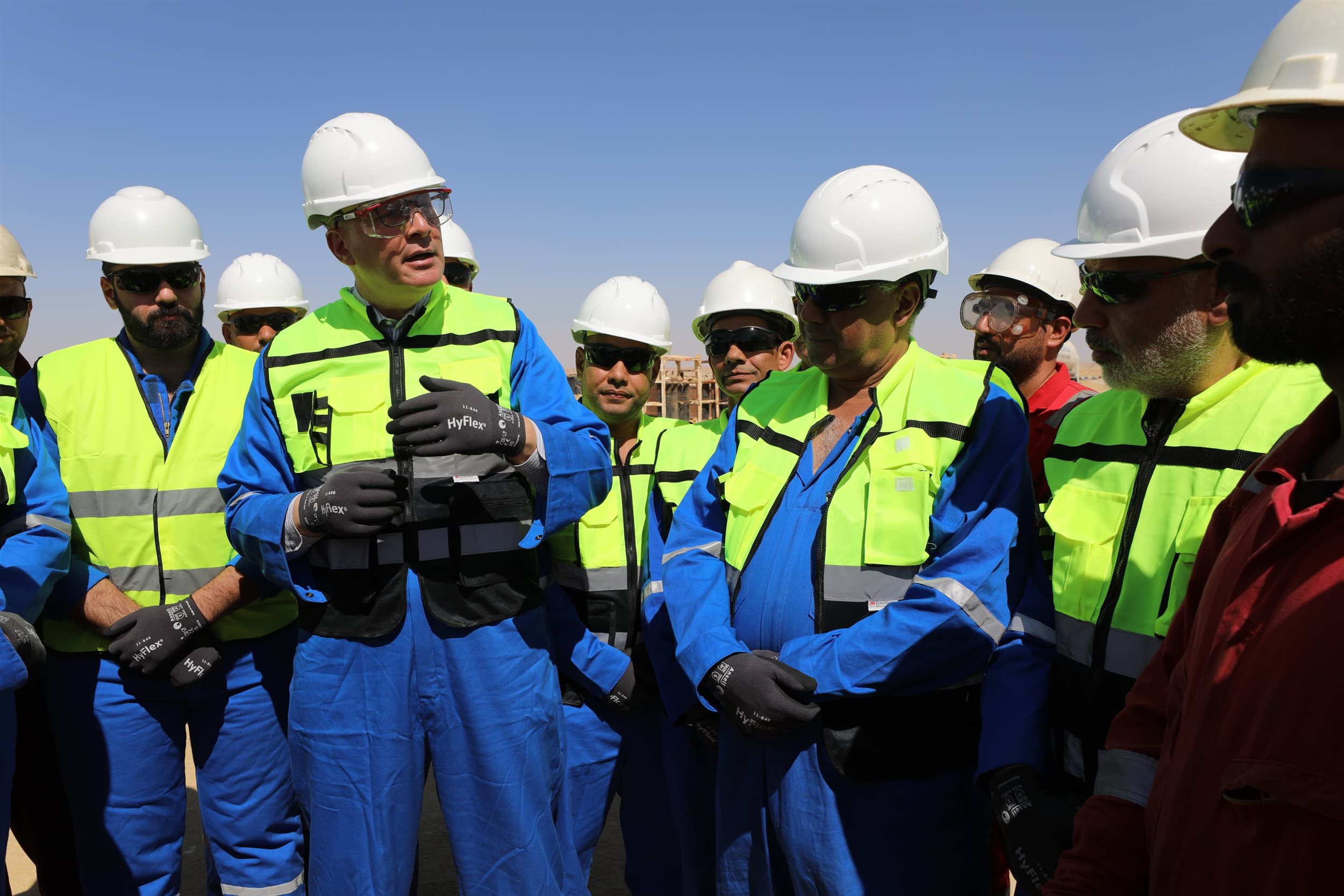 وخلال اللقاء، استمع الوزير إلى أطقم العمل لمعرفة رؤاهم حول كيفية تعجيل العمليات الإنتاجية، مع الالتزام بقواعد السلامة والصحة المهنية.