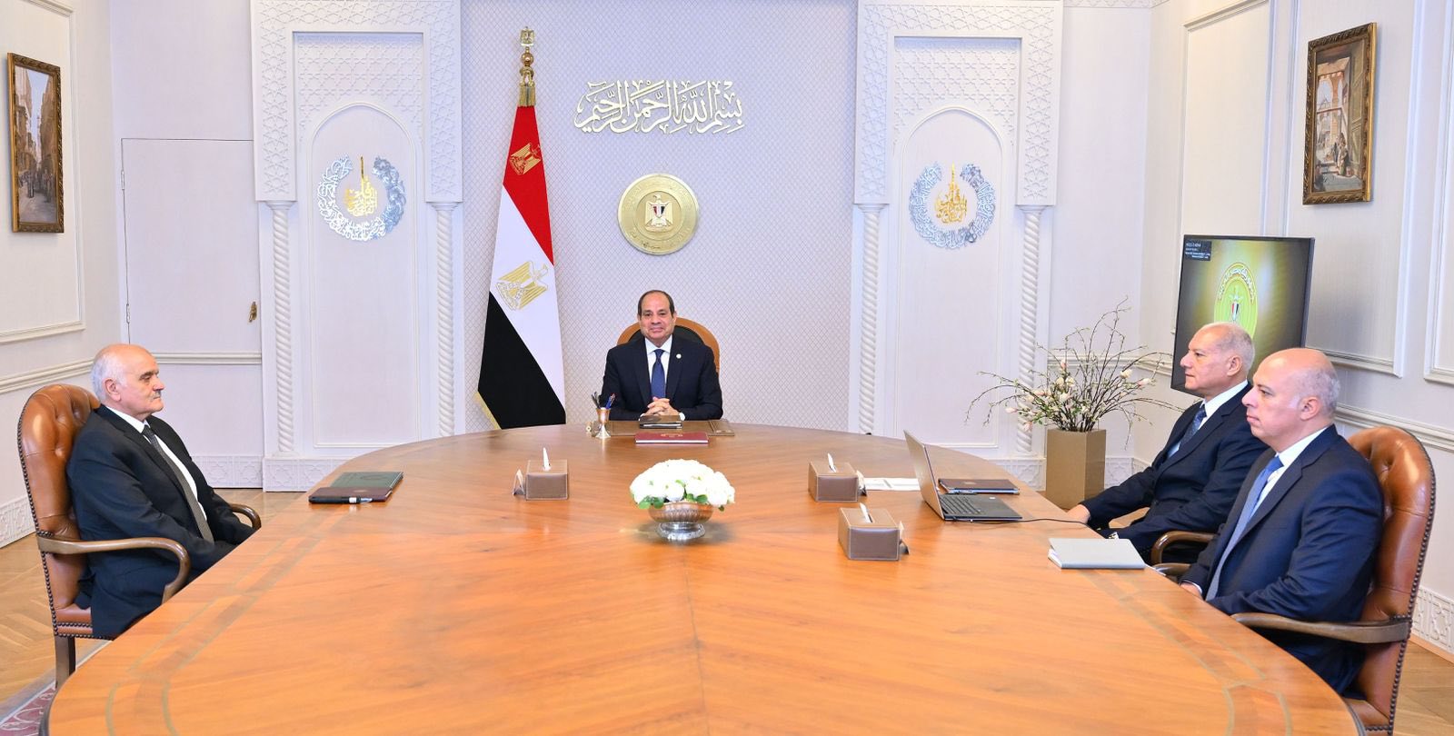 إجتمع الرئيس عبد الفتاح السيسي، اليوم، مع اللواء الغالي رئيس مجلس إدارة صندوق تكريم شهداء وضحايا ومفقودي ومصابي العمليات الحربية والإرهابية والأمنية وأسرهم، واللواء أحمد الأشعل المدير التنفيذي للصندوق.