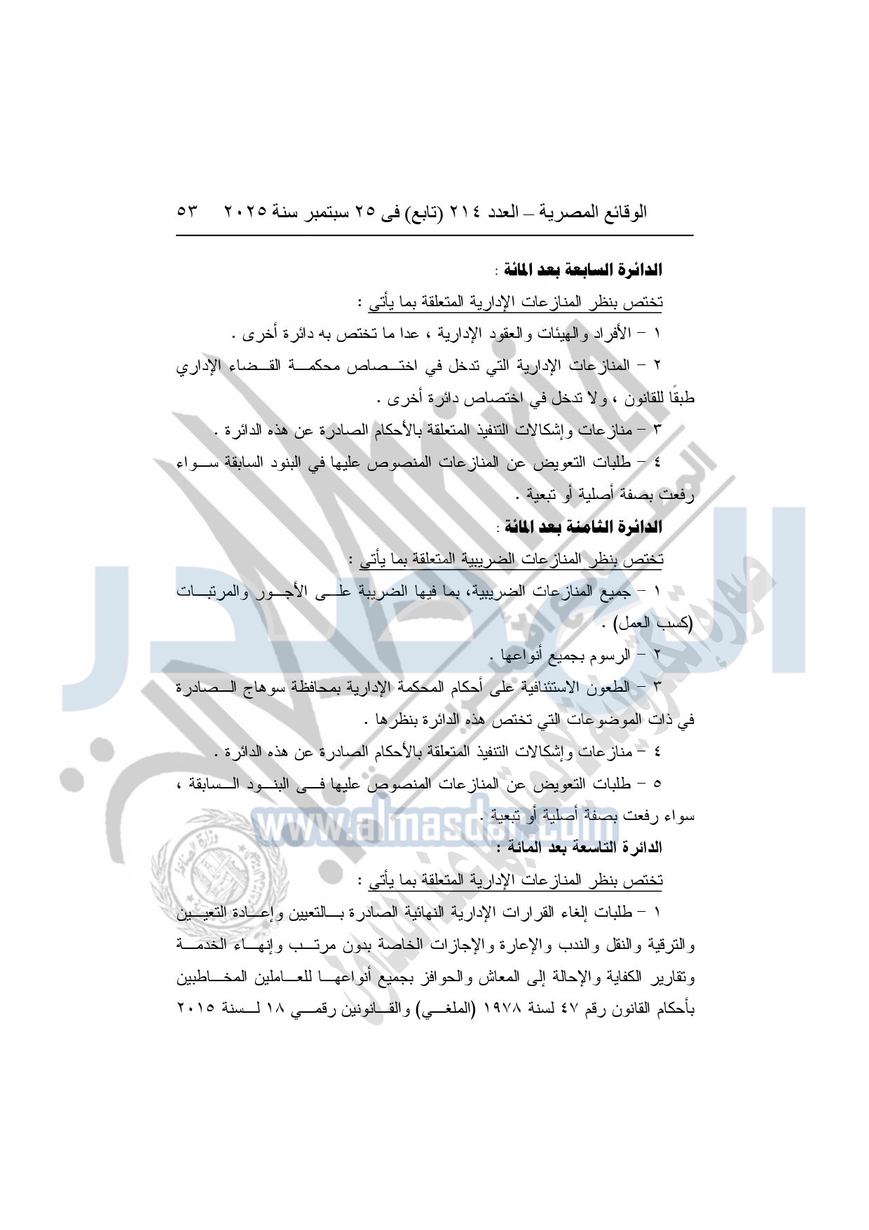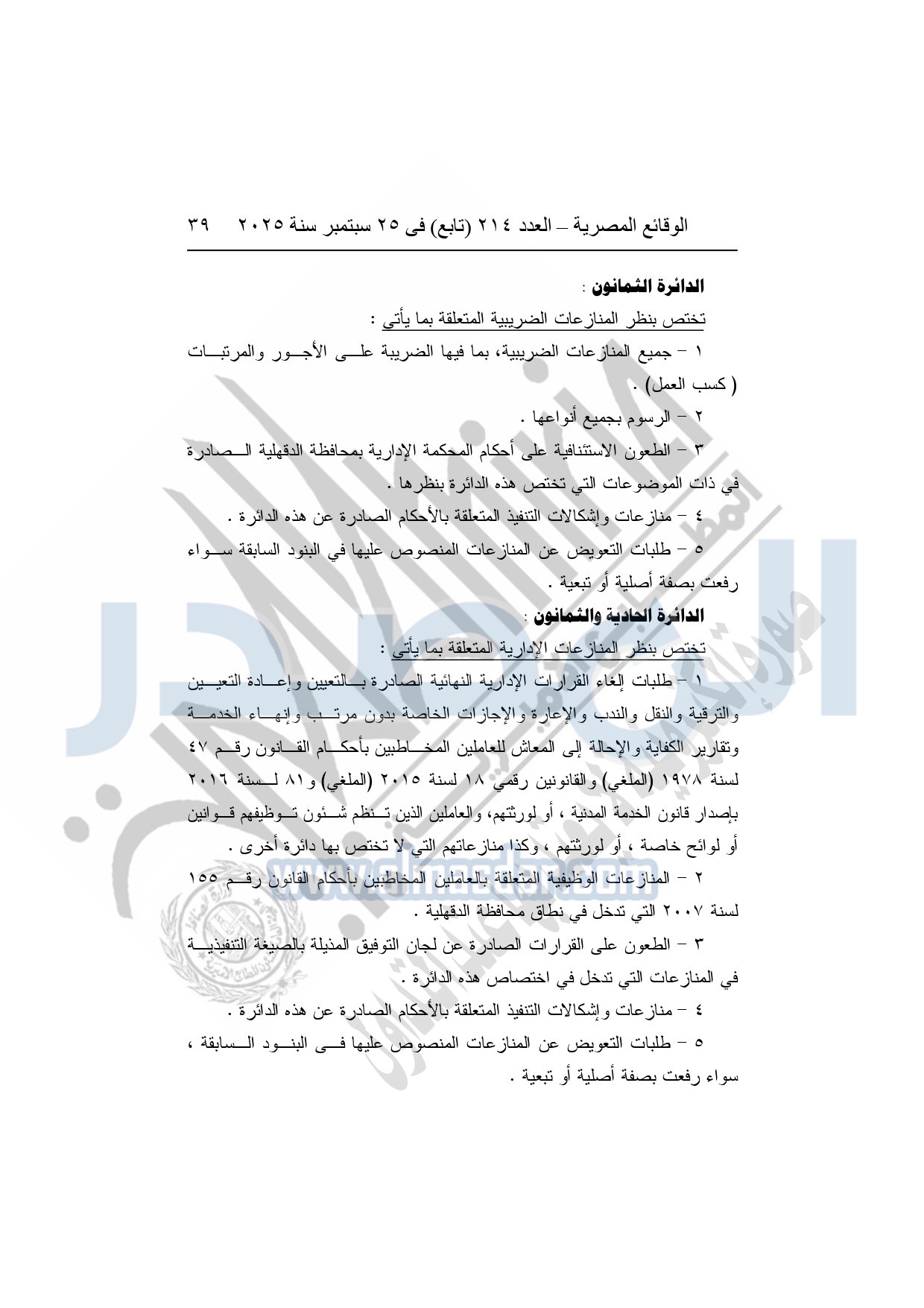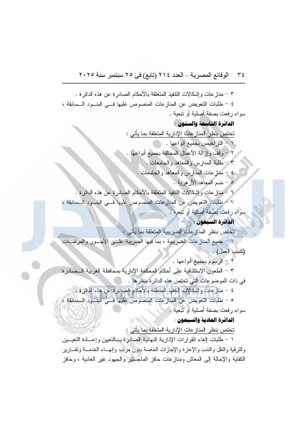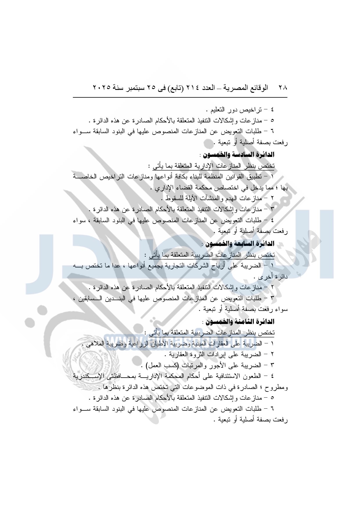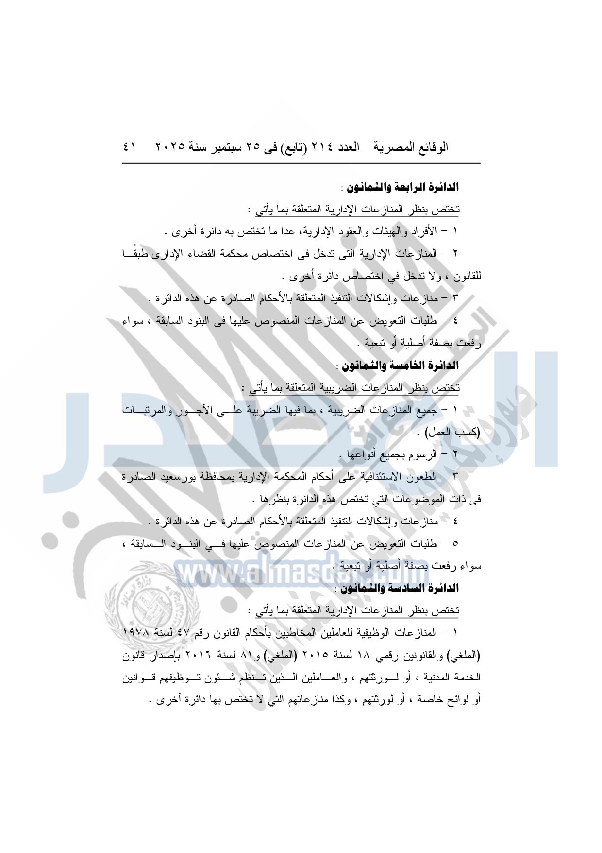 يعاد توزيع الاختصاصات بين دوائر محكمة القضاء الإداري على النحو الآتي: