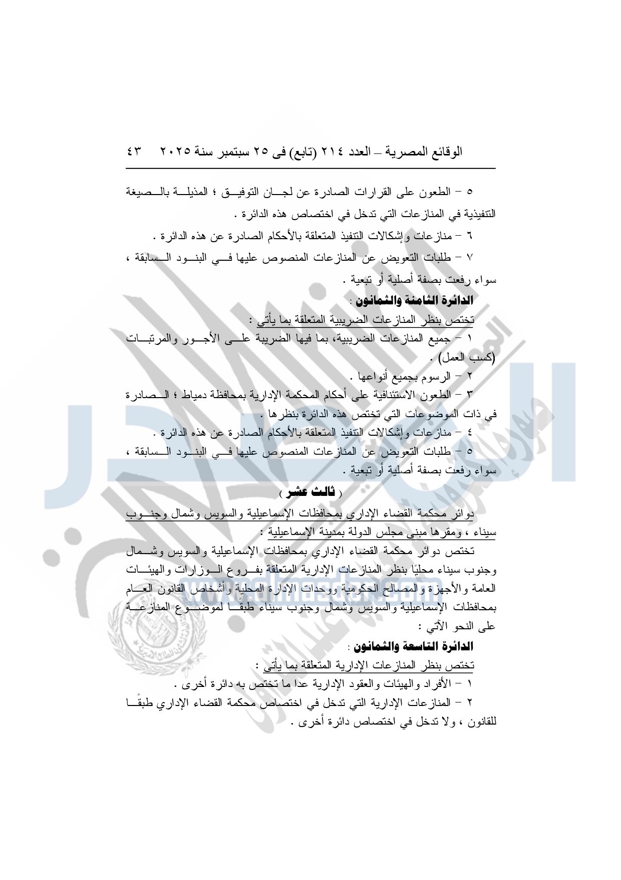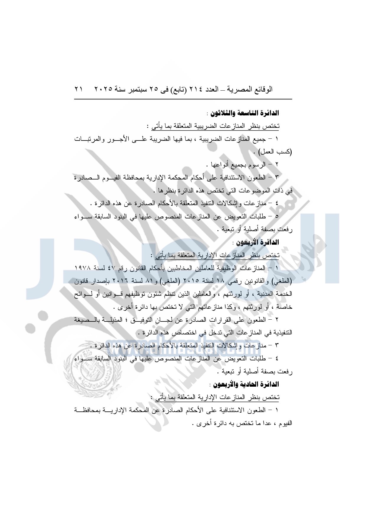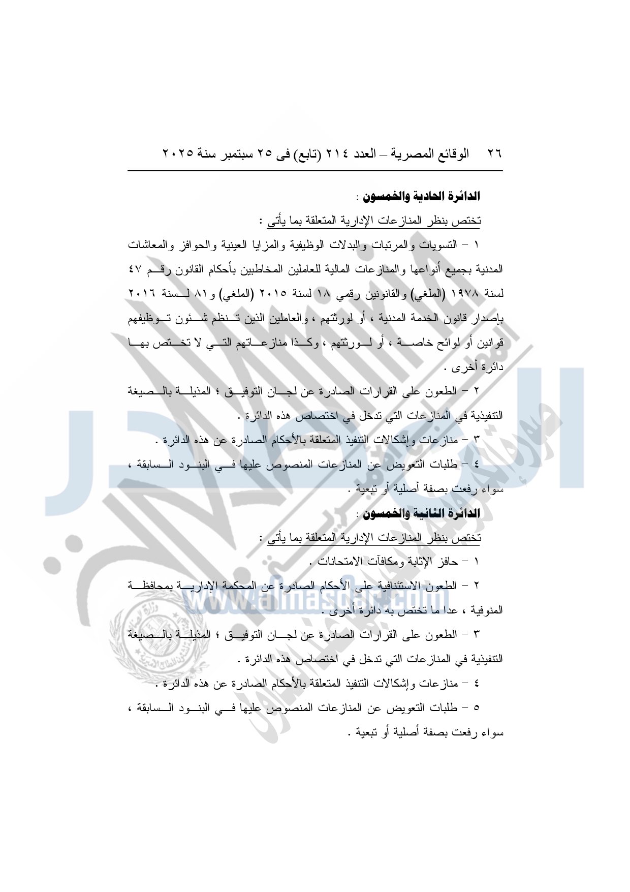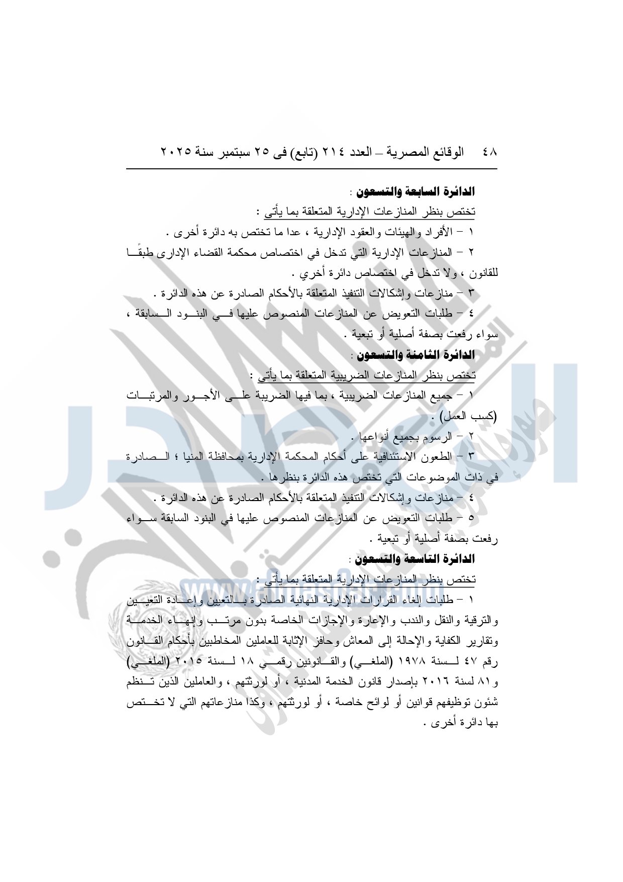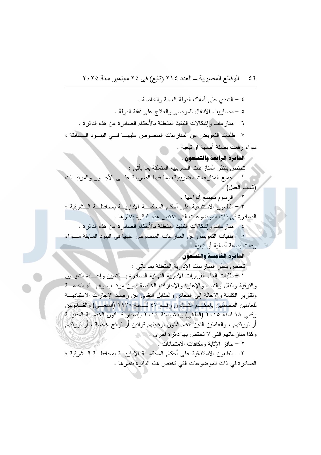 يعاد توزيع الاختصاصات بين دوائر محكمة القضاء الإداري على النحو الآتي: