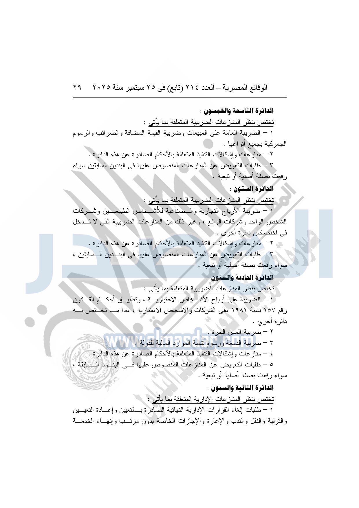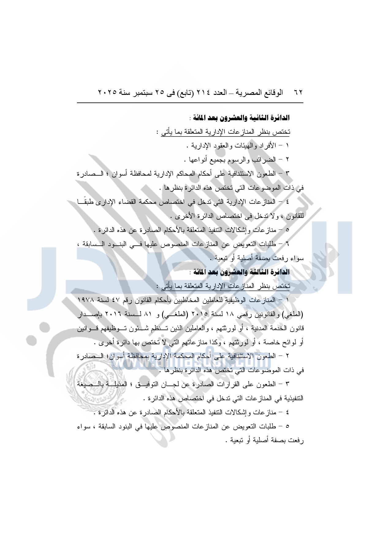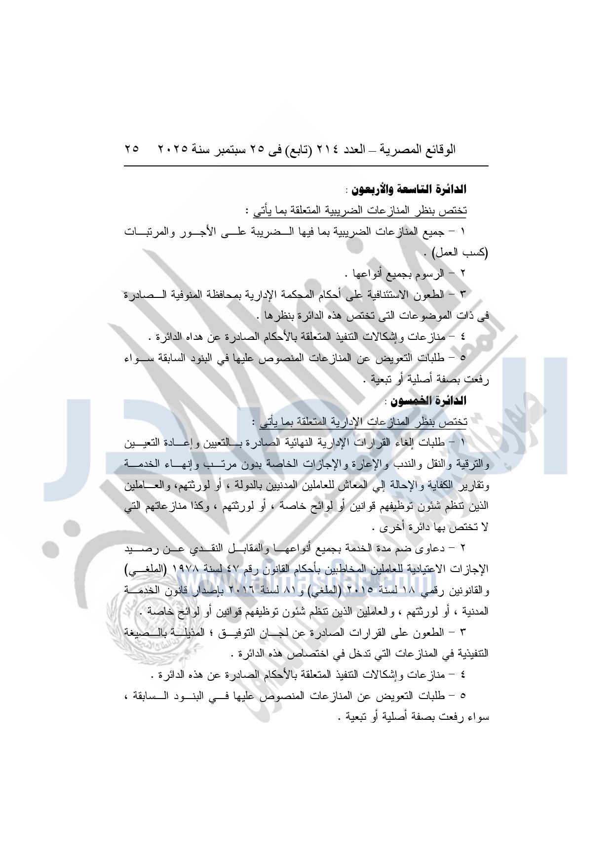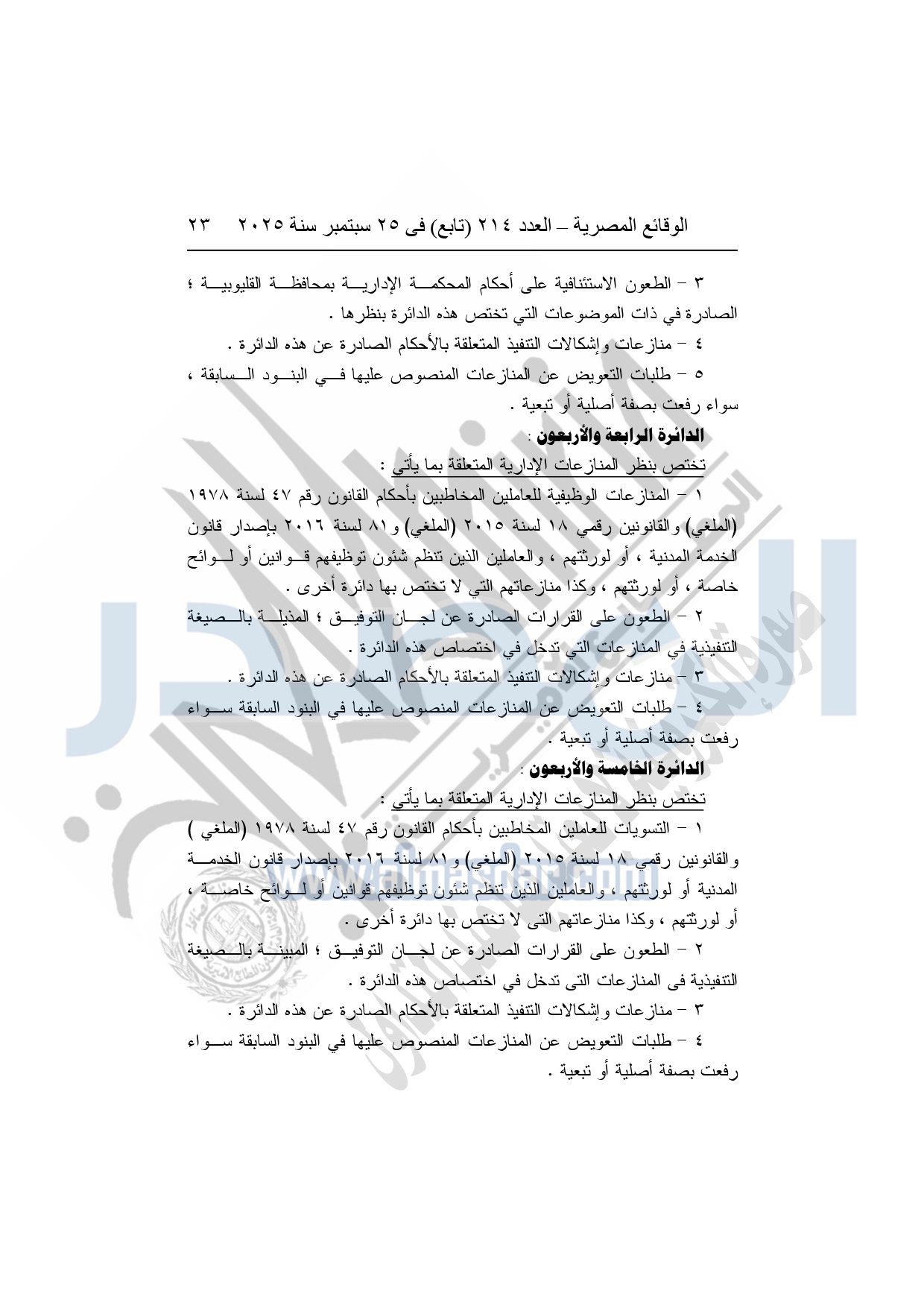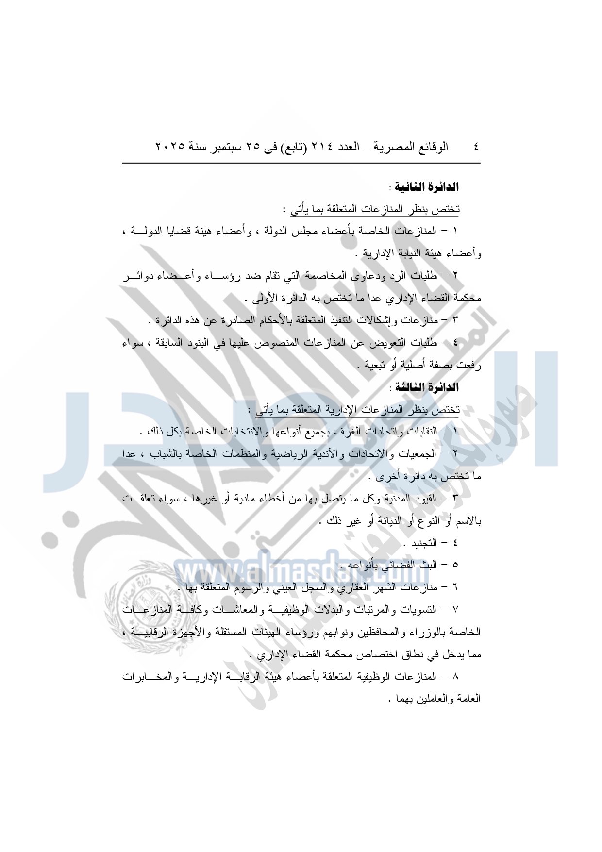 يعاد توزيع الاختصاصات بين دوائر محكمة القضاء الإداري على النحو الآتي:
