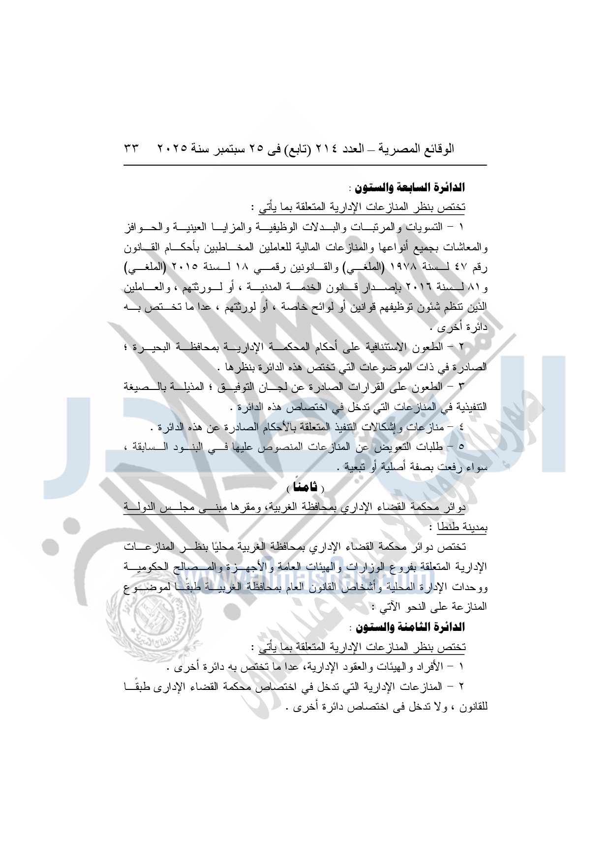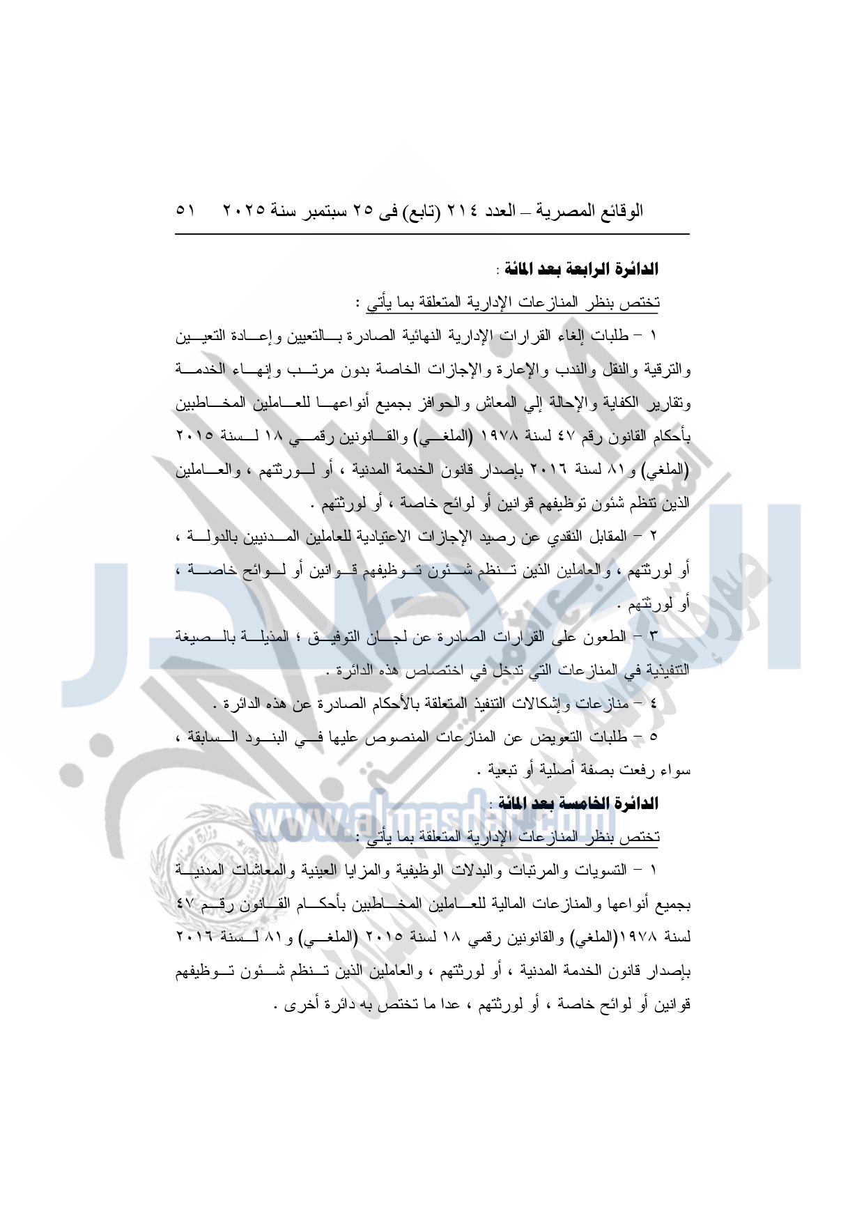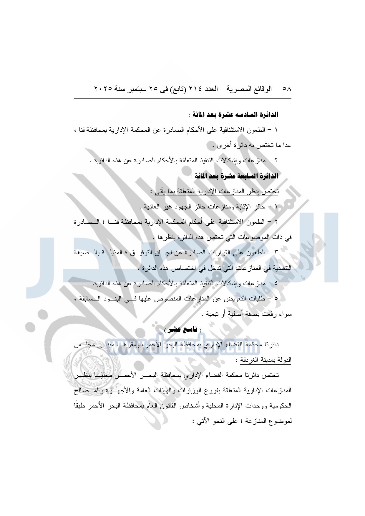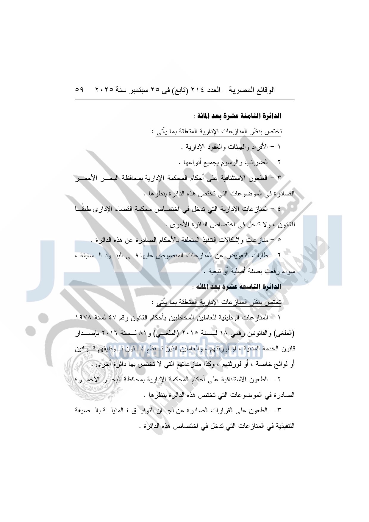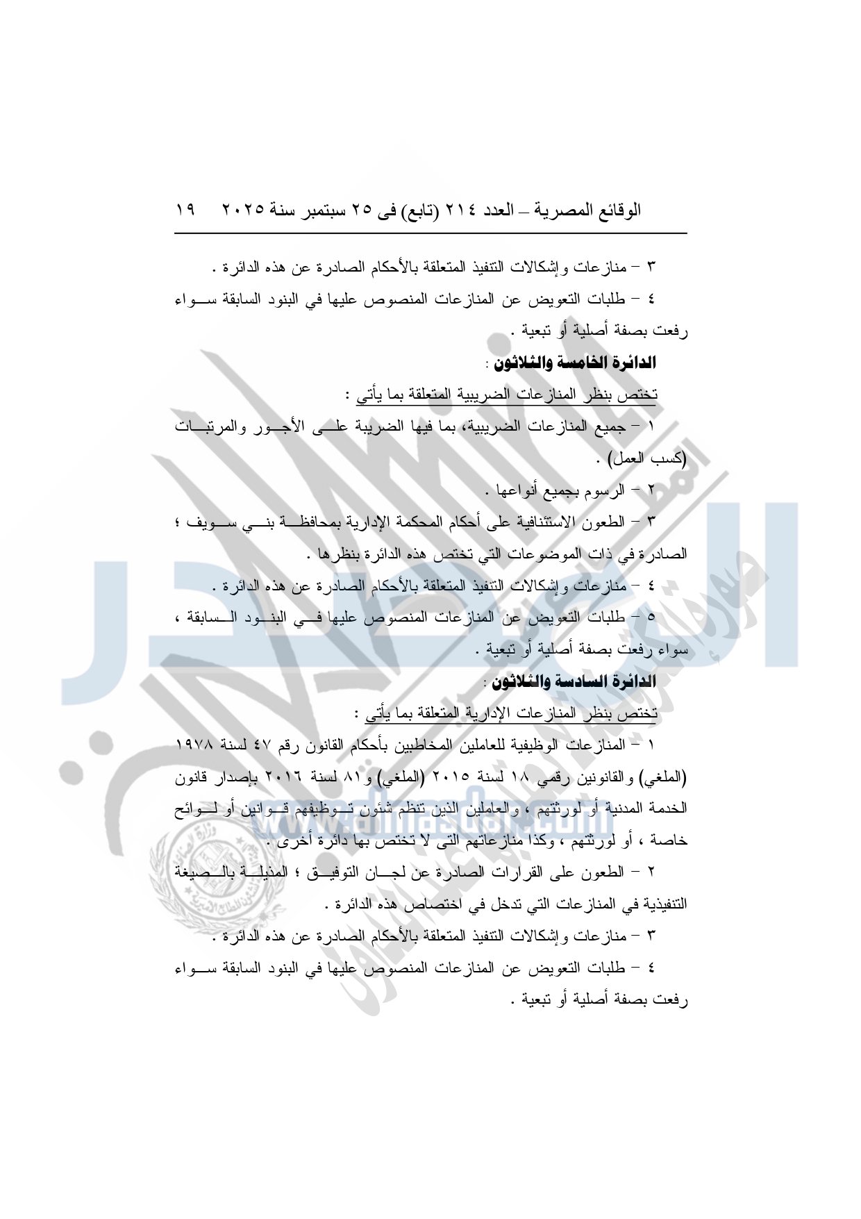 يعاد توزيع الاختصاصات بين دوائر محكمة القضاء الإداري على النحو الآتي: