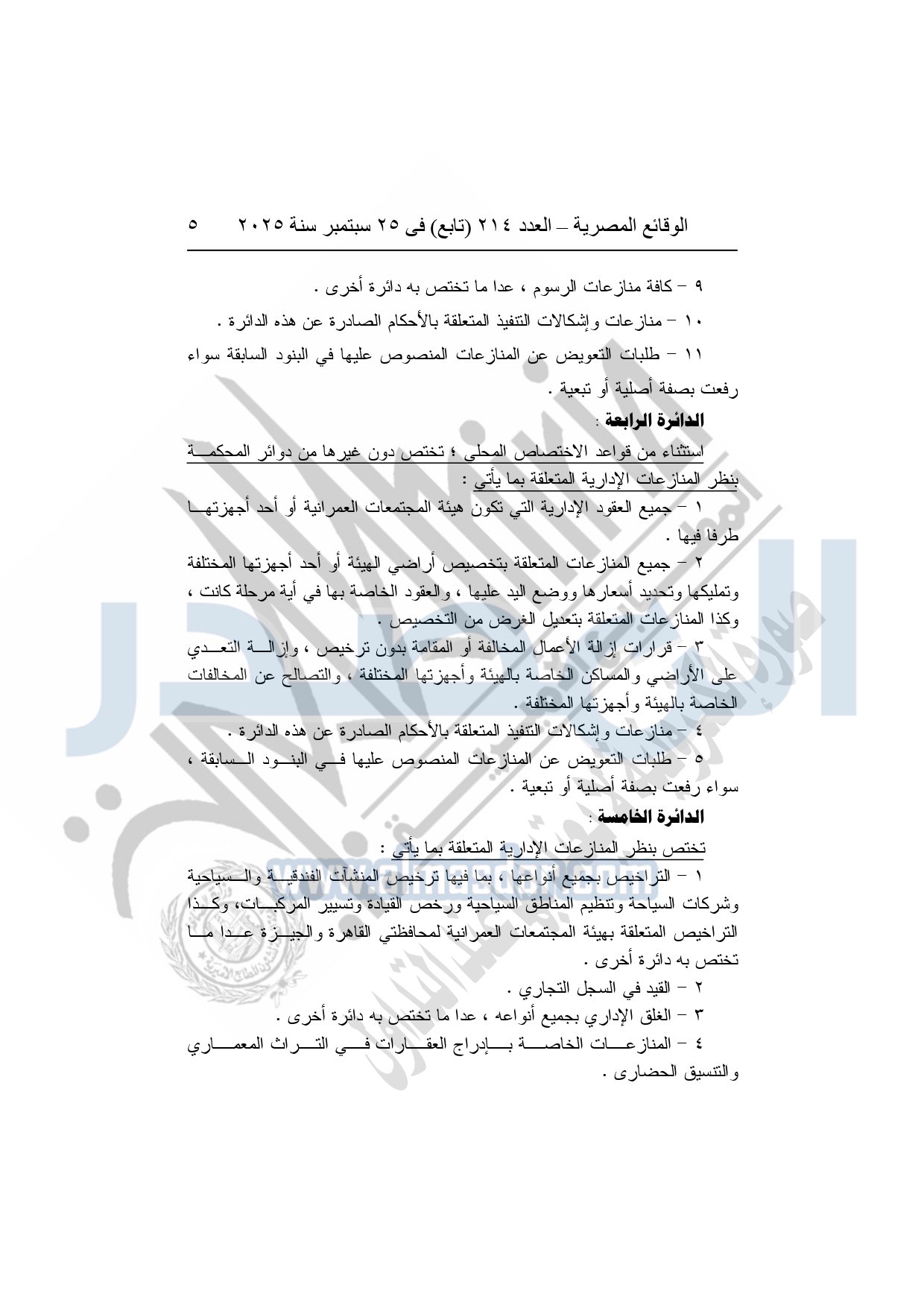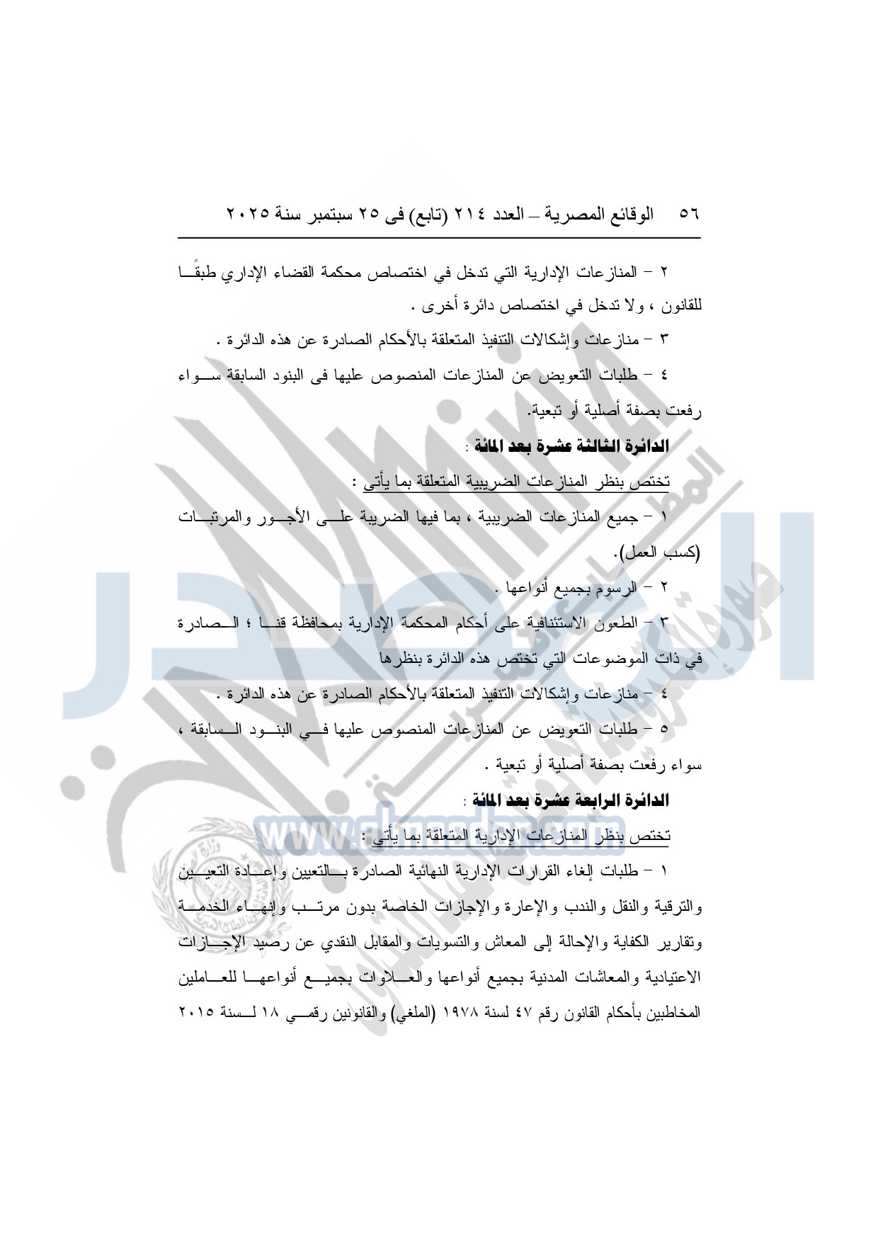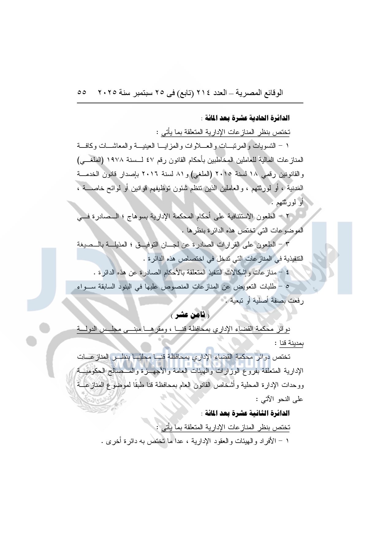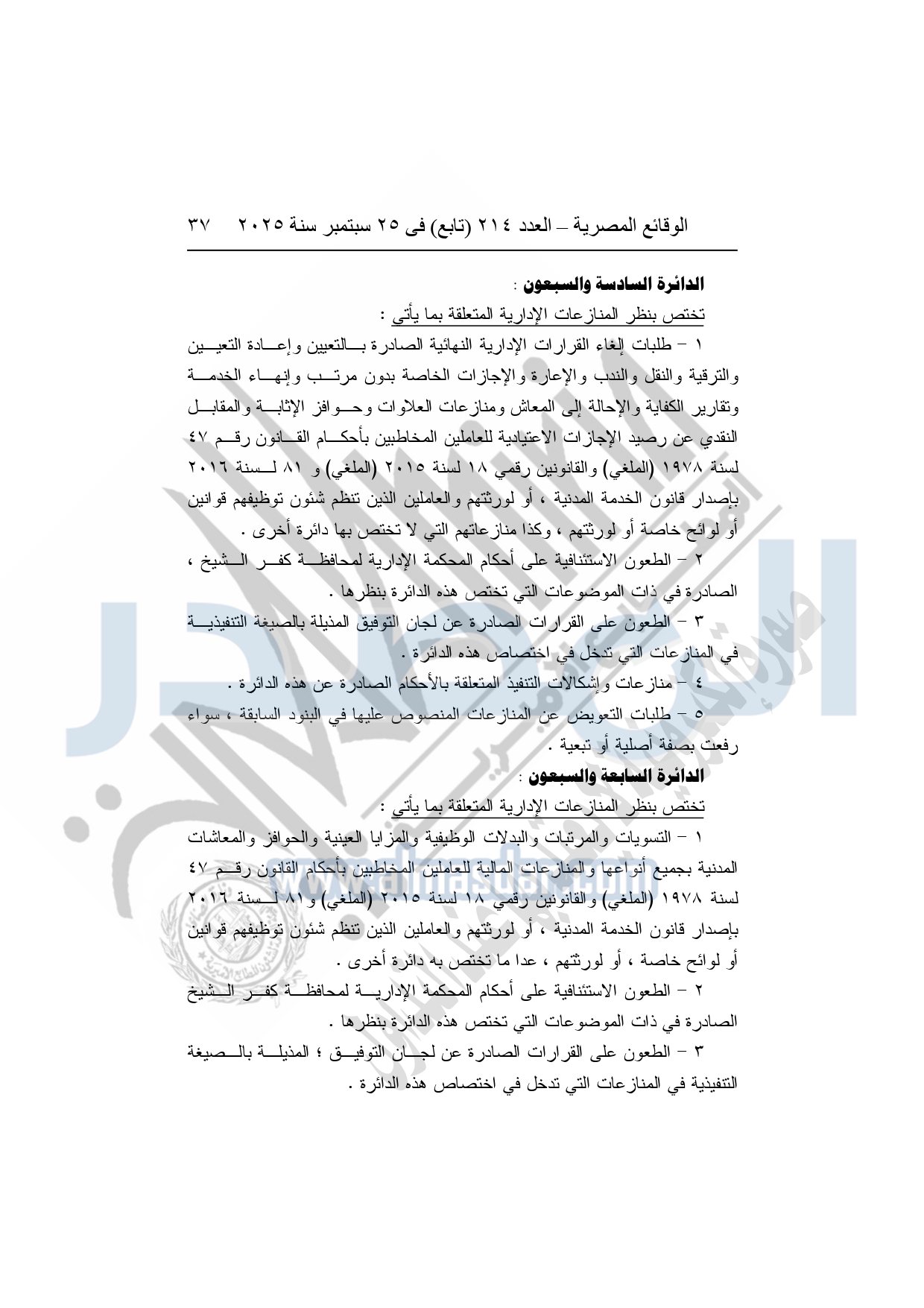 يعاد توزيع الاختصاصات بين دوائر محكمة القضاء الإداري على النحو الآتي: