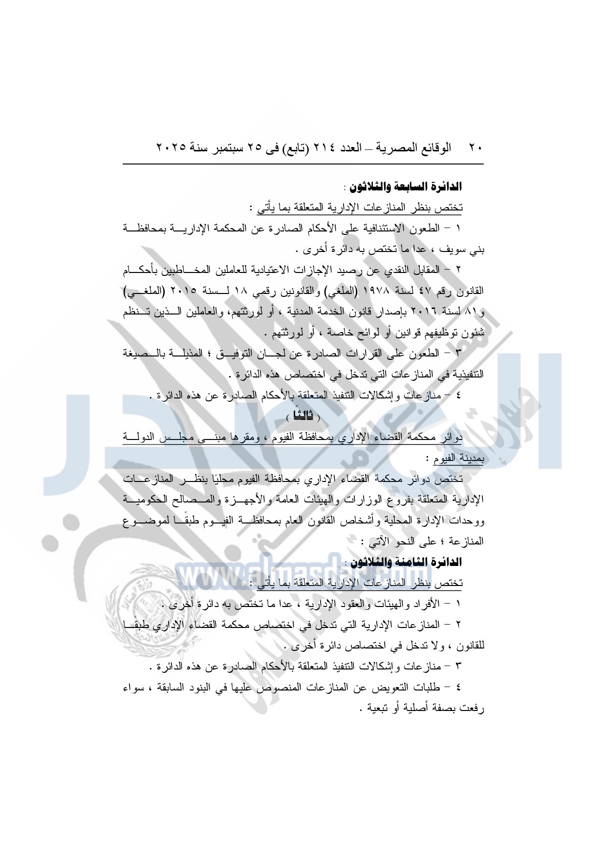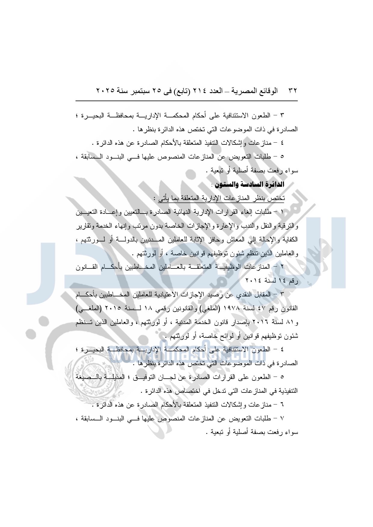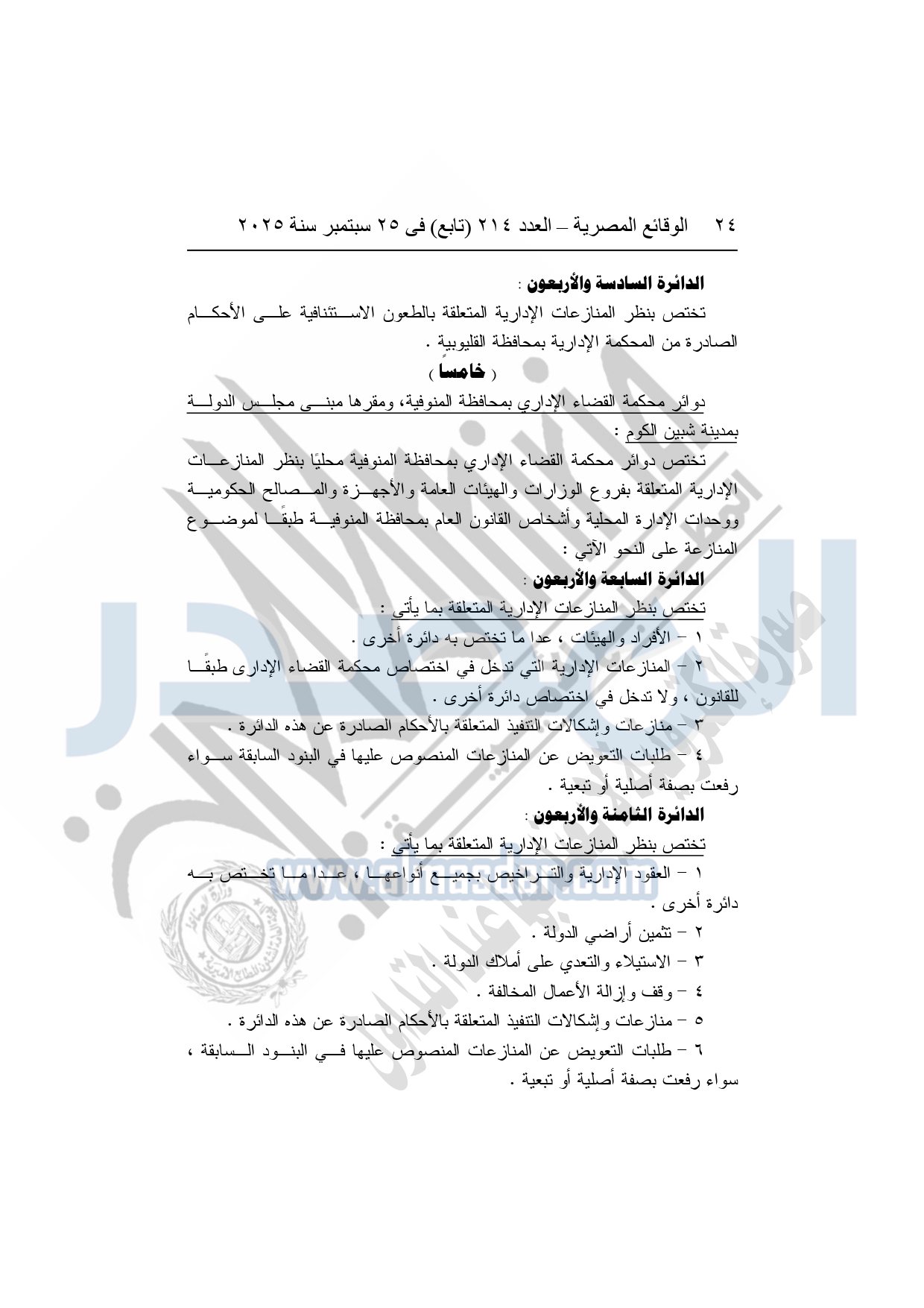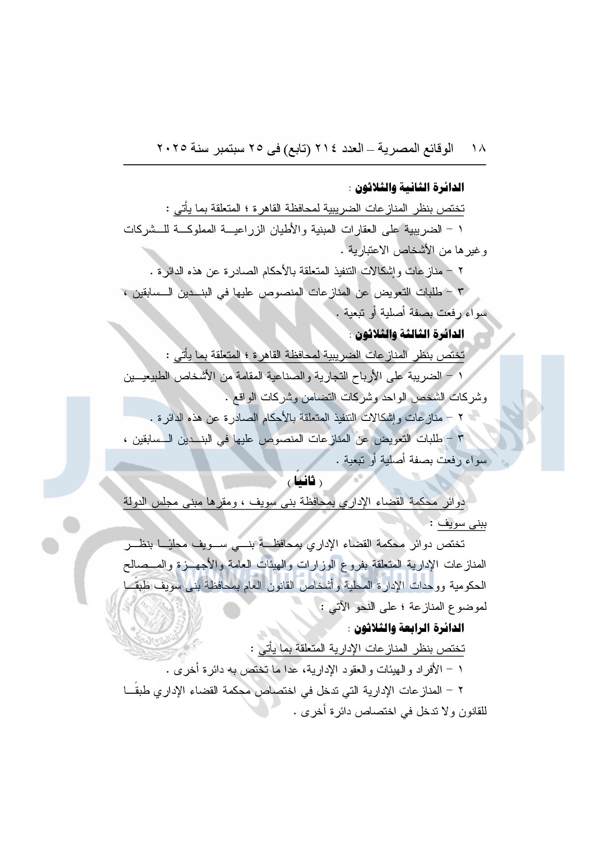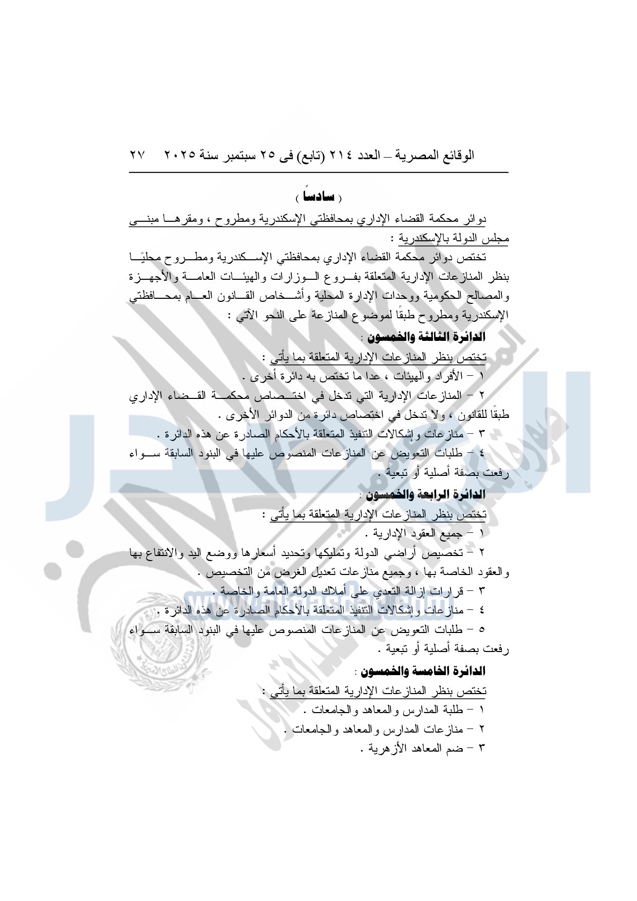 يعاد توزيع الاختصاصات بين دوائر محكمة القضاء الإداري على النحو الآتي: