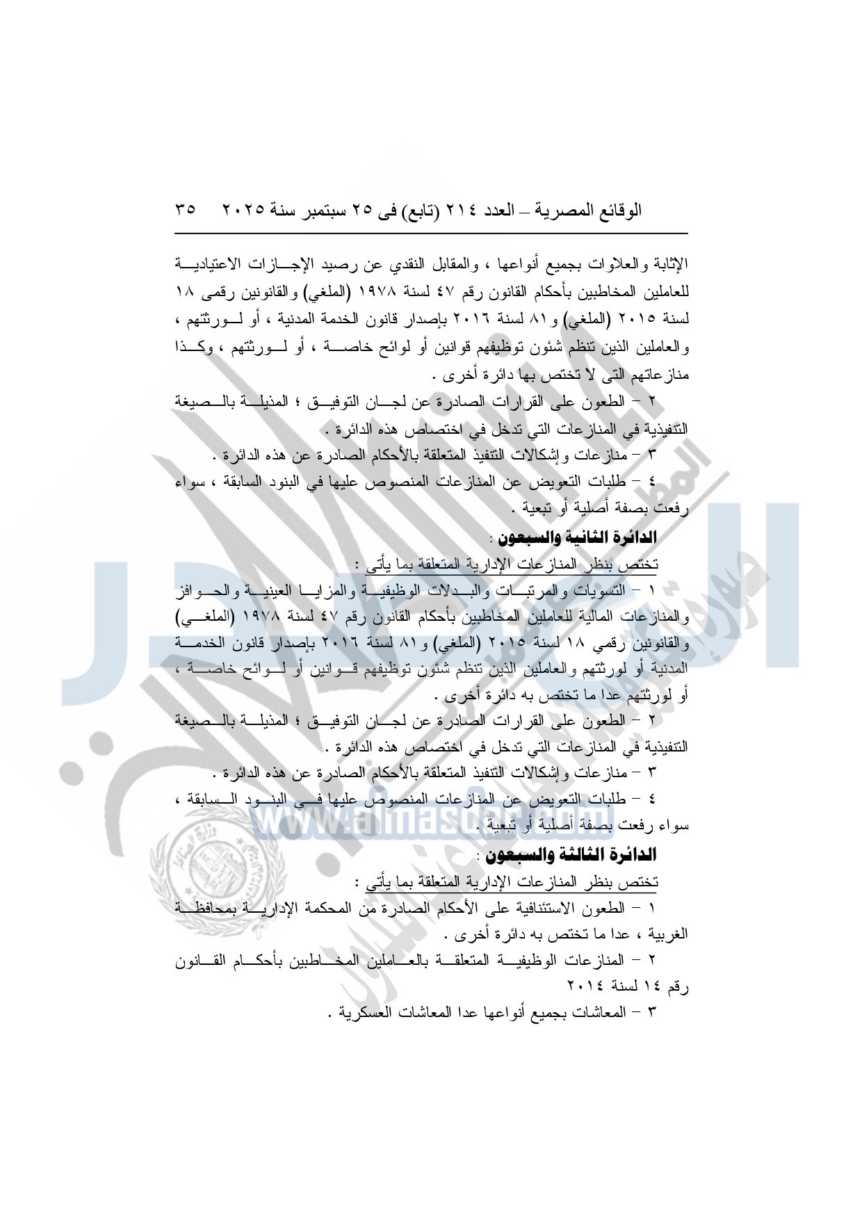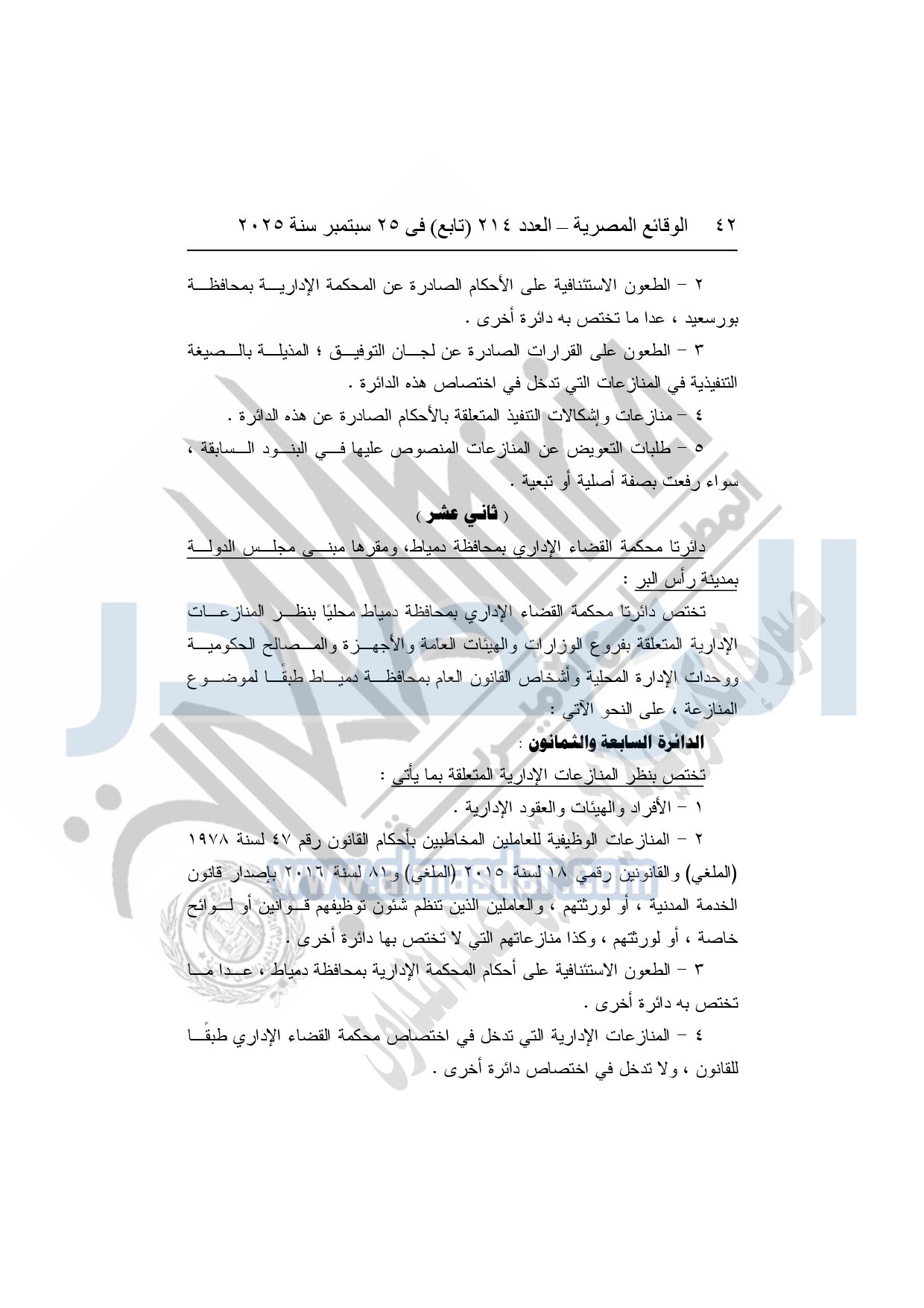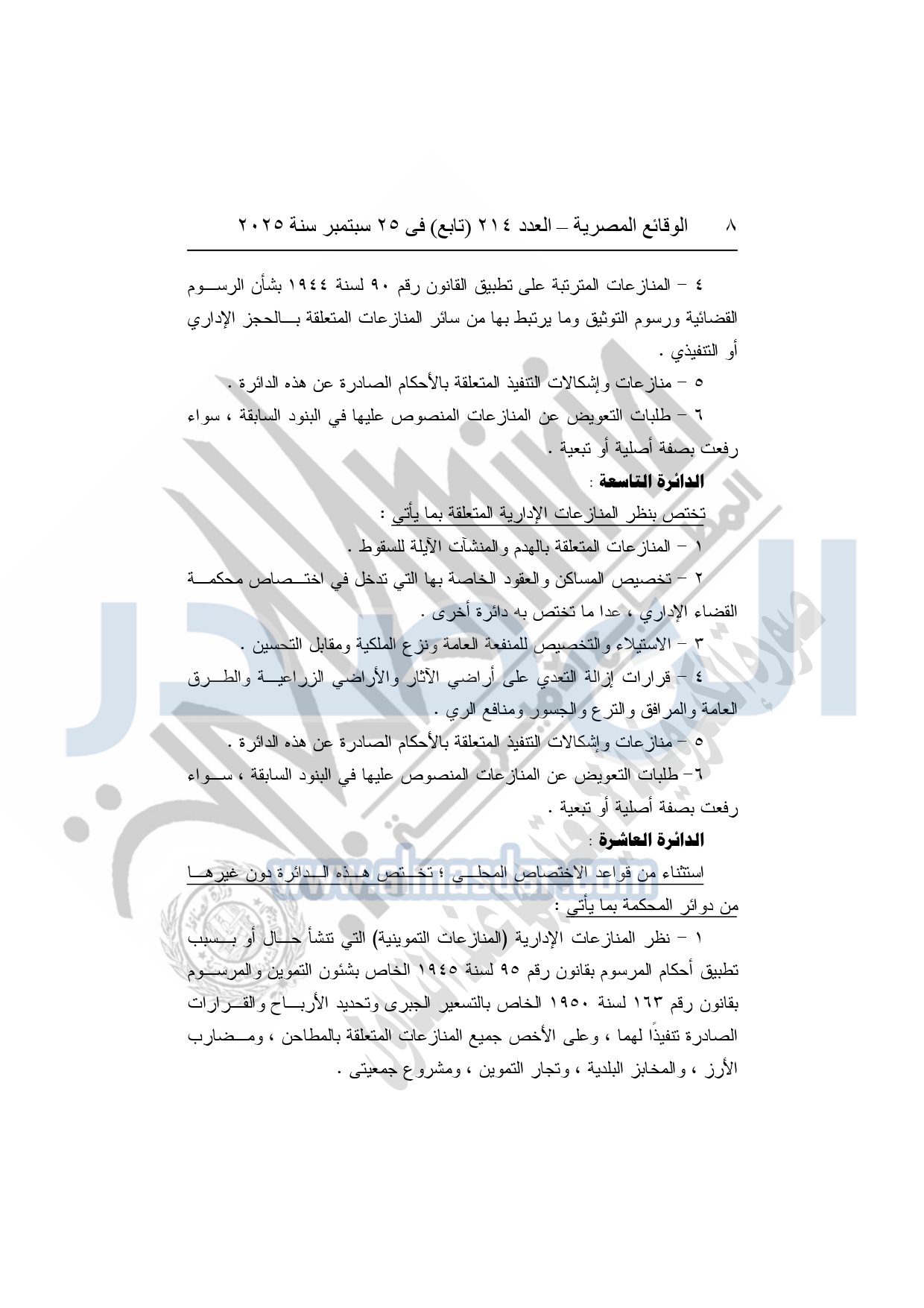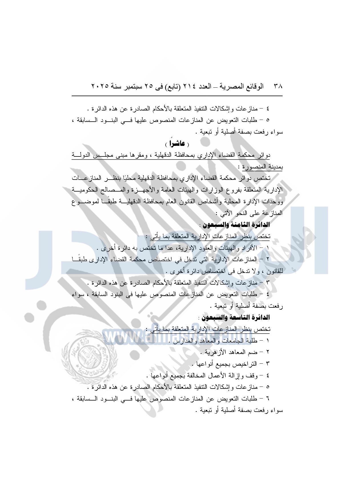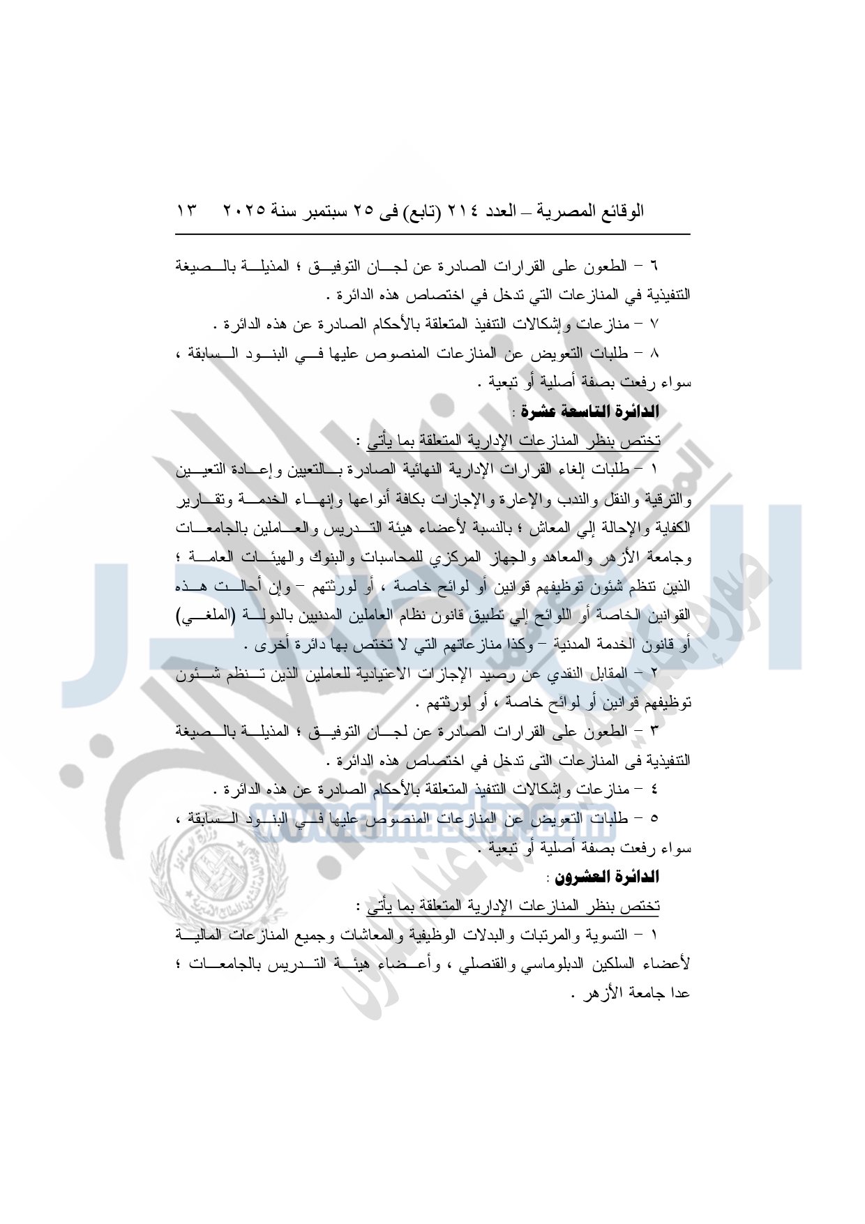 يعاد توزيع الاختصاصات بين دوائر محكمة القضاء الإداري على النحو الآتي:
