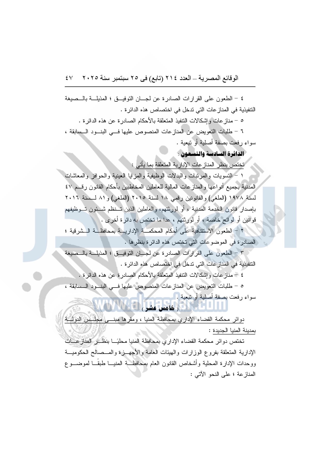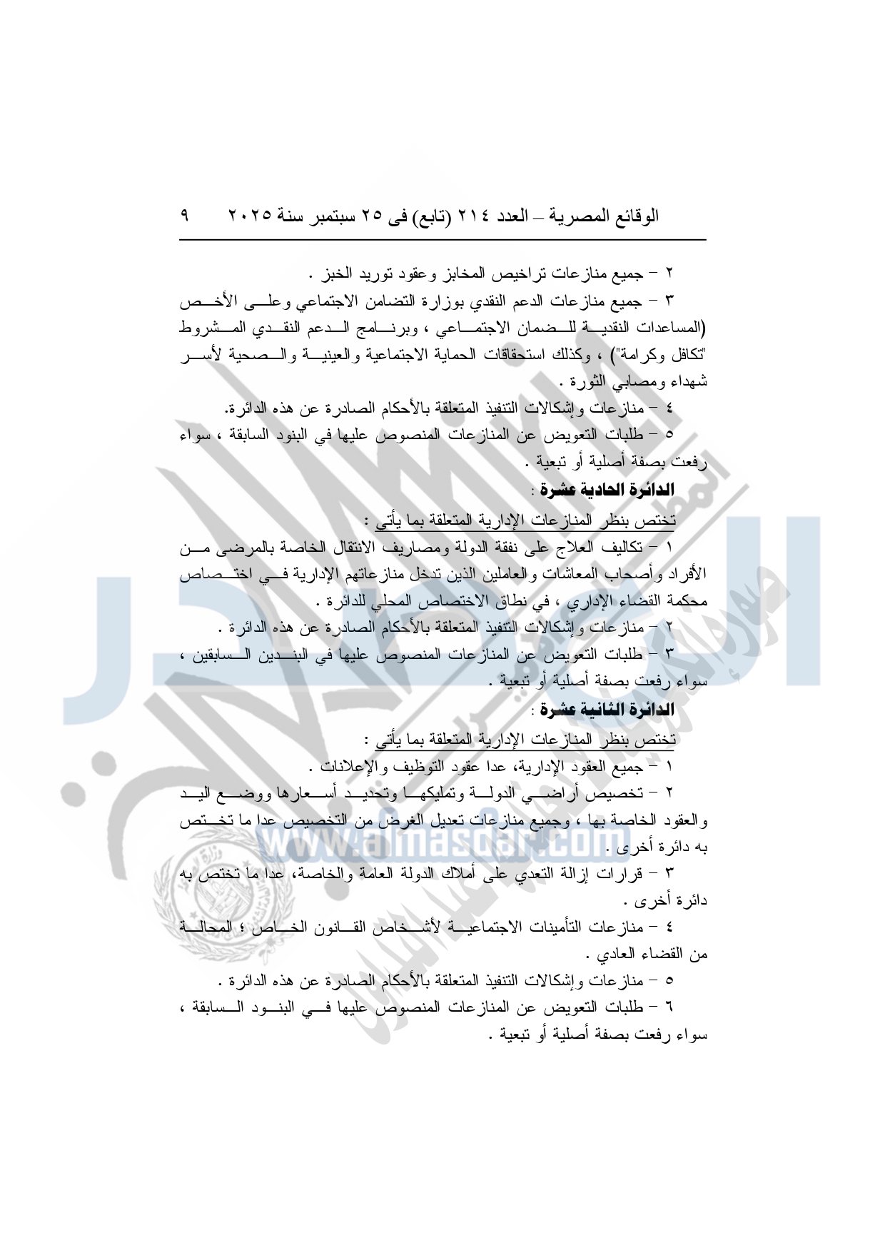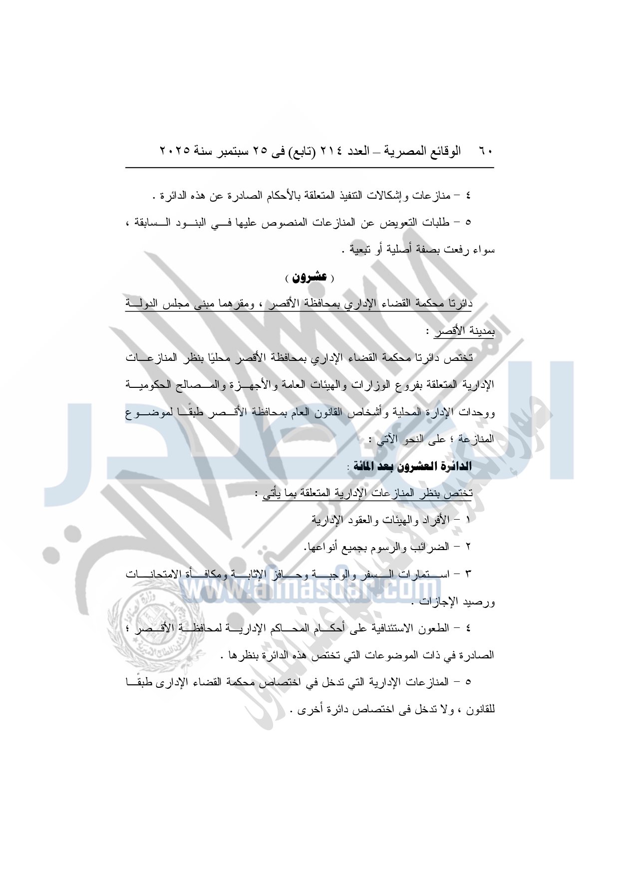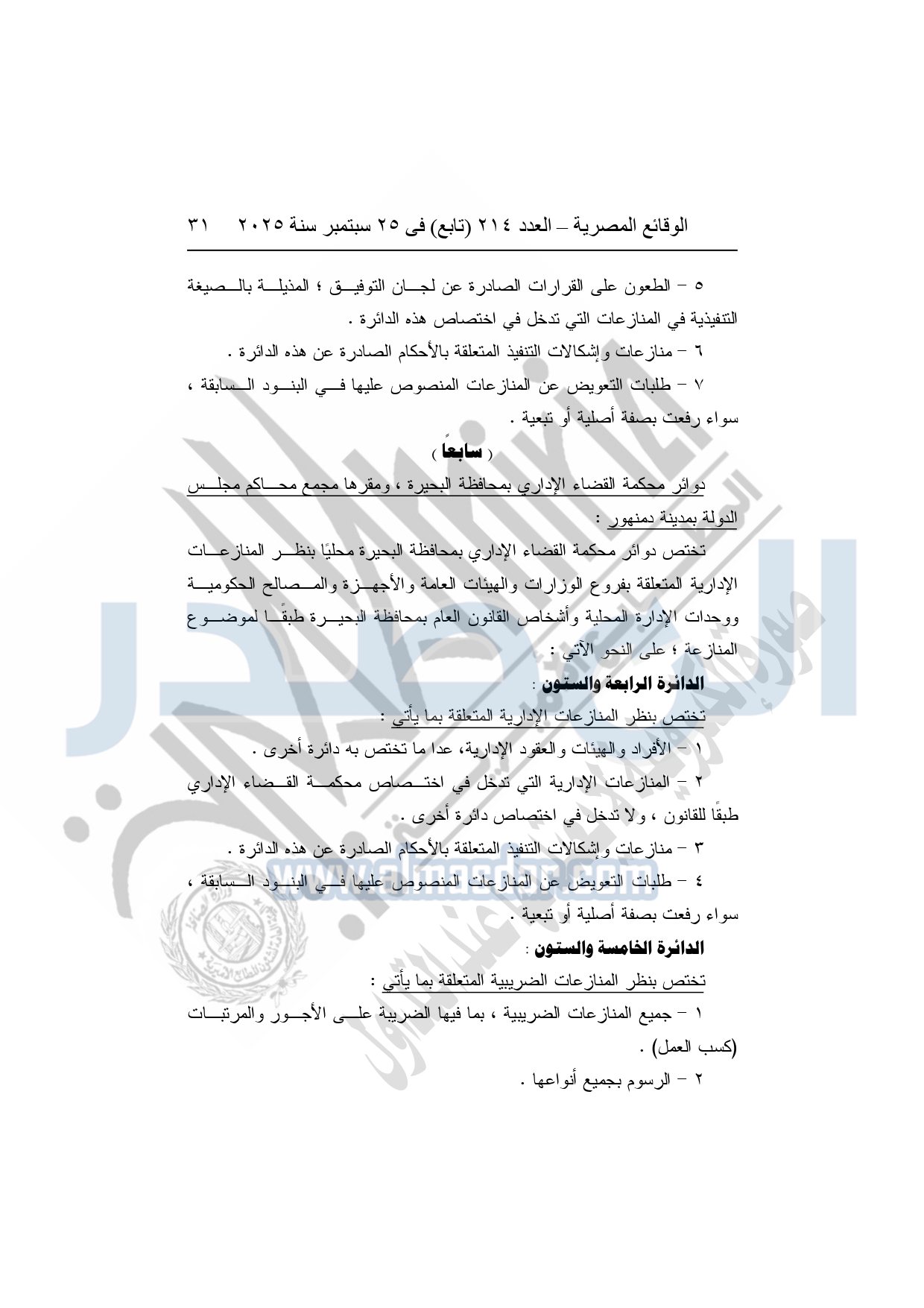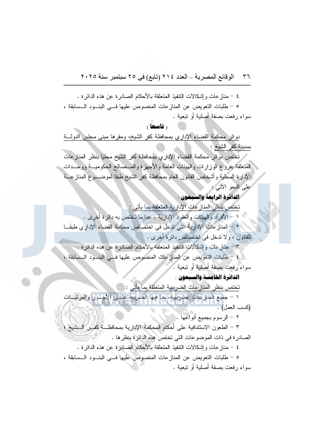 يعاد توزيع الاختصاصات بين دوائر محكمة القضاء الإداري على النحو الآتي: