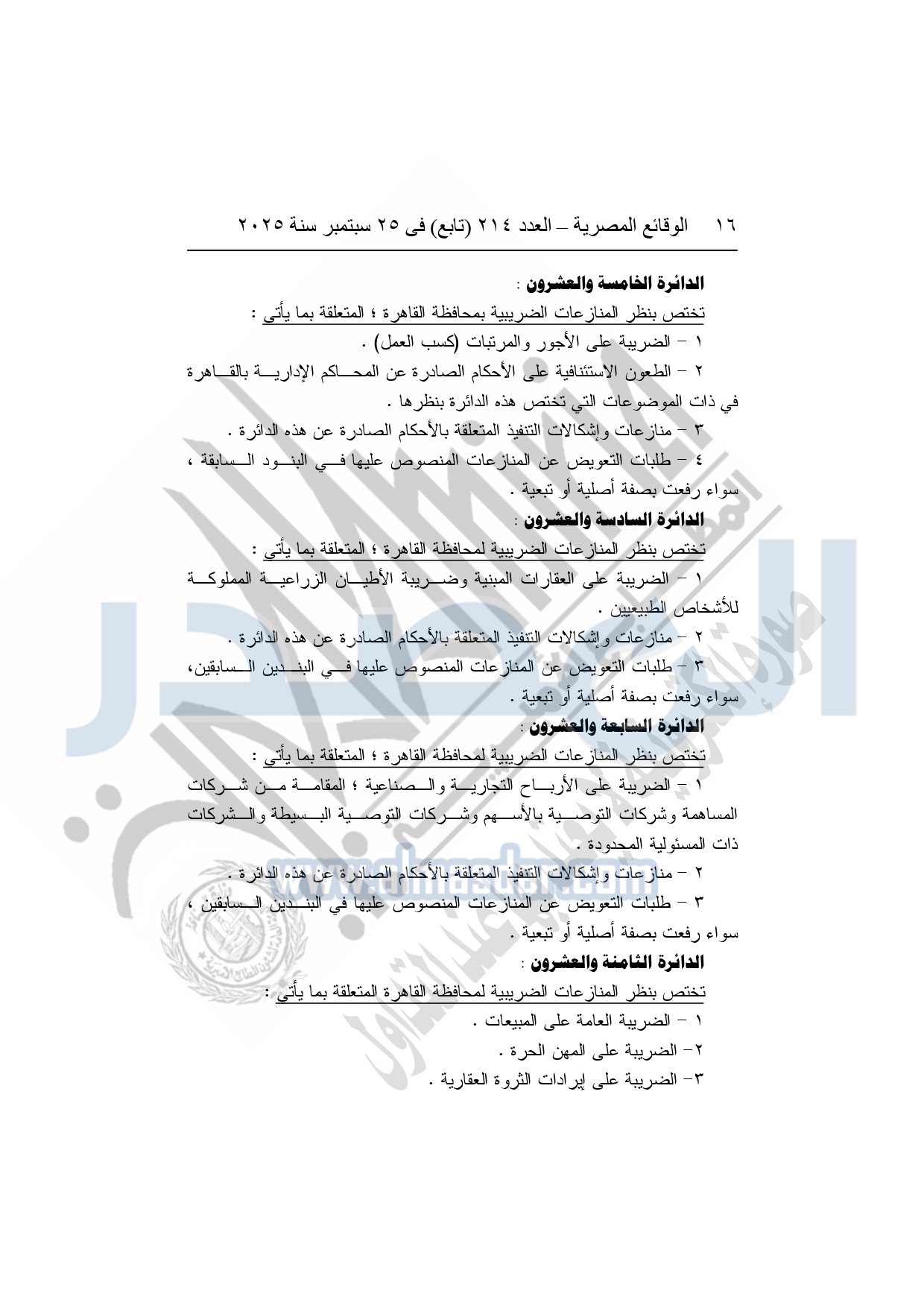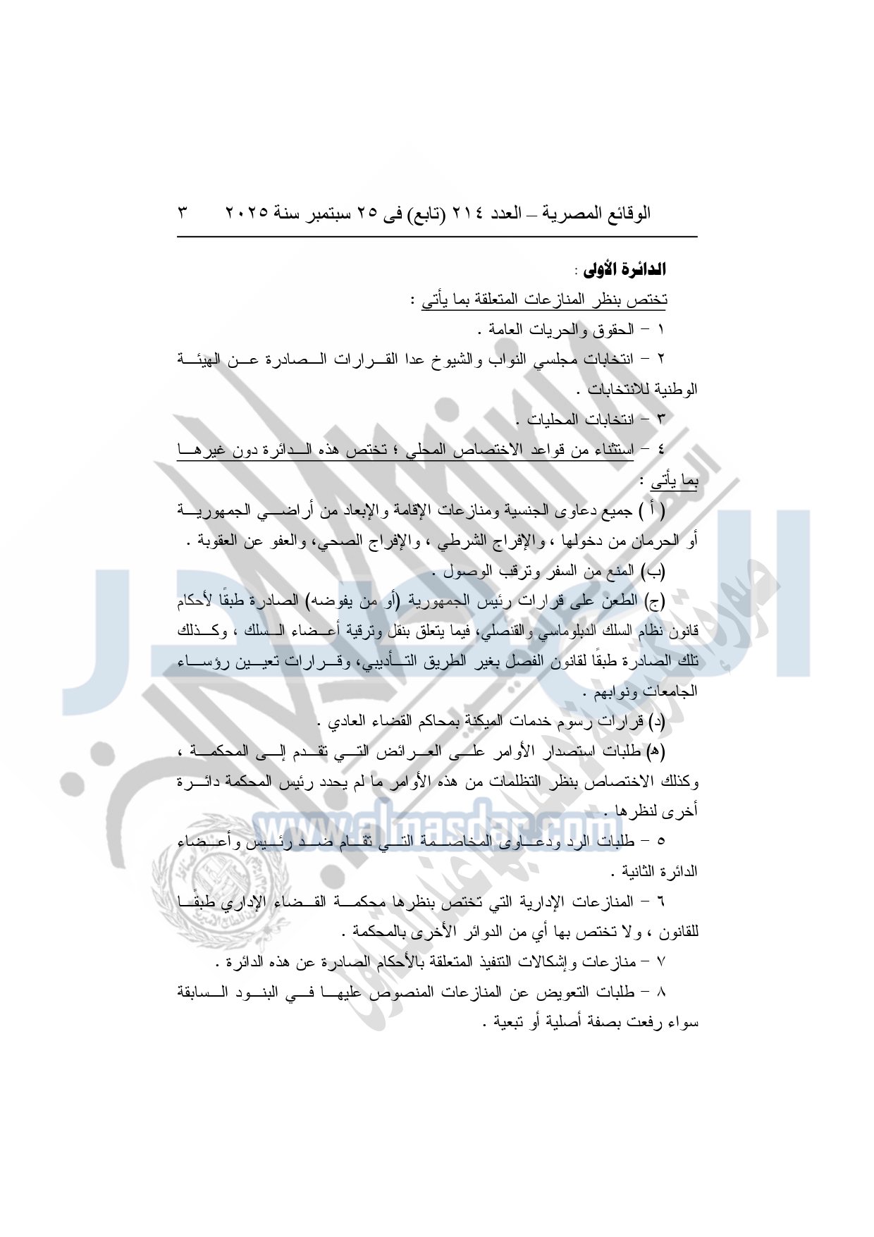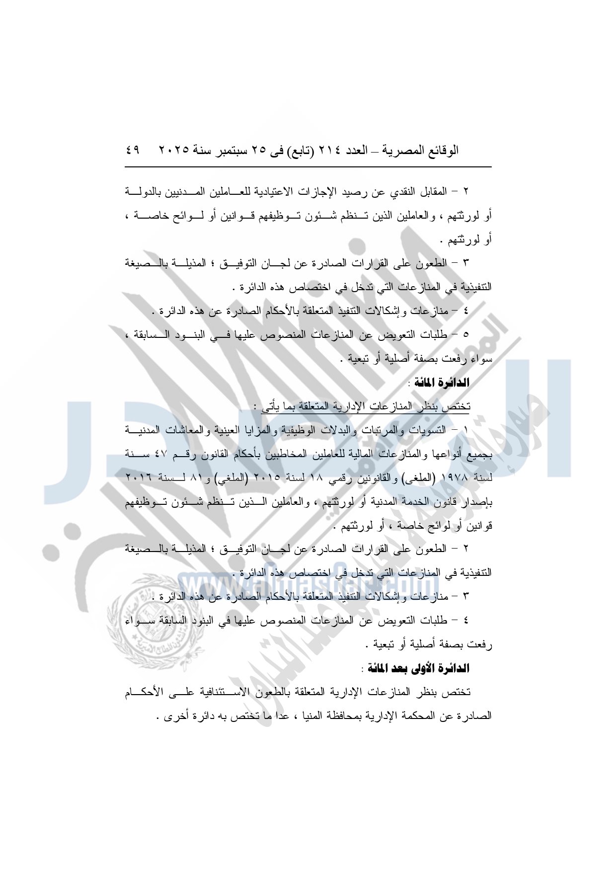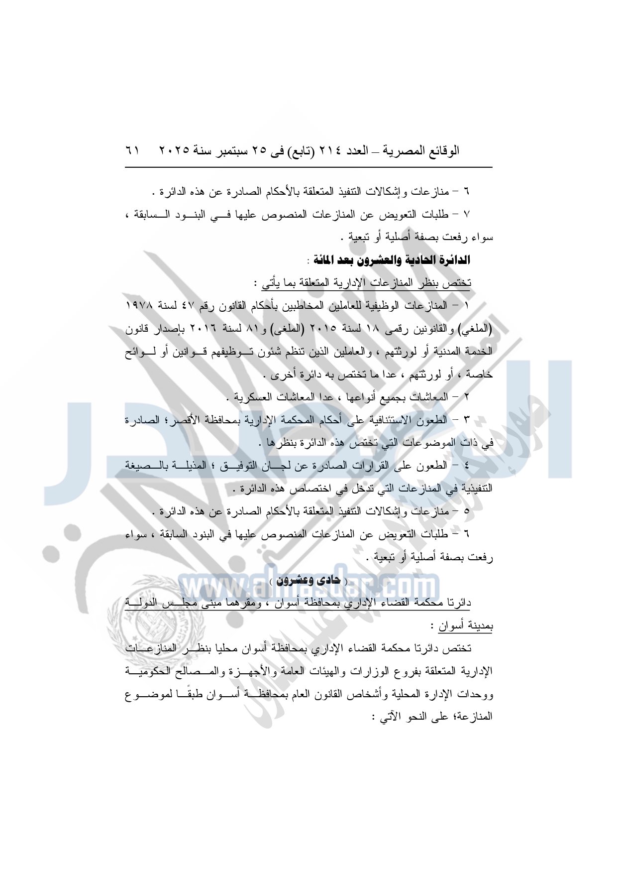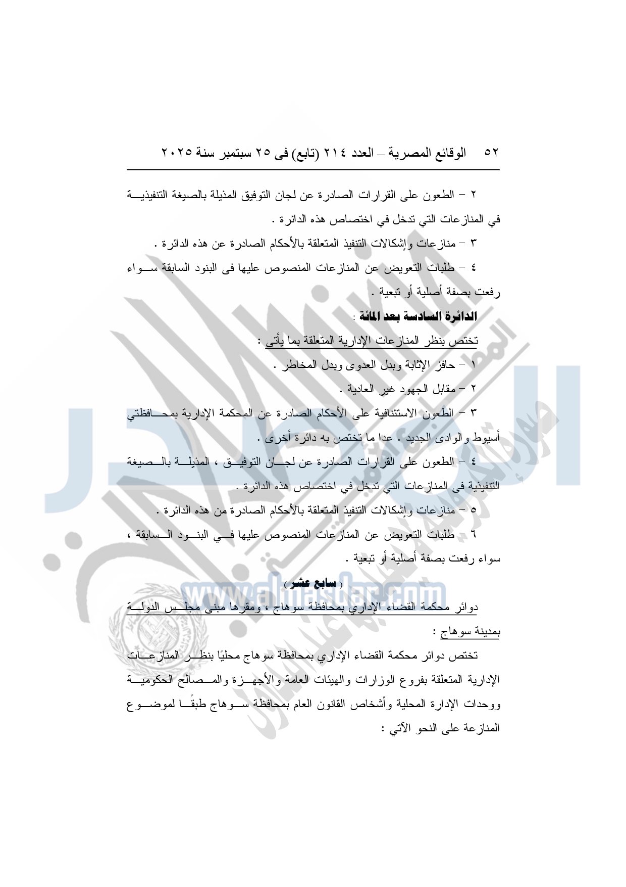 يعاد توزيع الاختصاصات بين دوائر محكمة القضاء الإداري على النحو الآتي:
