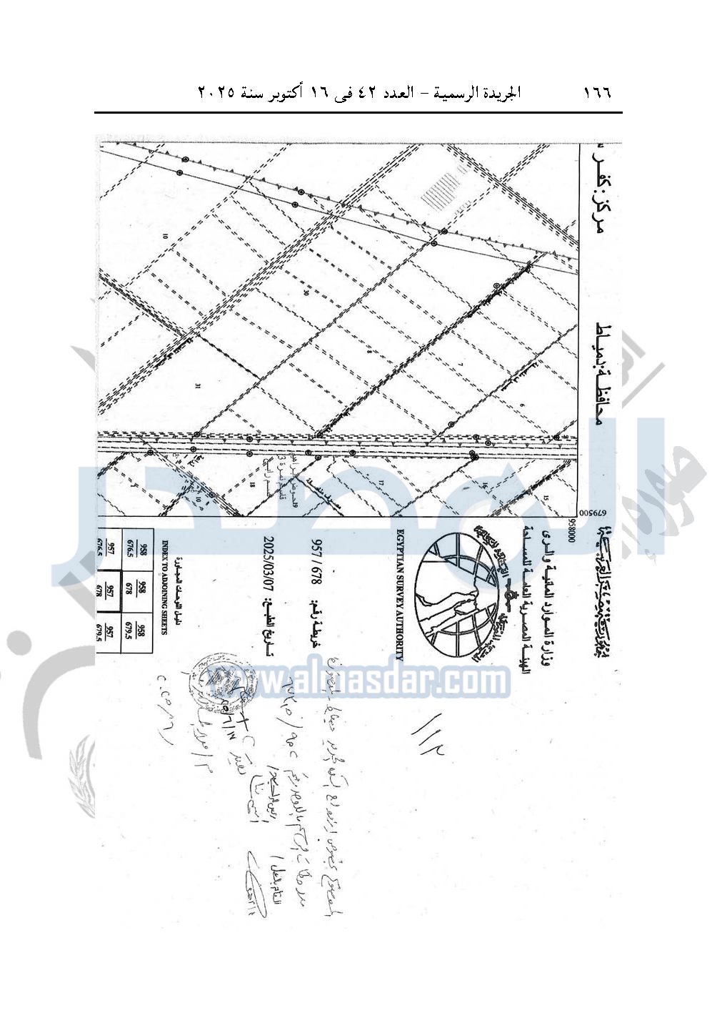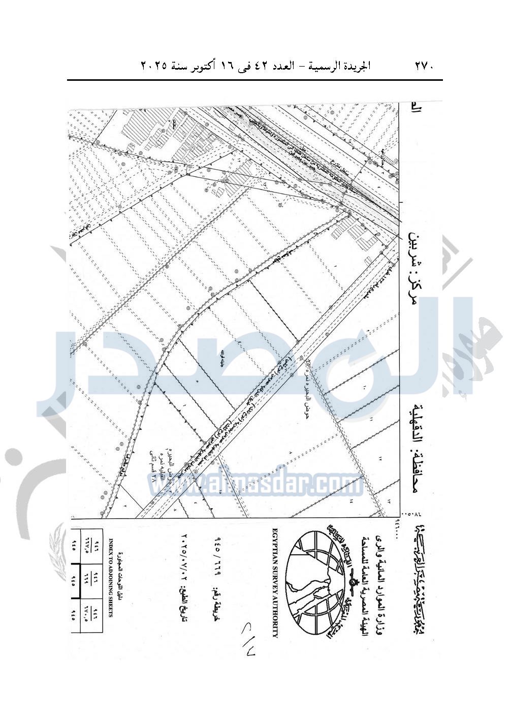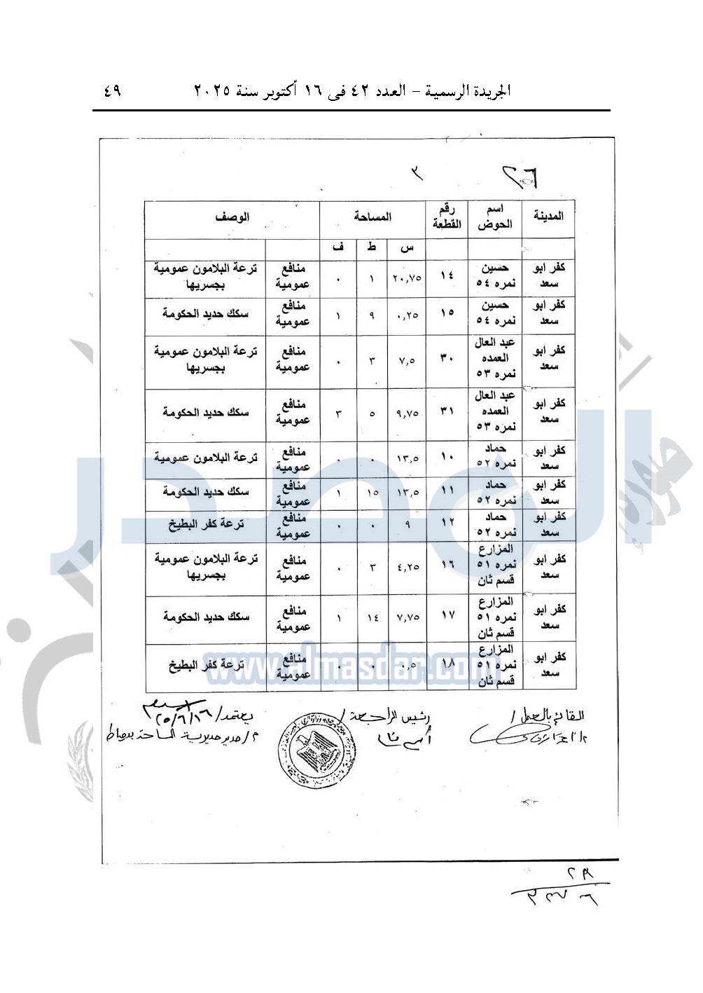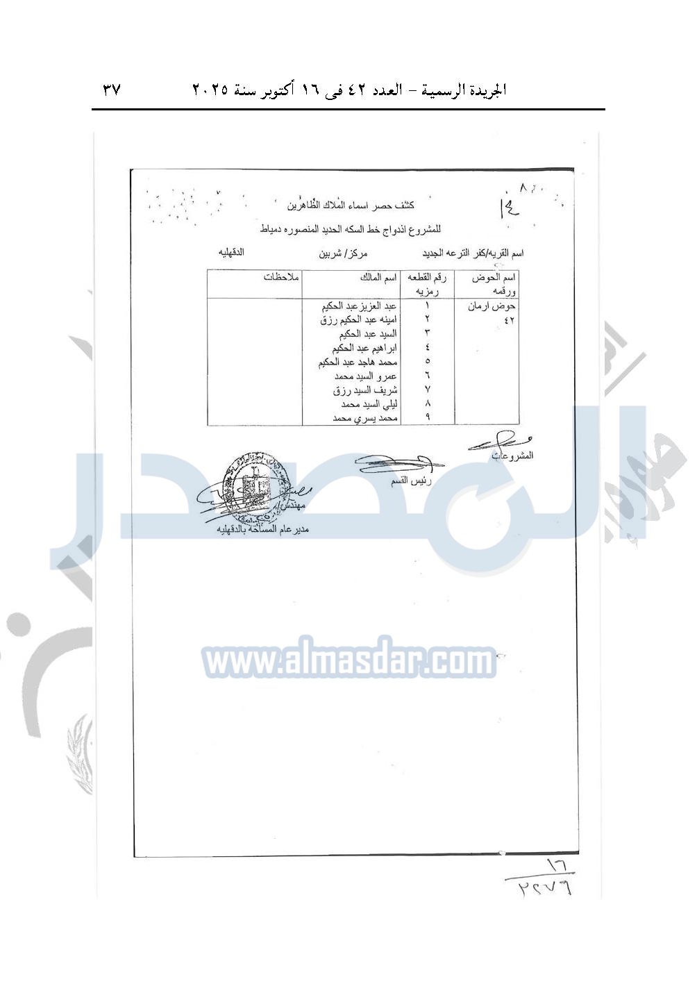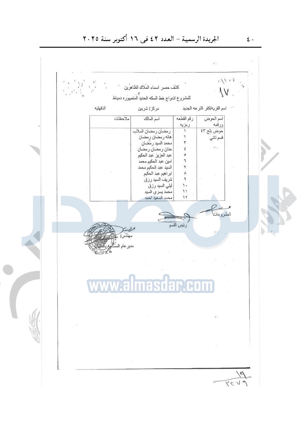 نشرت الجريدة الرسمية في العدد 42، بتاريخ 16 أكتوبر 2025، قرار رئيس مجلس الوزراء، رقم 3276 لسنة 2025، بشأن نزع ملكية قطعة أرض لإقامة مشروع إزدواج خط سكة حديد المنصورة – دمياط في نطاق محافظتى الدقهلية ودمياط.