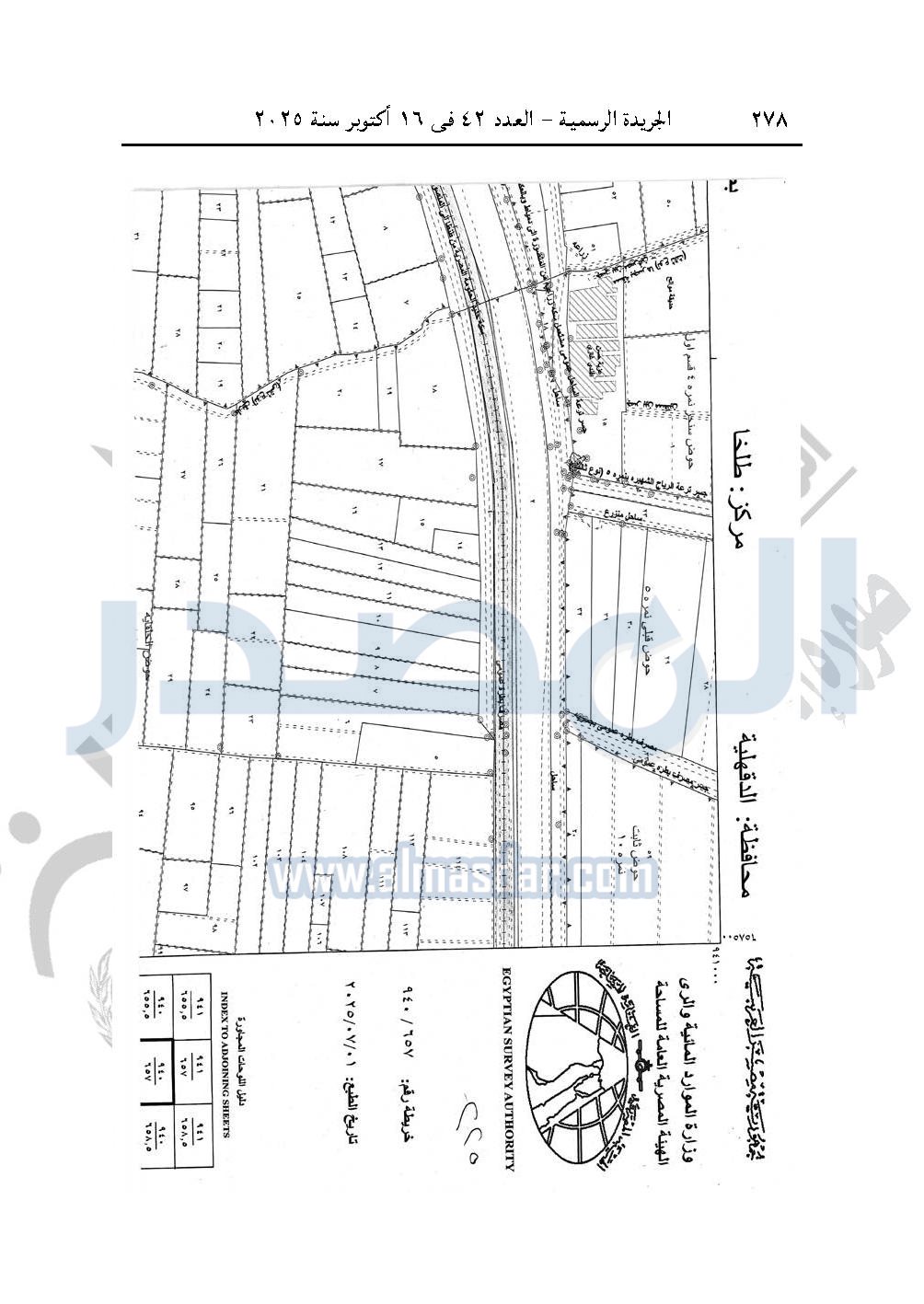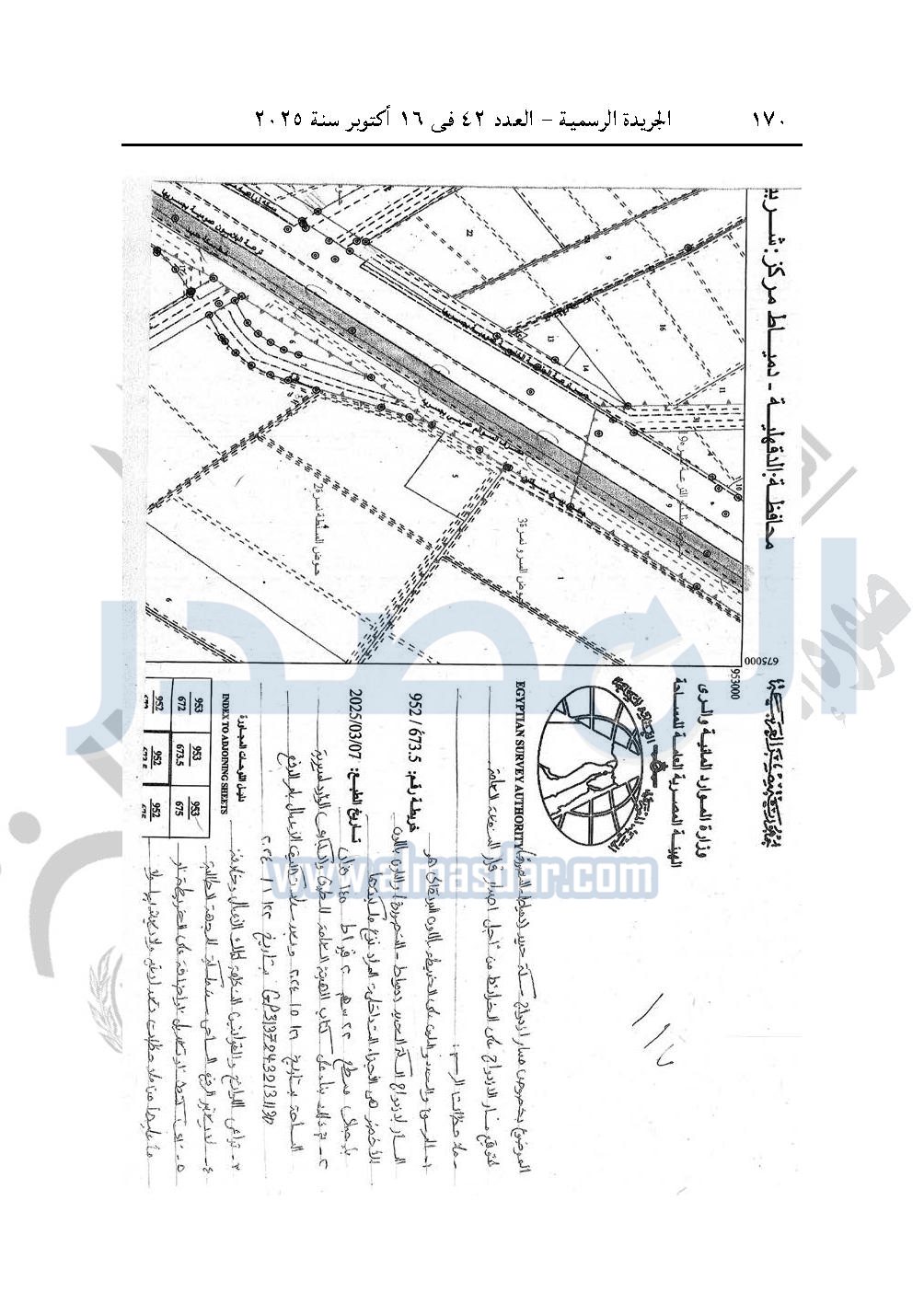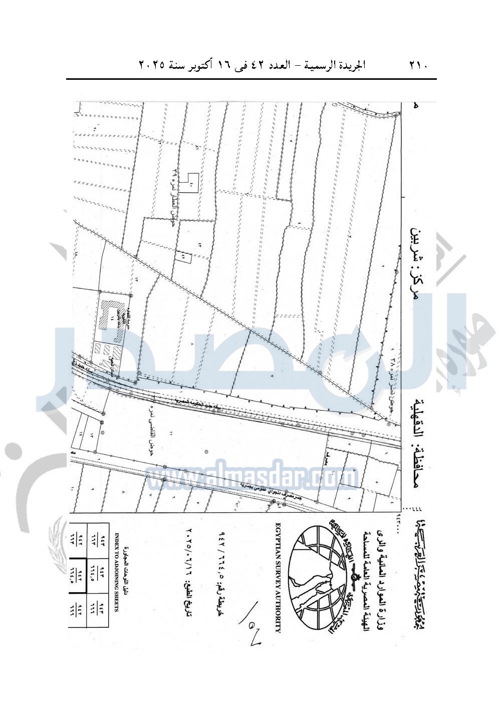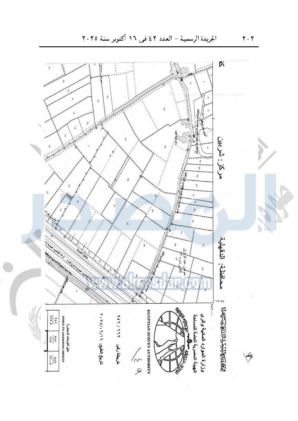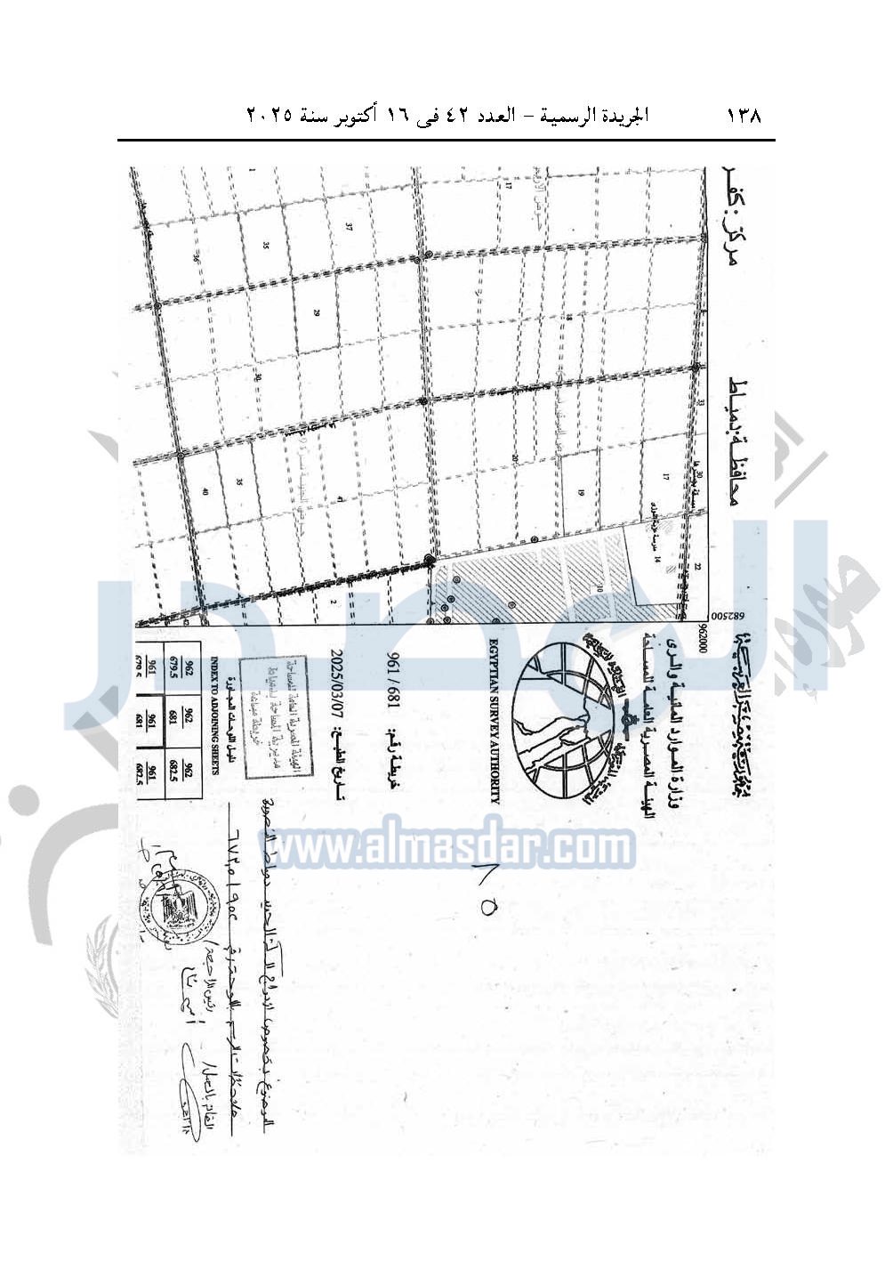نشرت الجريدة الرسمية في العدد 42، بتاريخ 16 أكتوبر 2025، قرار رئيس مجلس الوزراء، رقم 3276 لسنة 2025، بشأن نزع ملكية قطعة أرض لإقامة مشروع إزدواج خط سكة حديد المنصورة – دمياط في نطاق محافظتى الدقهلية ودمياط.