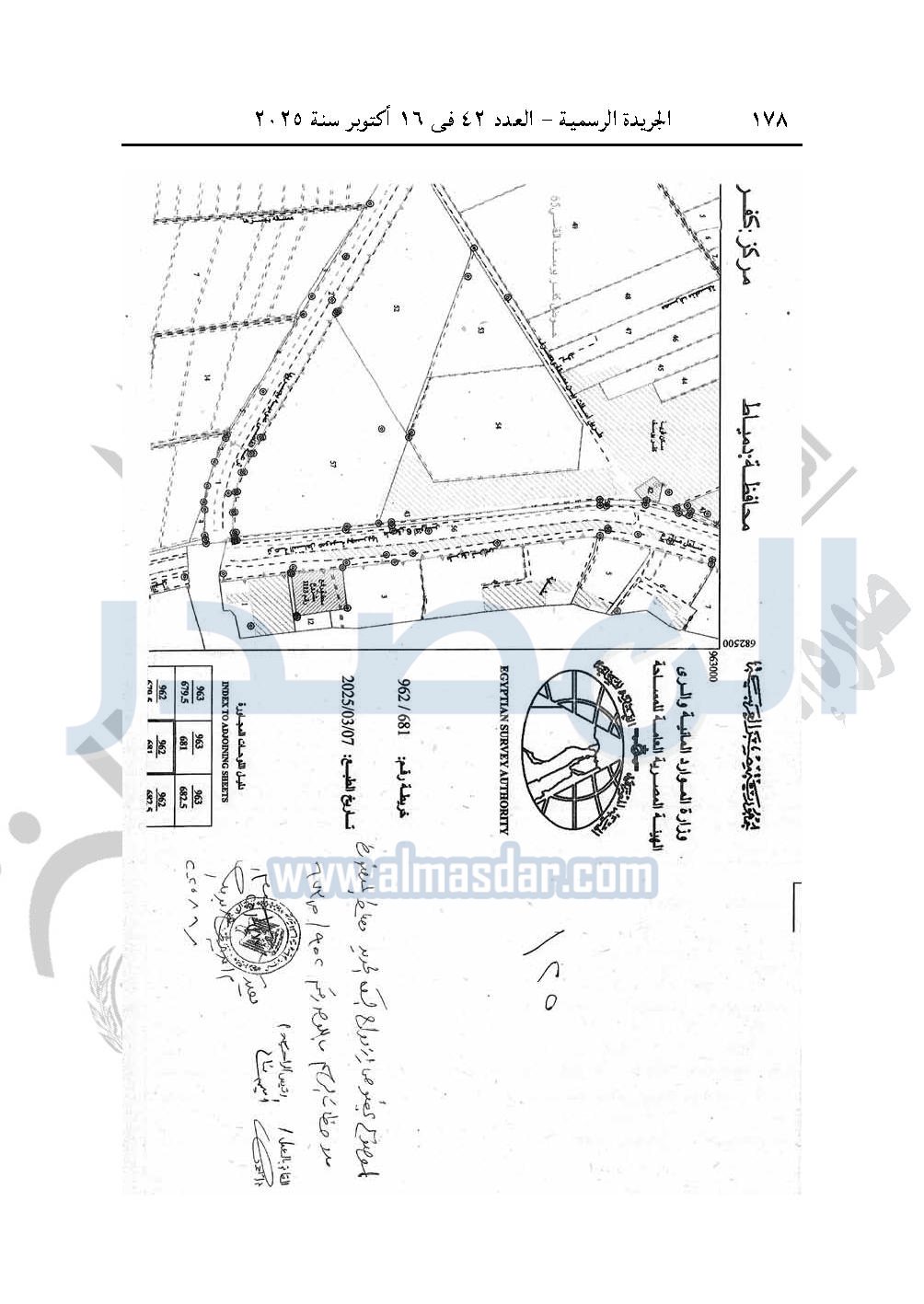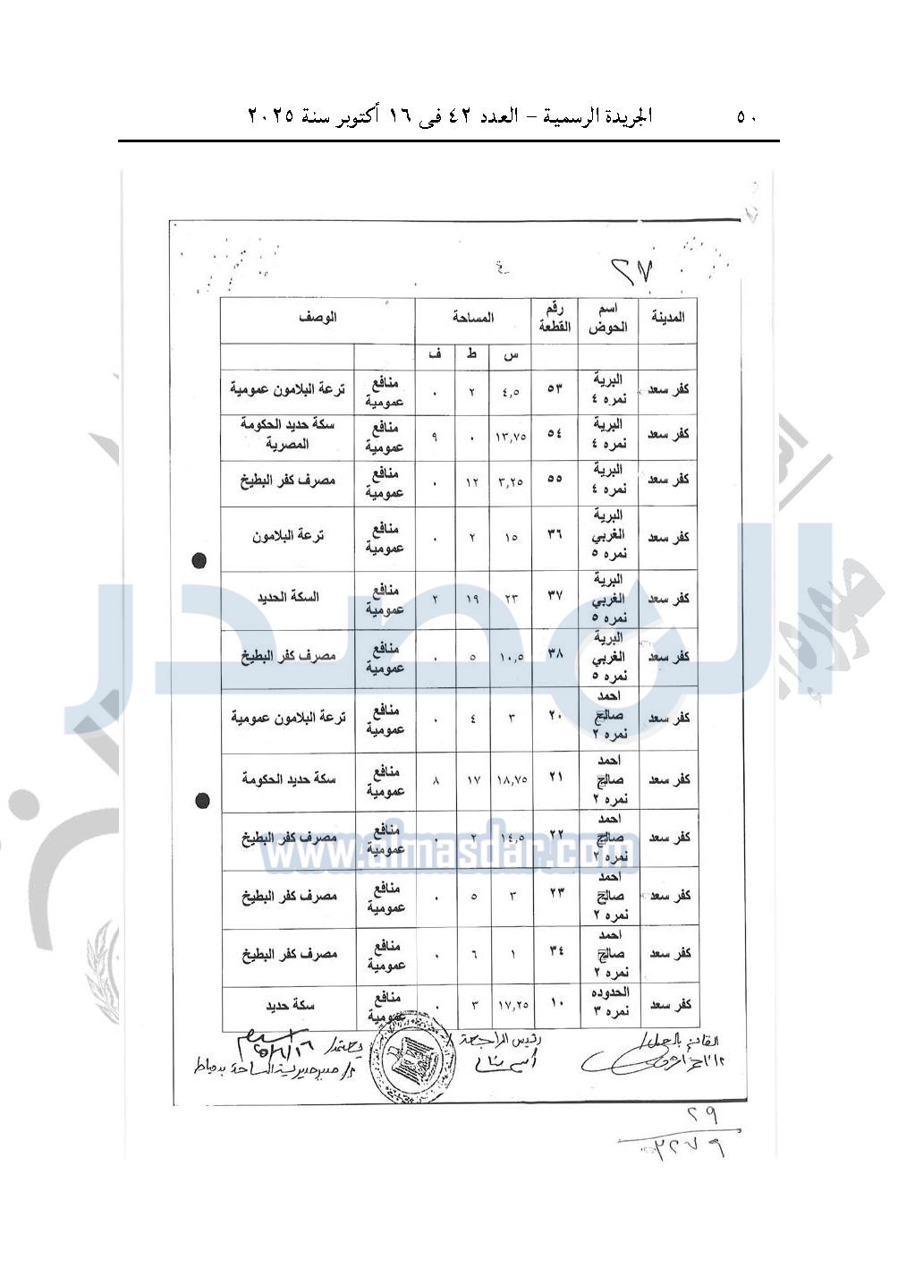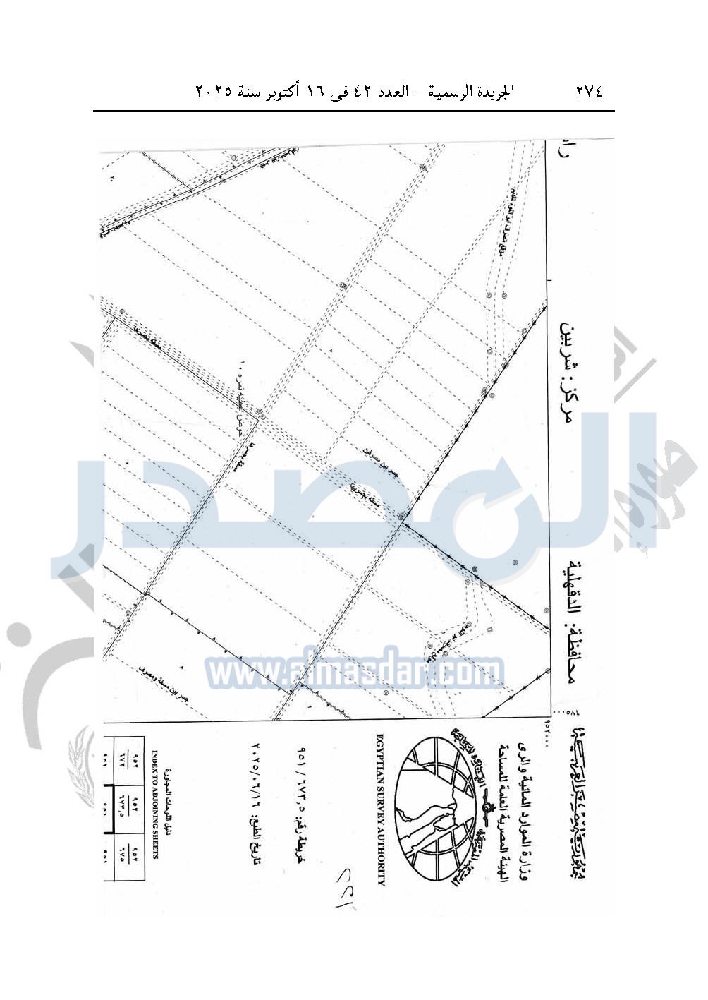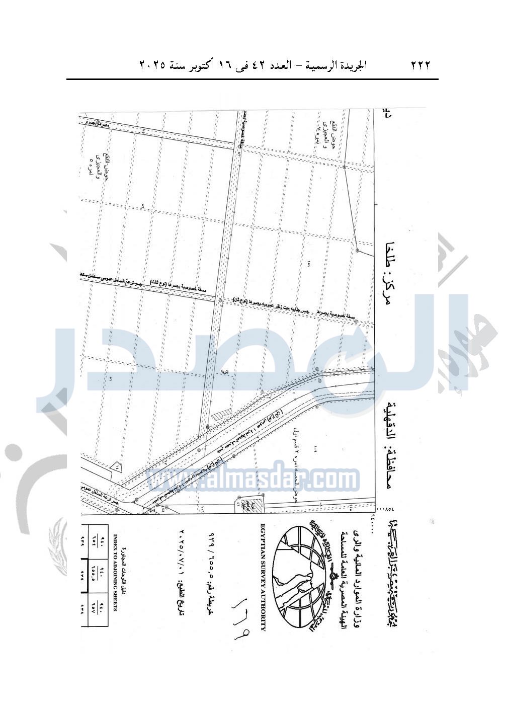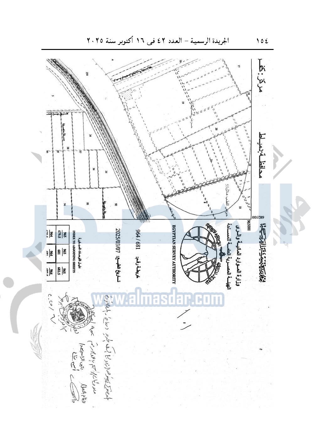 نشرت الجريدة الرسمية في العدد 42، بتاريخ 16 أكتوبر 2025، قرار رئيس مجلس الوزراء، رقم 3276 لسنة 2025، بشأن نزع ملكية قطعة أرض لإقامة مشروع إزدواج خط سكة حديد المنصورة – دمياط في نطاق محافظتى الدقهلية ودمياط.