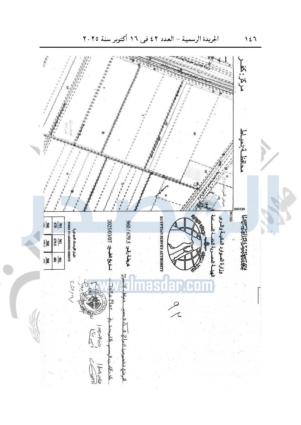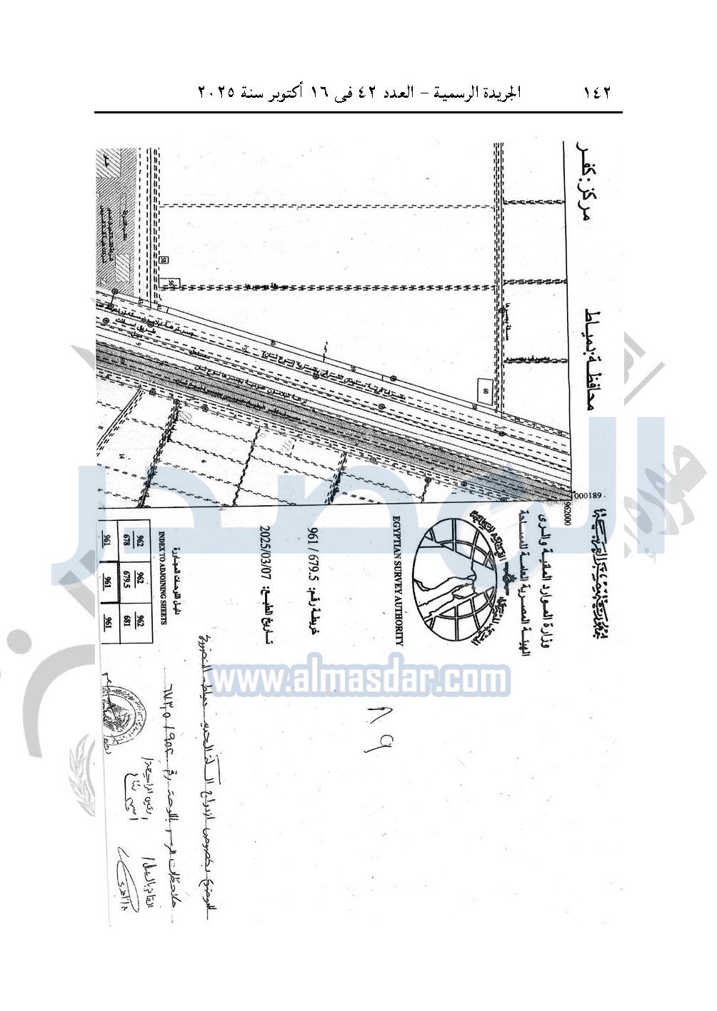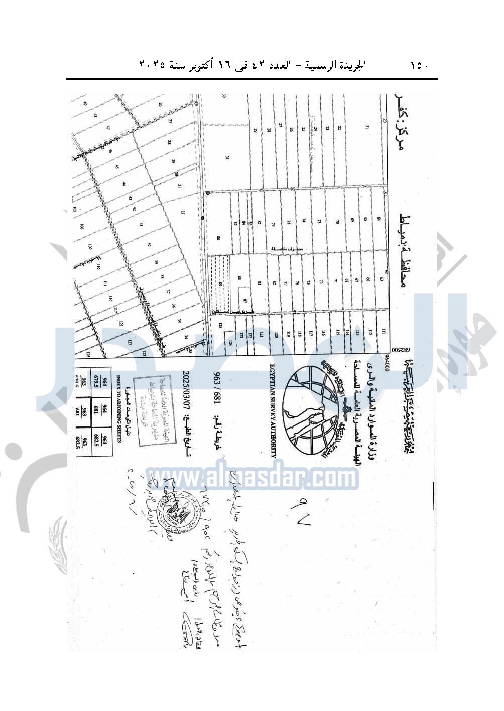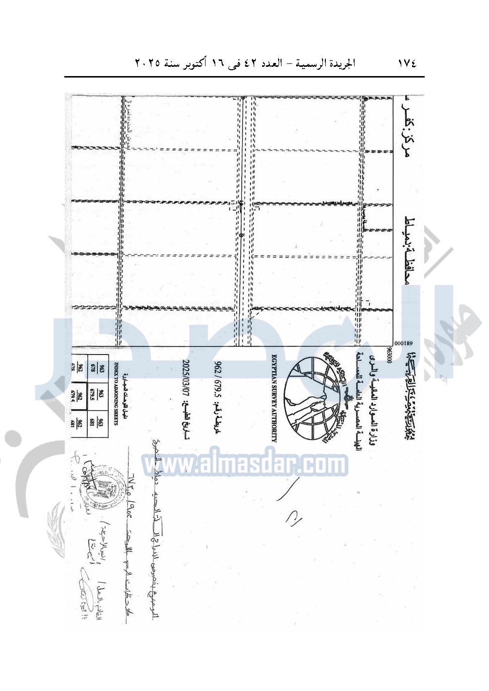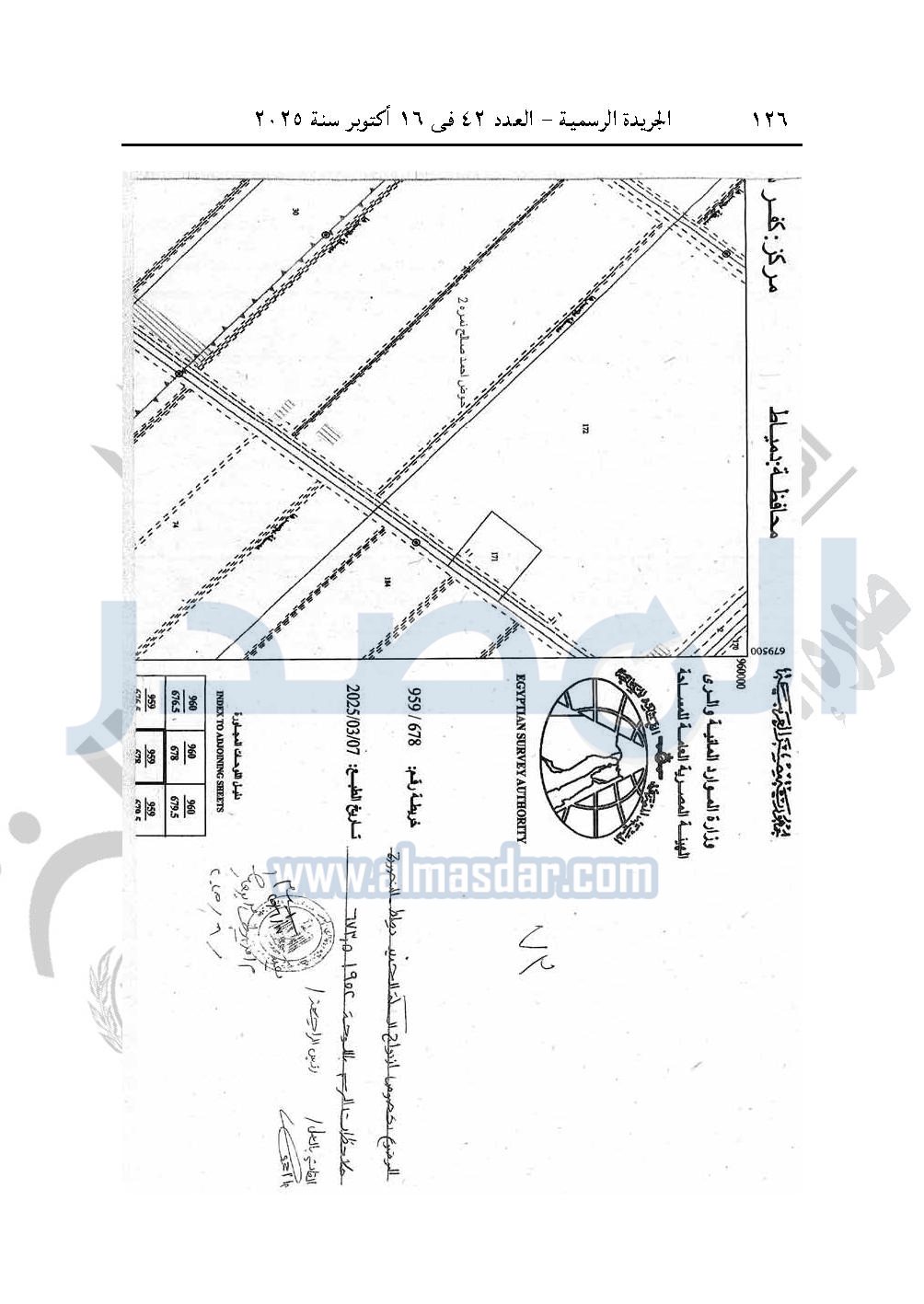 نشرت الجريدة الرسمية في العدد 42، بتاريخ 16 أكتوبر 2025، قرار رئيس مجلس الوزراء، رقم 3276 لسنة 2025، بشأن نزع ملكية قطعة أرض لإقامة مشروع إزدواج خط سكة حديد المنصورة – دمياط في نطاق محافظتى الدقهلية ودمياط.