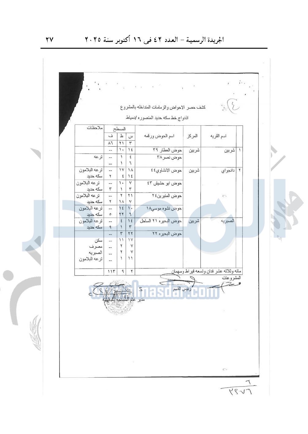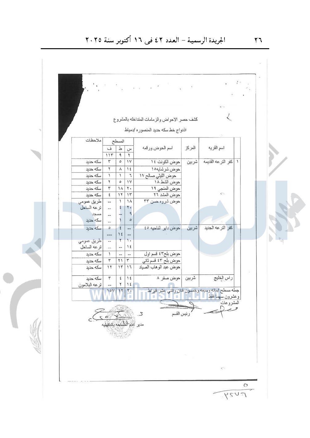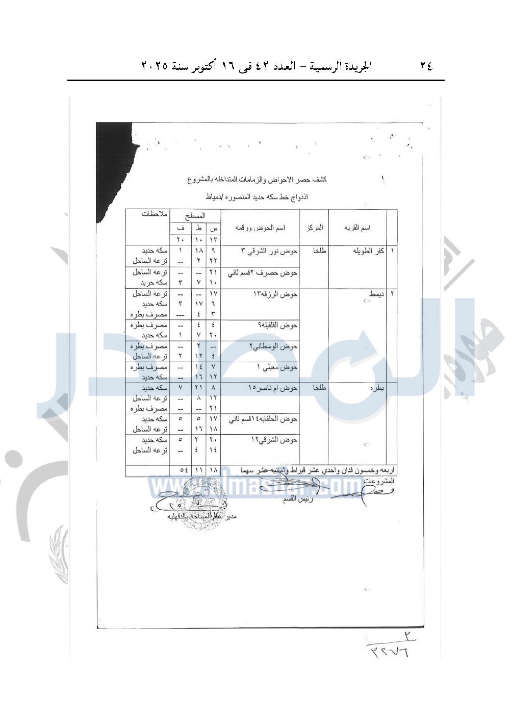 نزع ملكية أراضي وعقارات لتنفيذ مشروع إزدواج خط سكة حديد «المنصورة – دمياط»