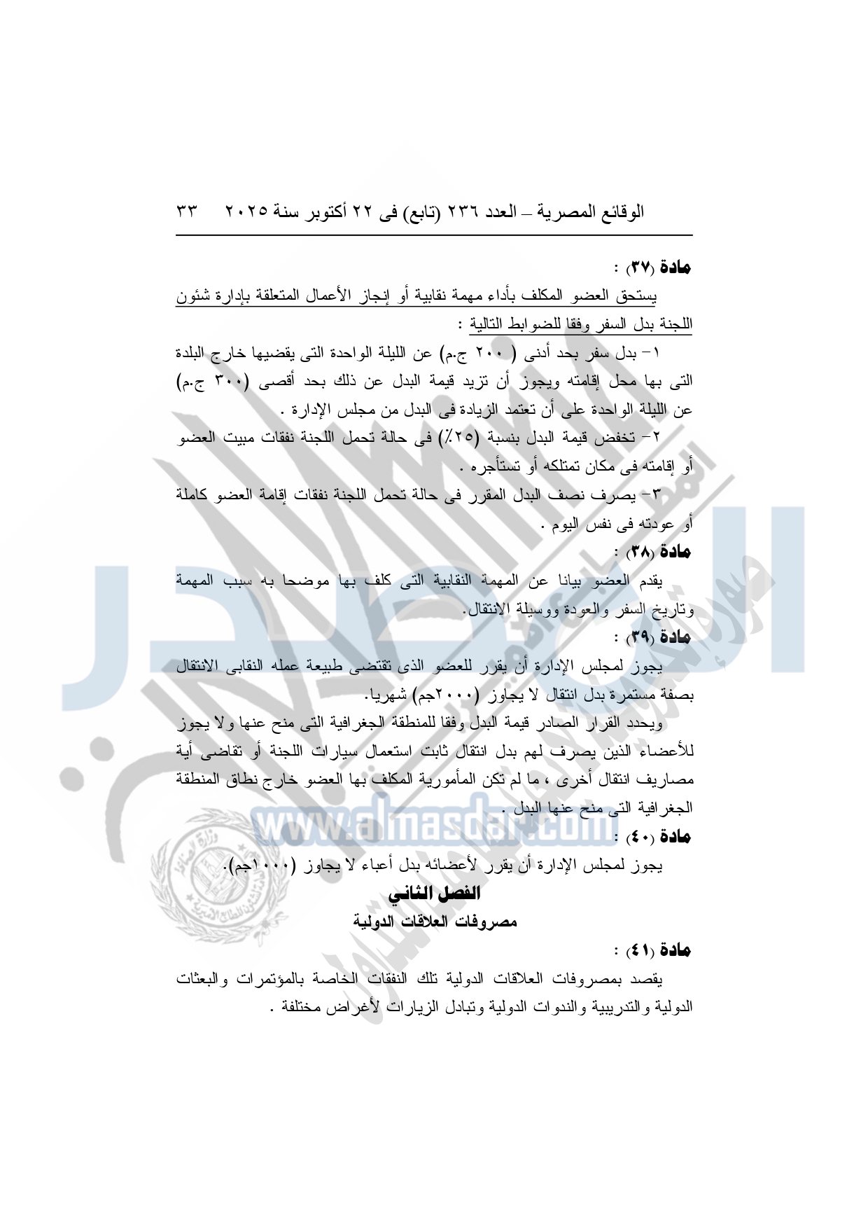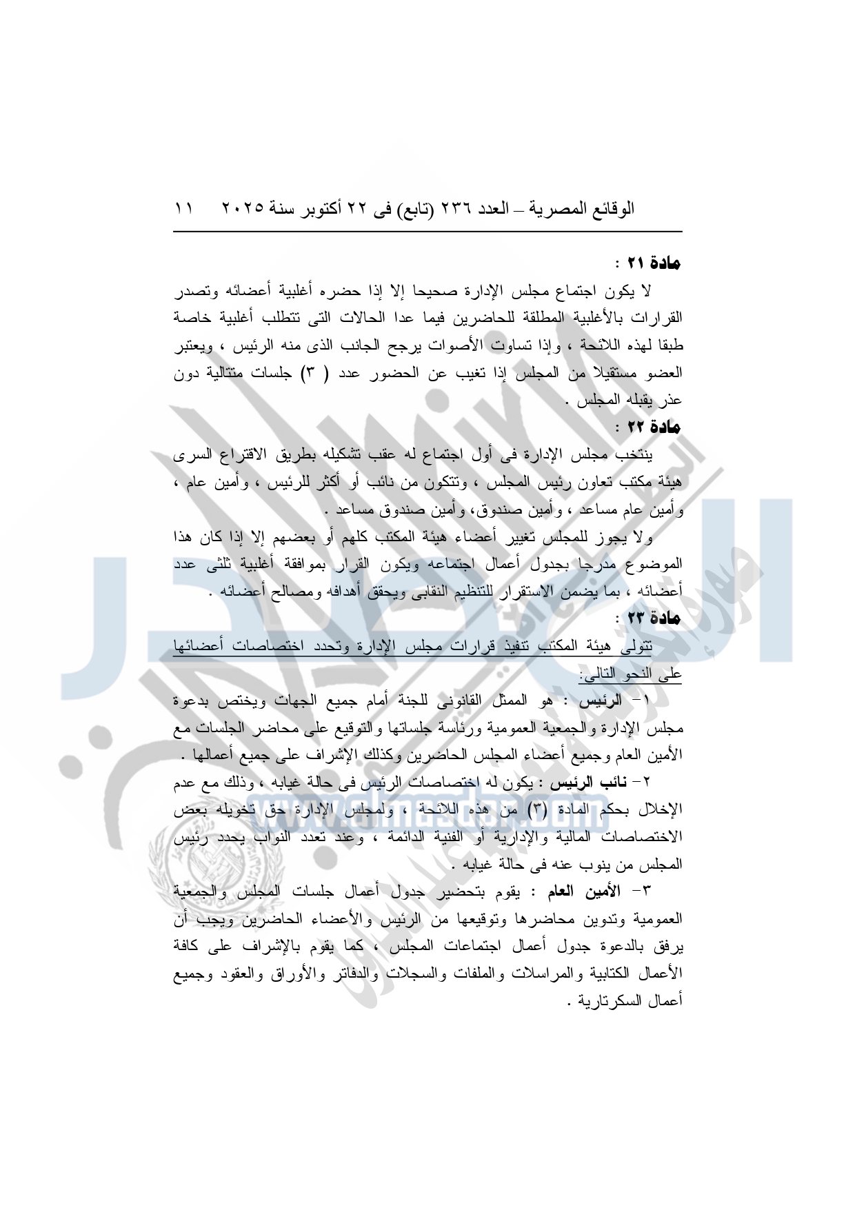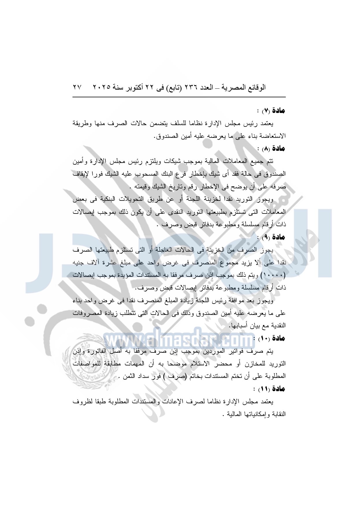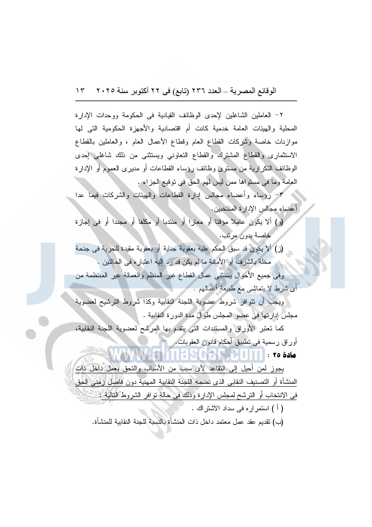 نشرت الوقائع المصرية في العدد 236 "تابع" الصادر في 22 أكتوبر سنة 2025، لائحة اللجنة النقابية للعاملين ببنك مصر.
