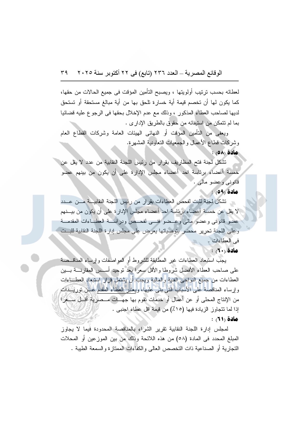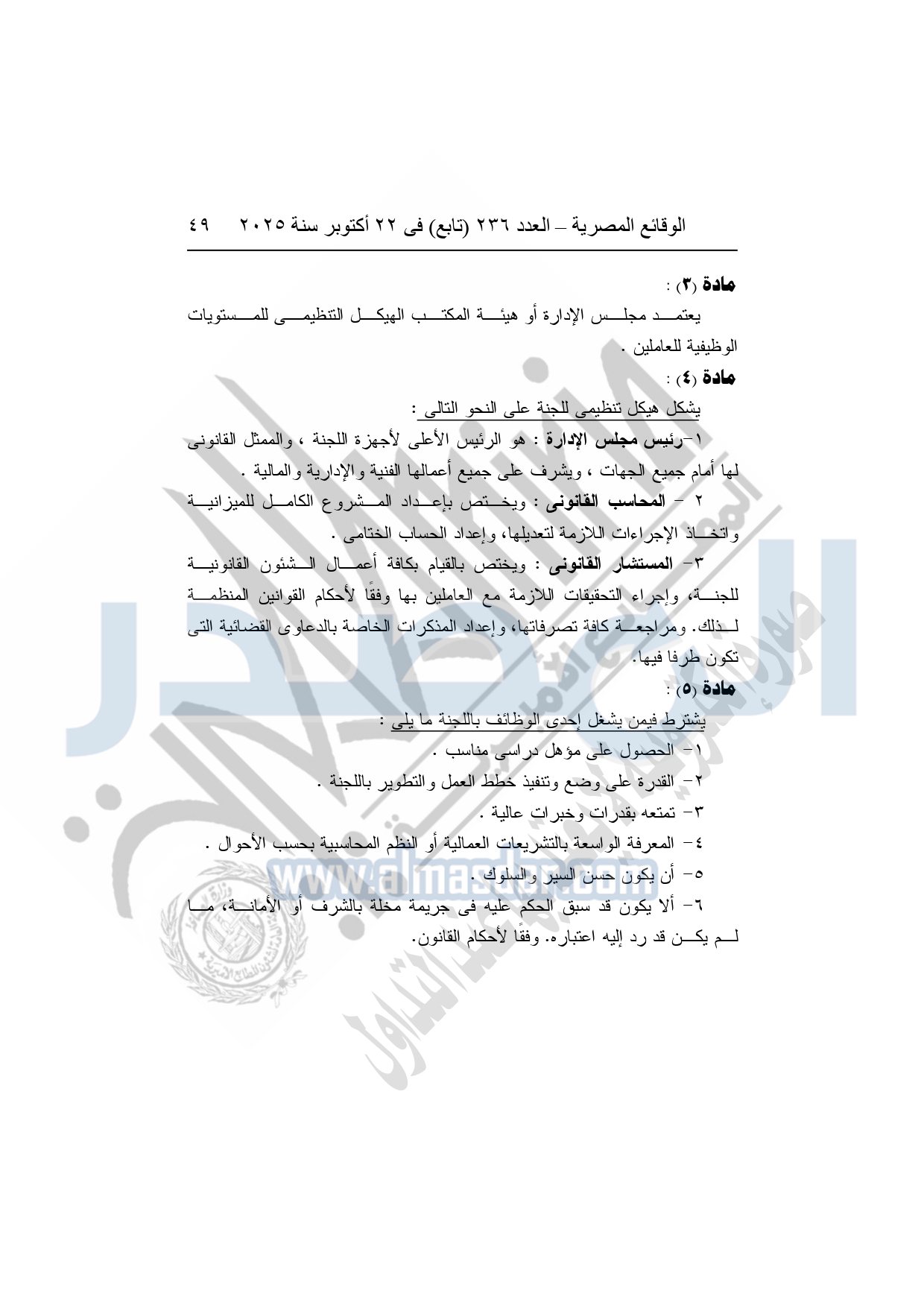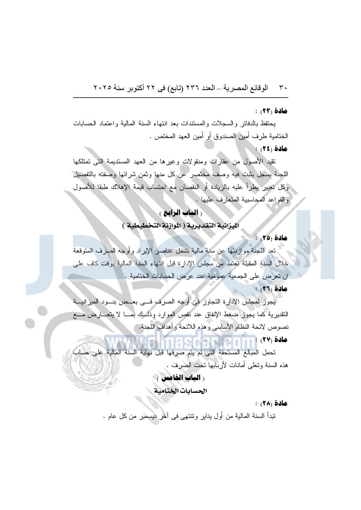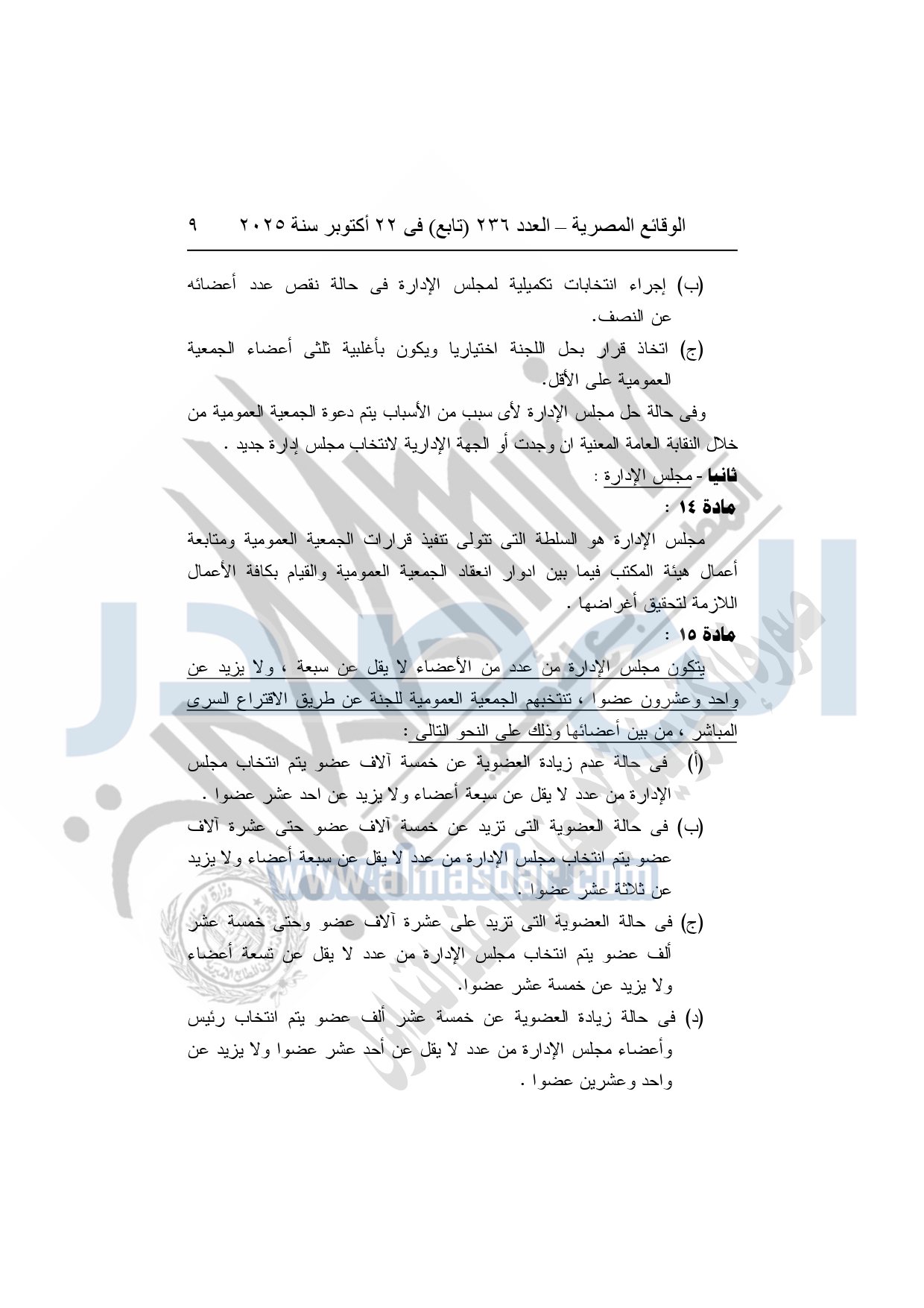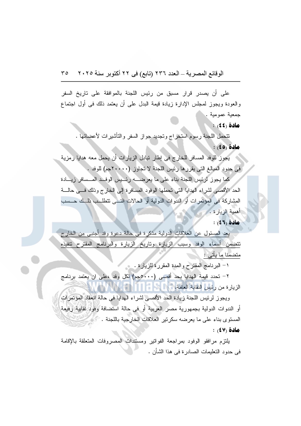 نشرت الوقائع المصرية في العدد 236 "تابع" الصادر في 22 أكتوبر سنة 2025، لائحة اللجنة النقابية للعاملين ببنك مصر.