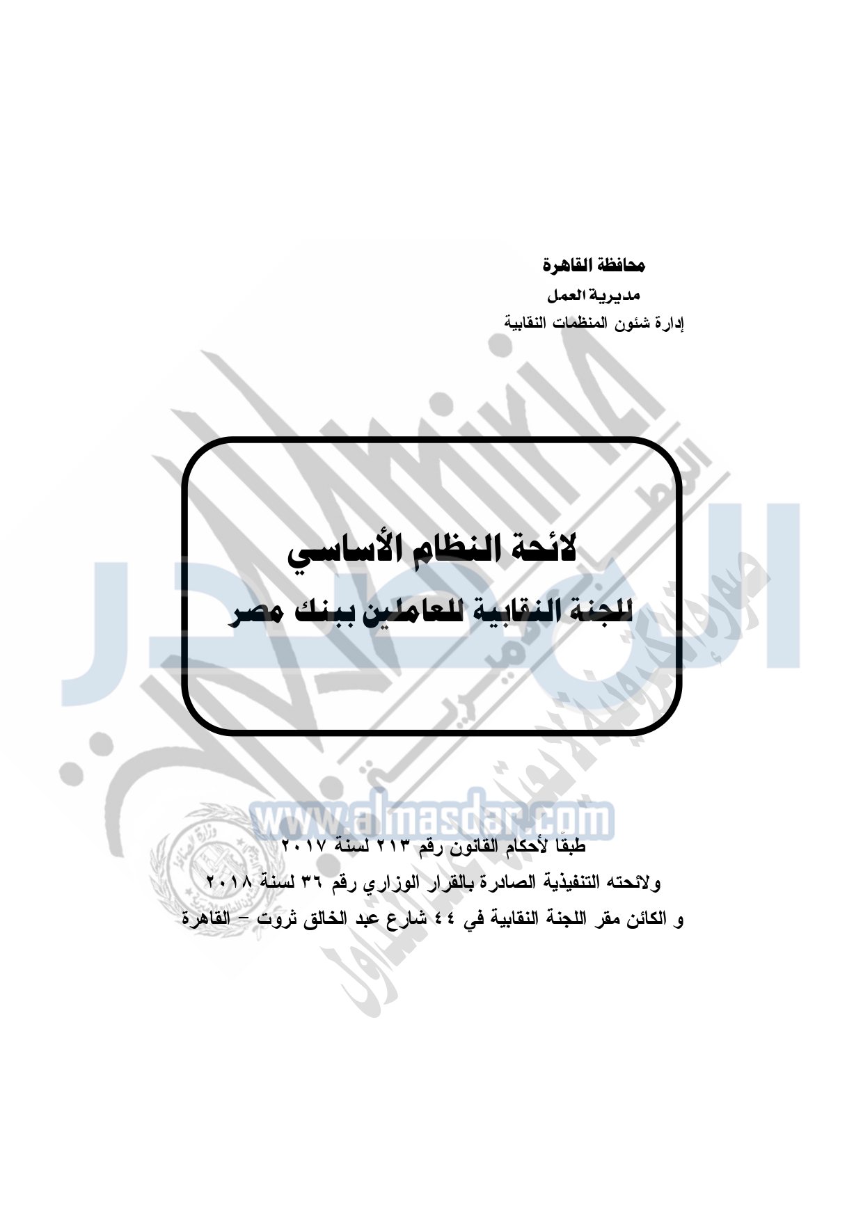 إصدار لائحة النظام الأساسي للجنة النقابية للعاملين في بنك مصر