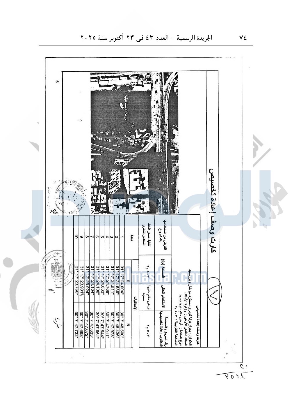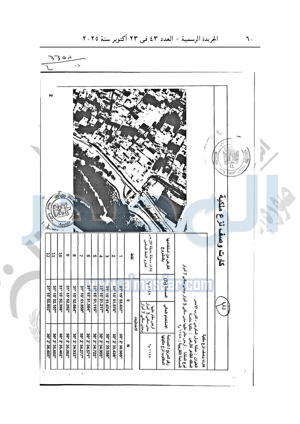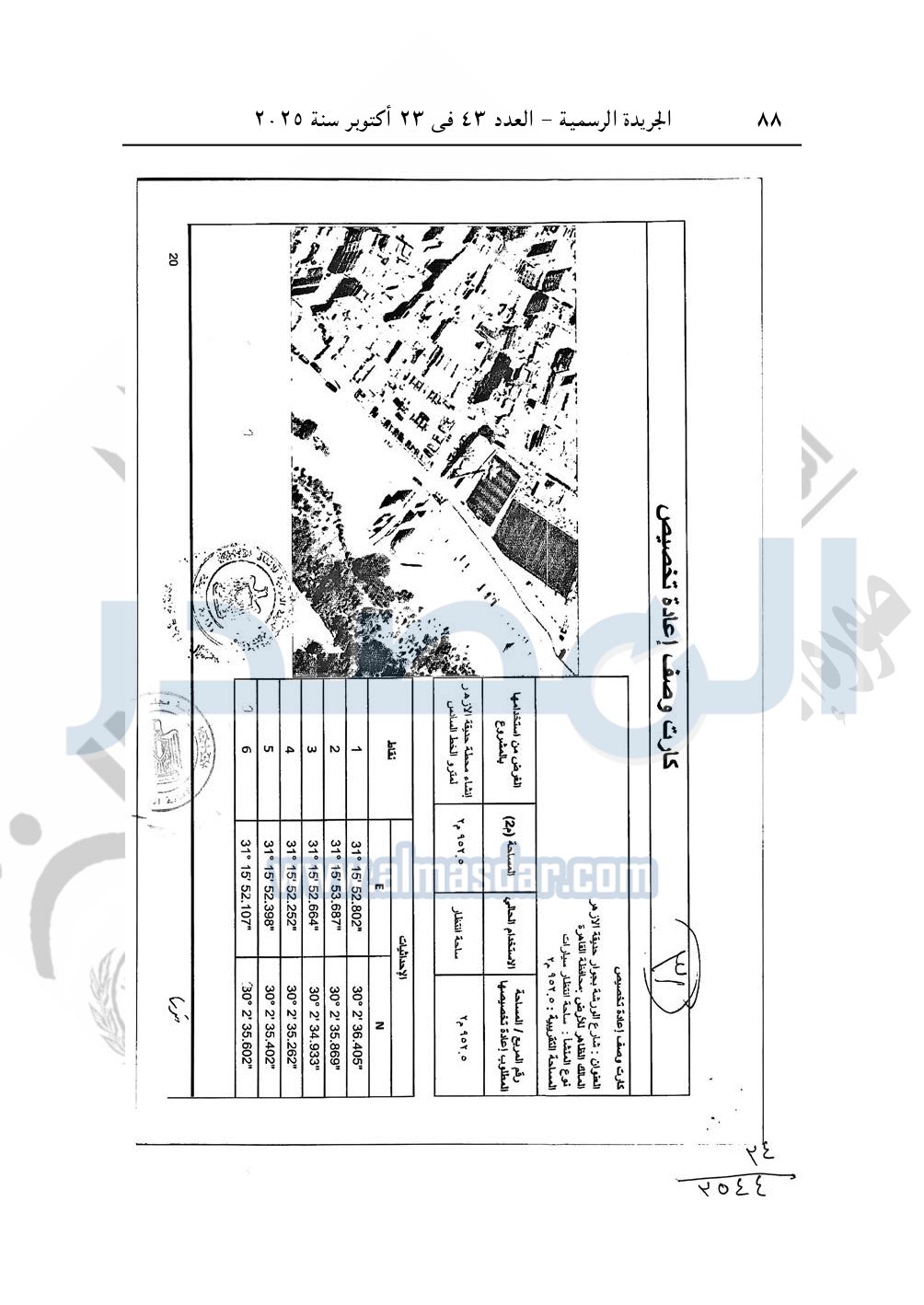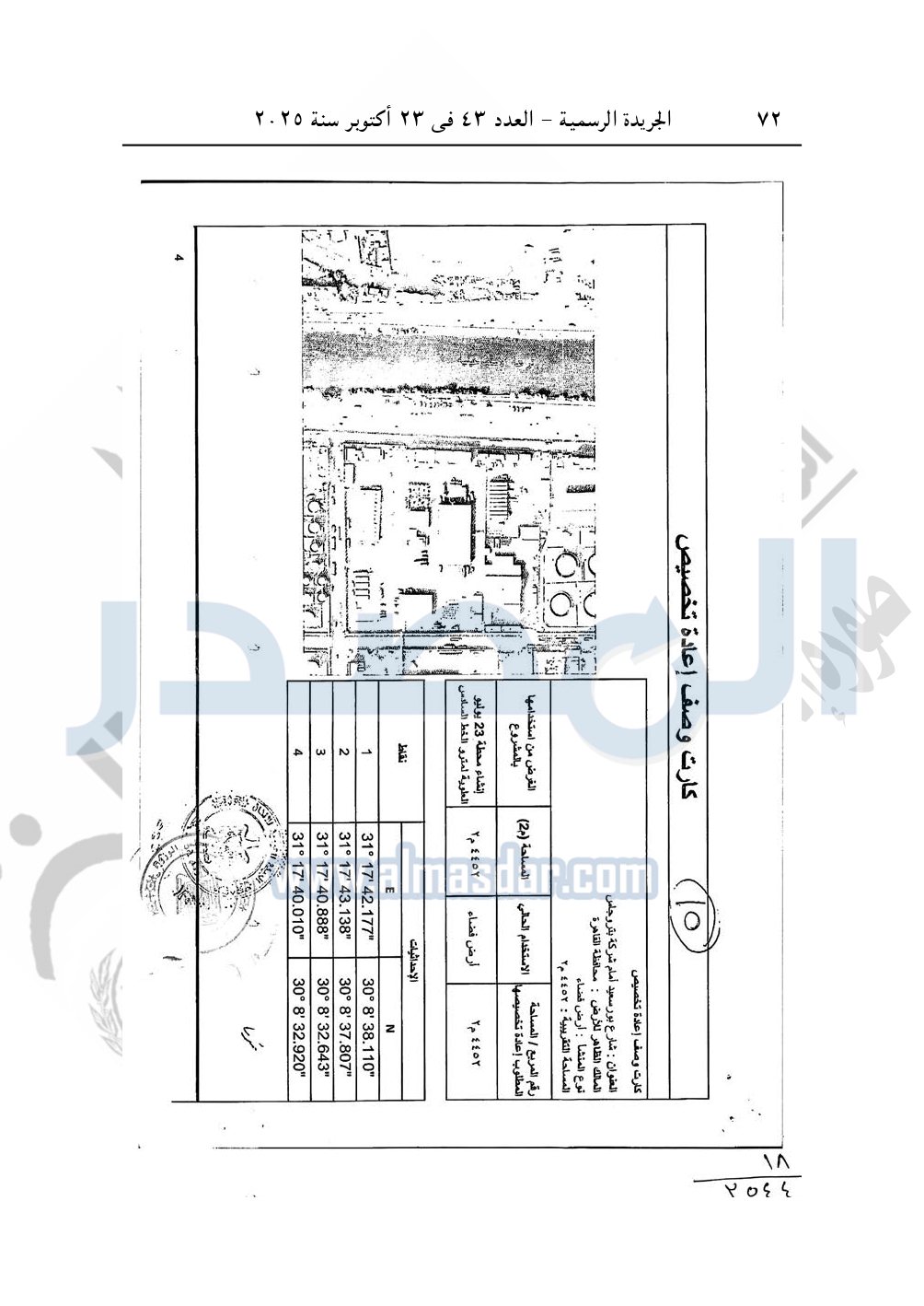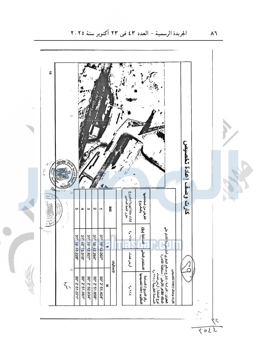 تخصيص الأراضى والعقارات المملوكة لجهات حكومية، والموضح بيانها، وملاكها الظاهرين بالخرائط المساحية والكشوف وكروت الوصف المرفقة، ويُعدل تخصيصها لصالح الهيئة القومية للأنفاق.