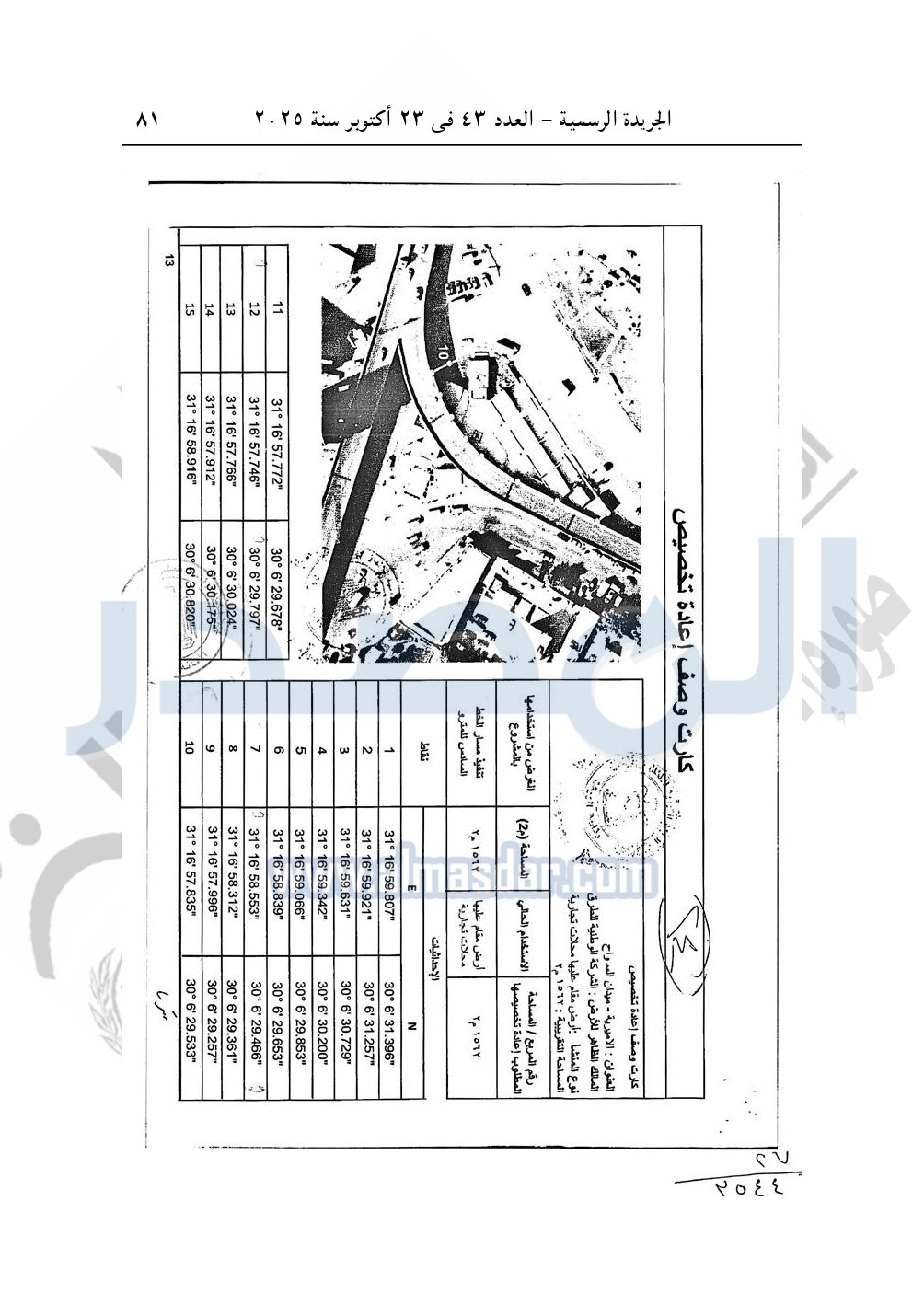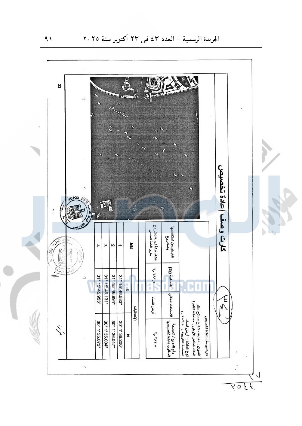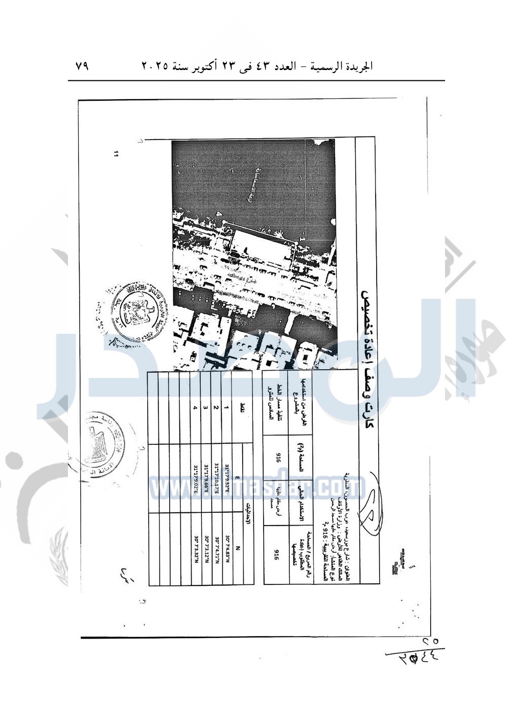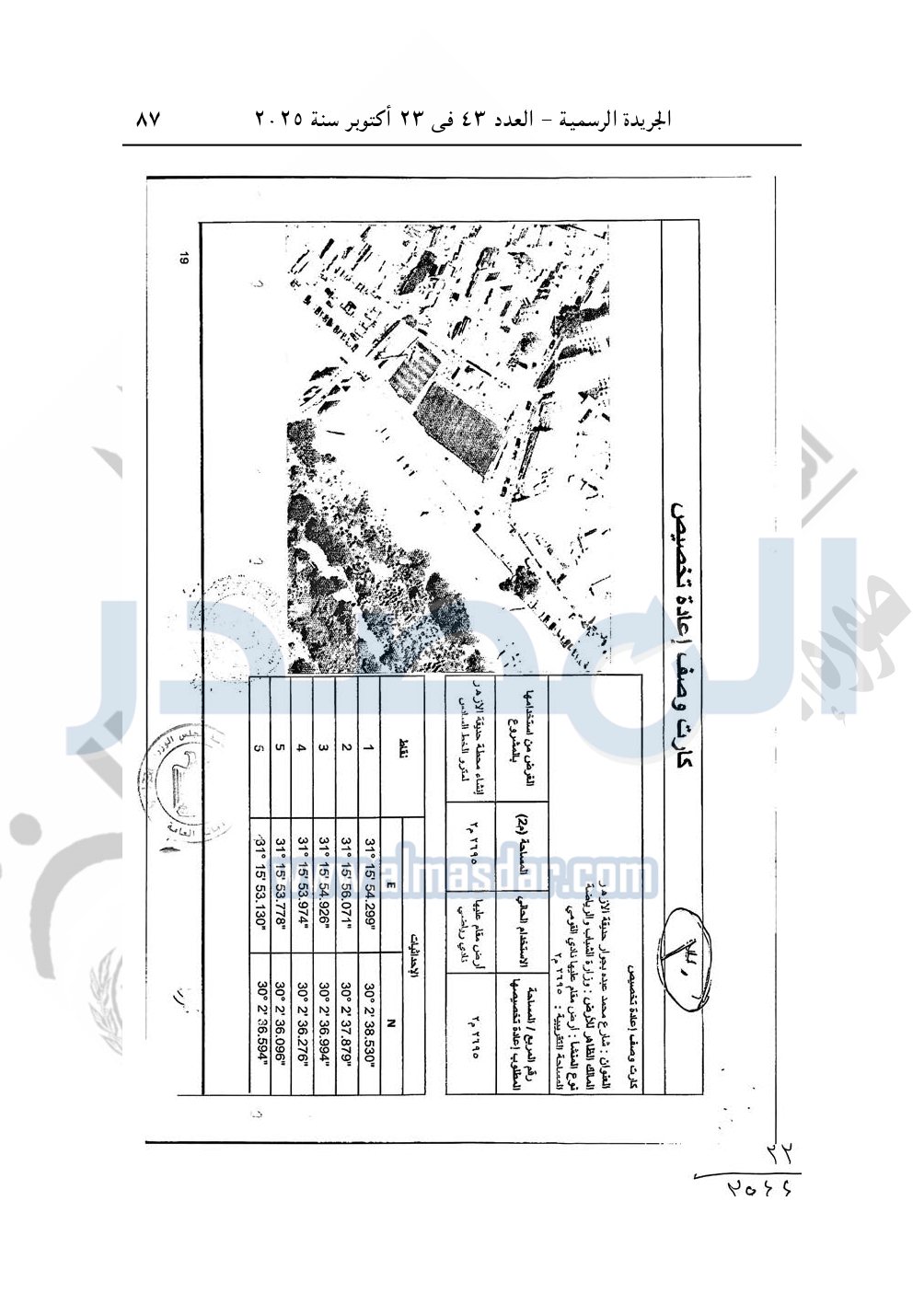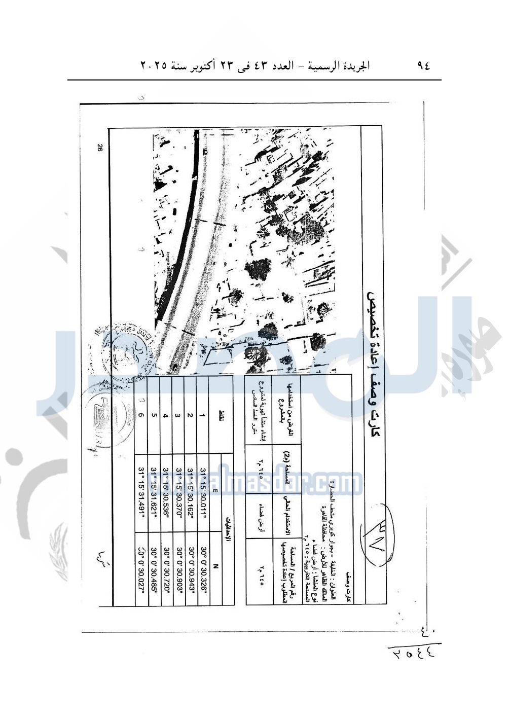 تخصيص الأراضى والعقارات المملوكة لجهات حكومية، والموضح بيانها، وملاكها الظاهرين بالخرائط المساحية والكشوف وكروت الوصف المرفقة، ويُعدل تخصيصها لصالح الهيئة القومية للأنفاق.
