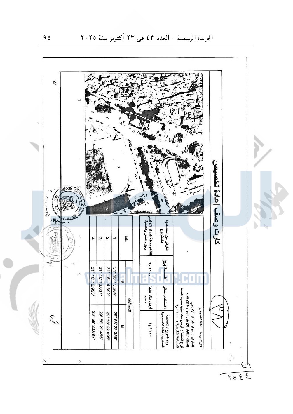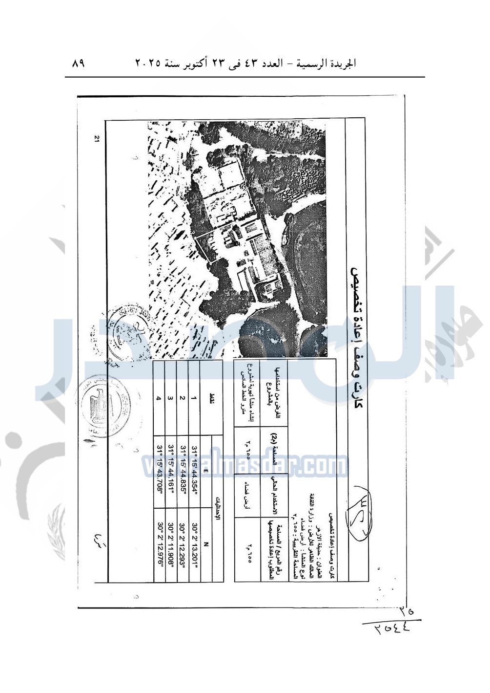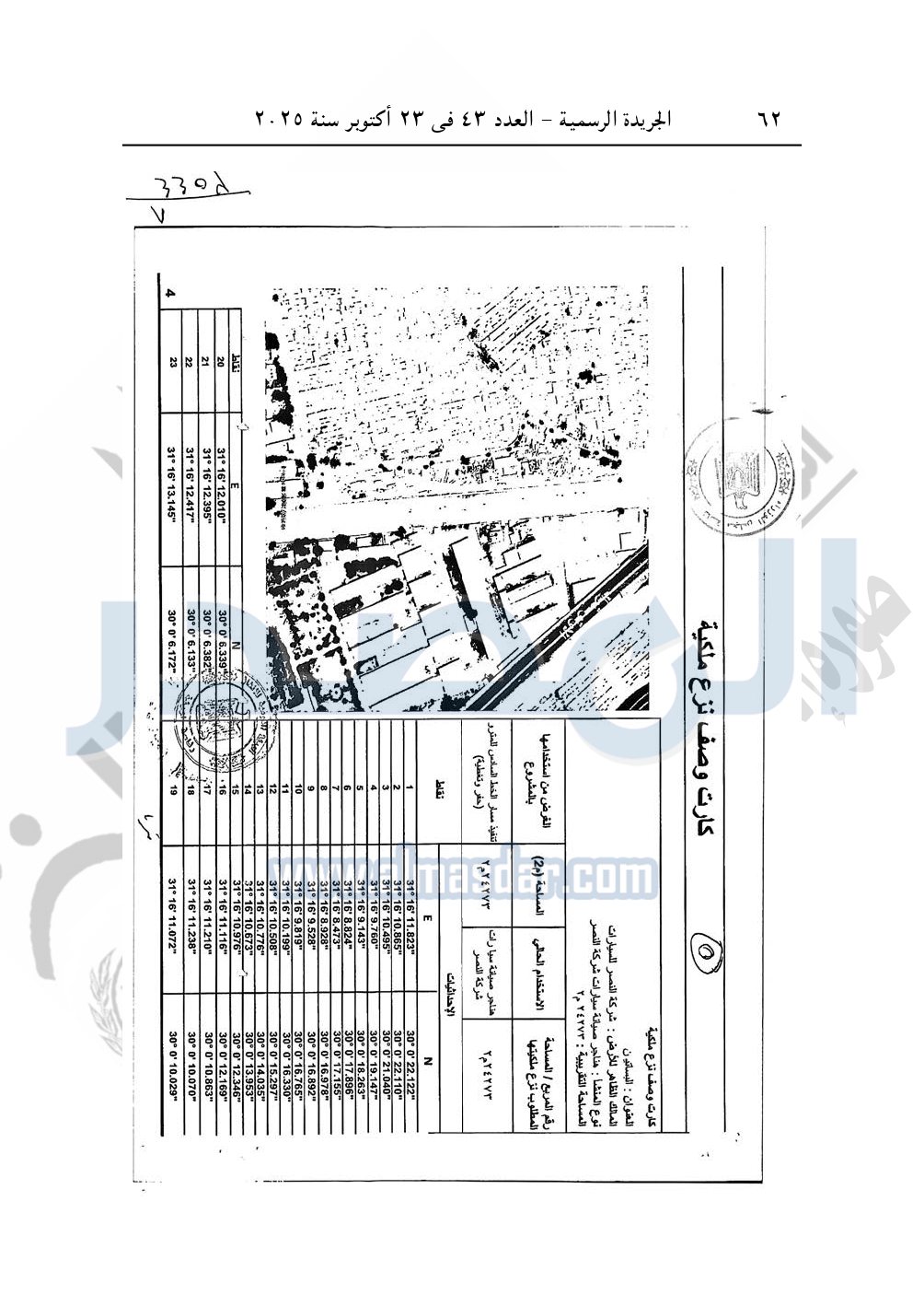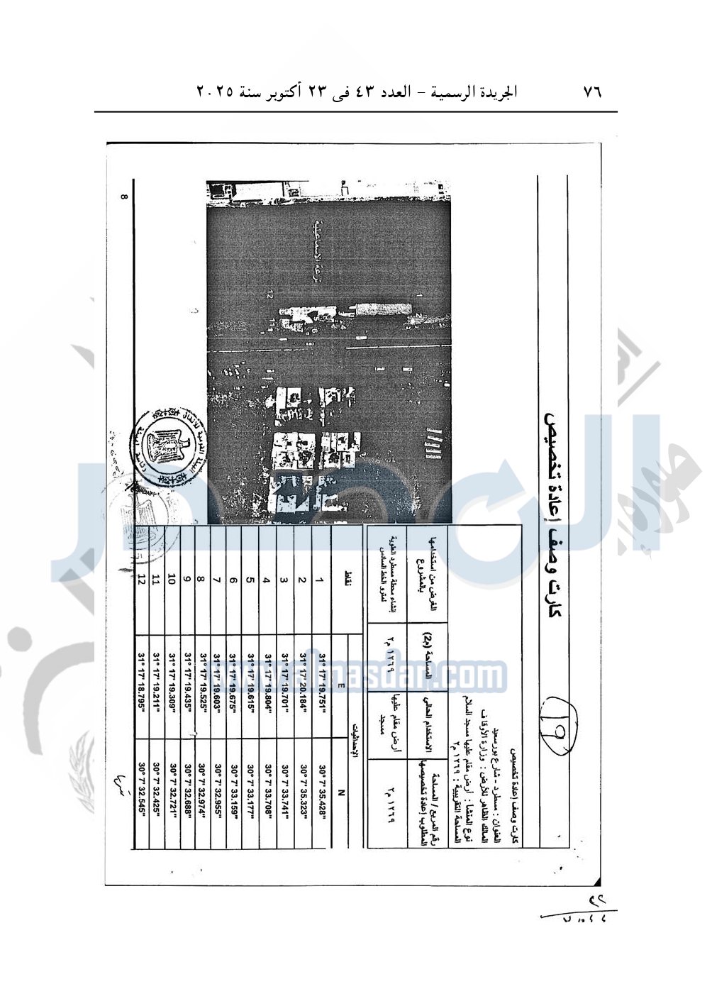تخصيص الأراضى والعقارات المملوكة لجهات حكومية، والموضح بيانها، وملاكها الظاهرين بالخرائط المساحية والكشوف وكروت الوصف المرفقة، ويُعدل تخصيصها لصالح الهيئة القومية للأنفاق.
