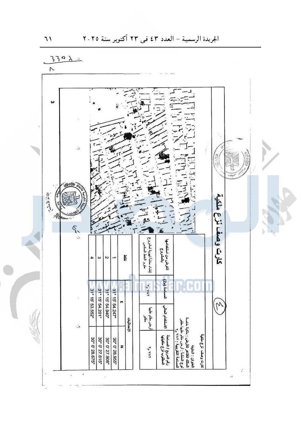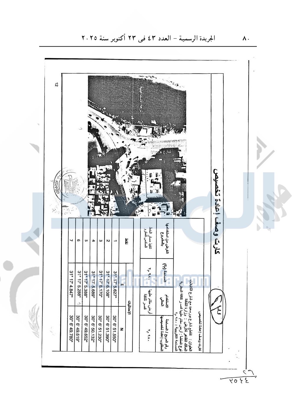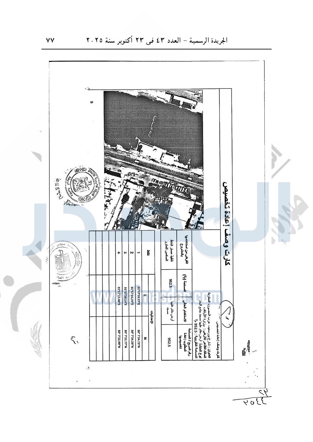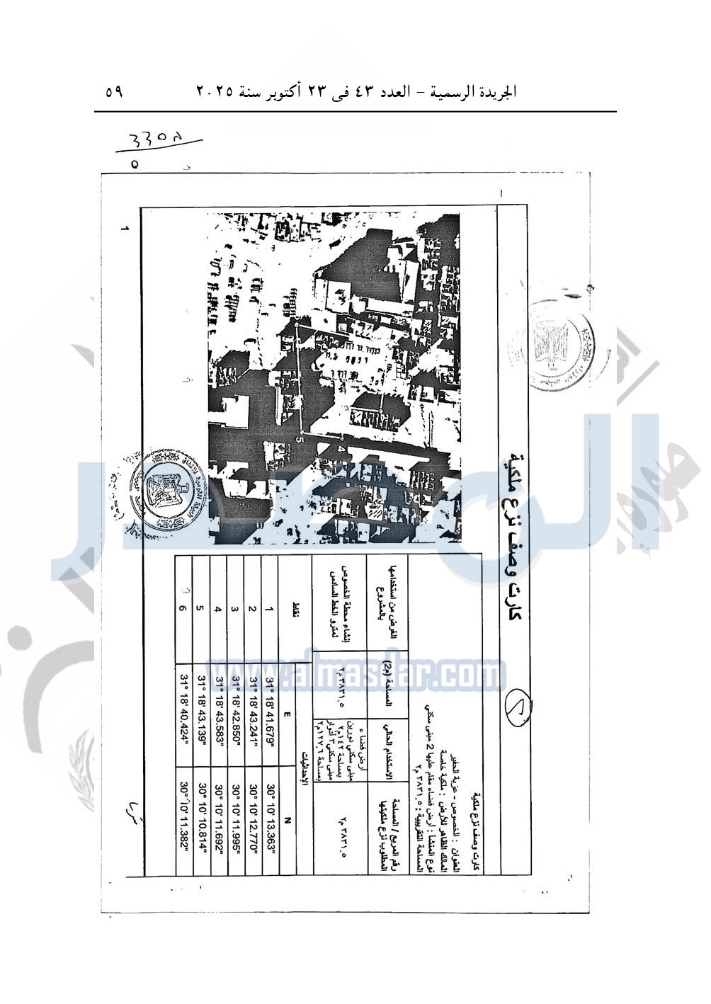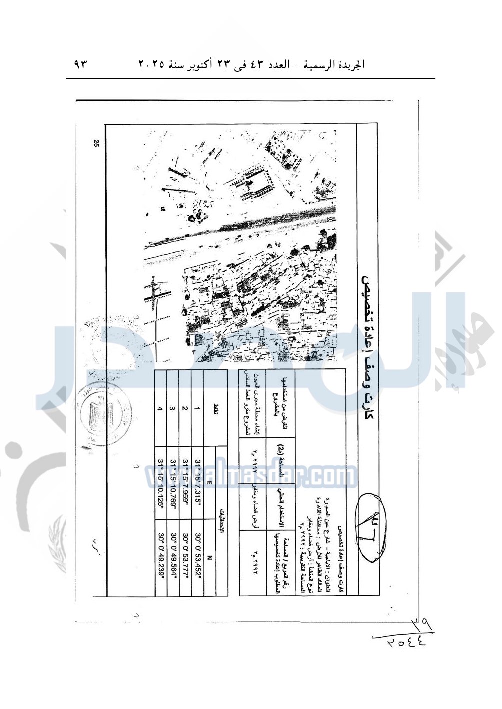 تخصيص الأراضى والعقارات المملوكة لجهات حكومية، والموضح بيانها، وملاكها الظاهرين بالخرائط المساحية والكشوف وكروت الوصف المرفقة، ويُعدل تخصيصها لصالح الهيئة القومية للأنفاق.