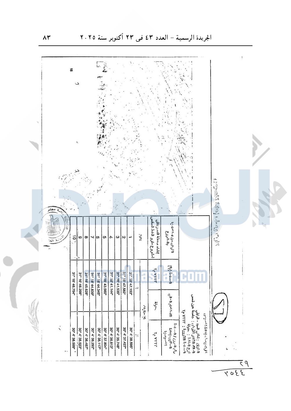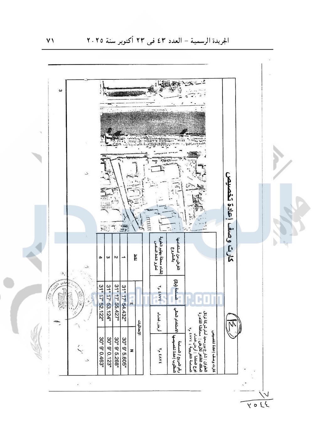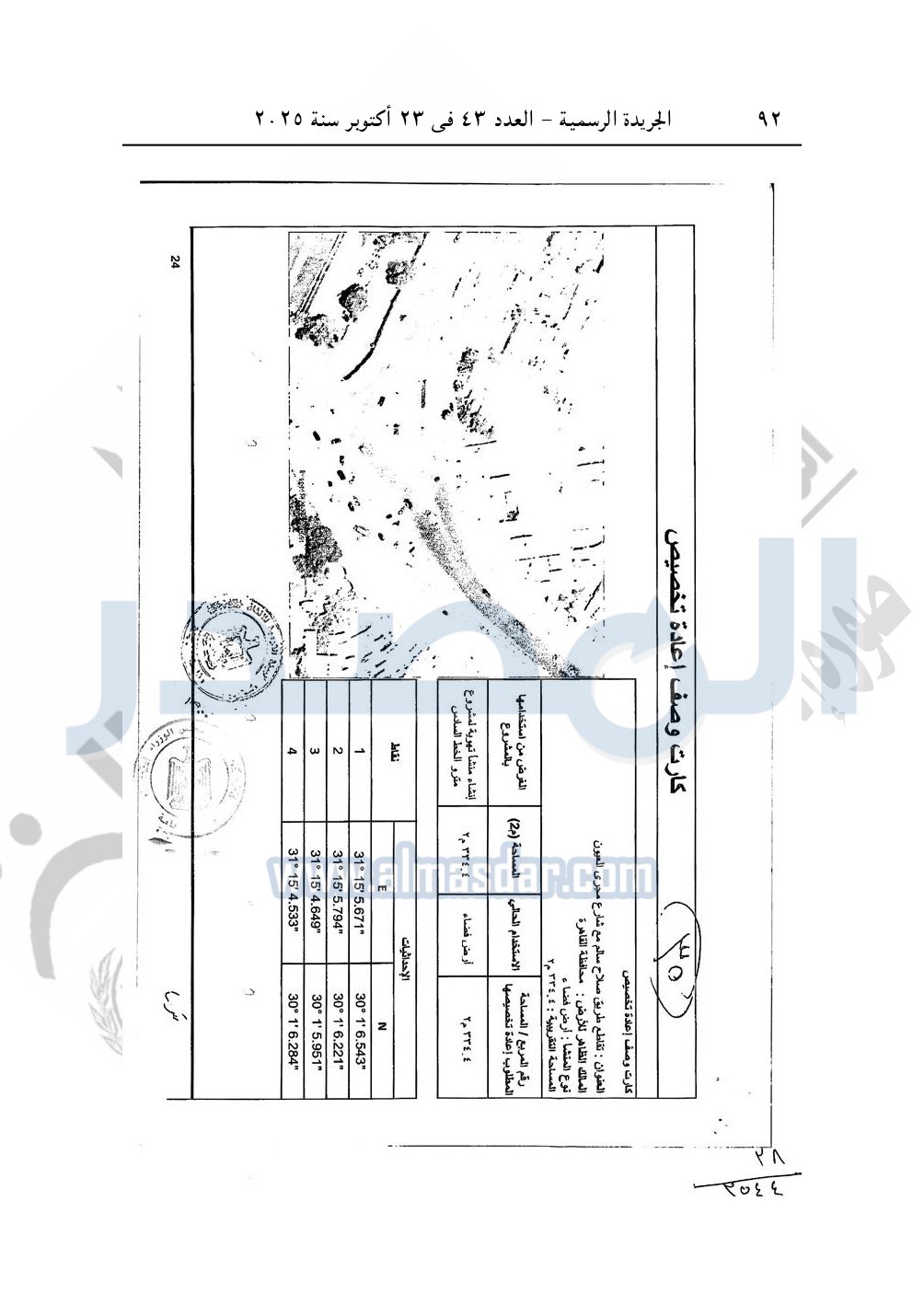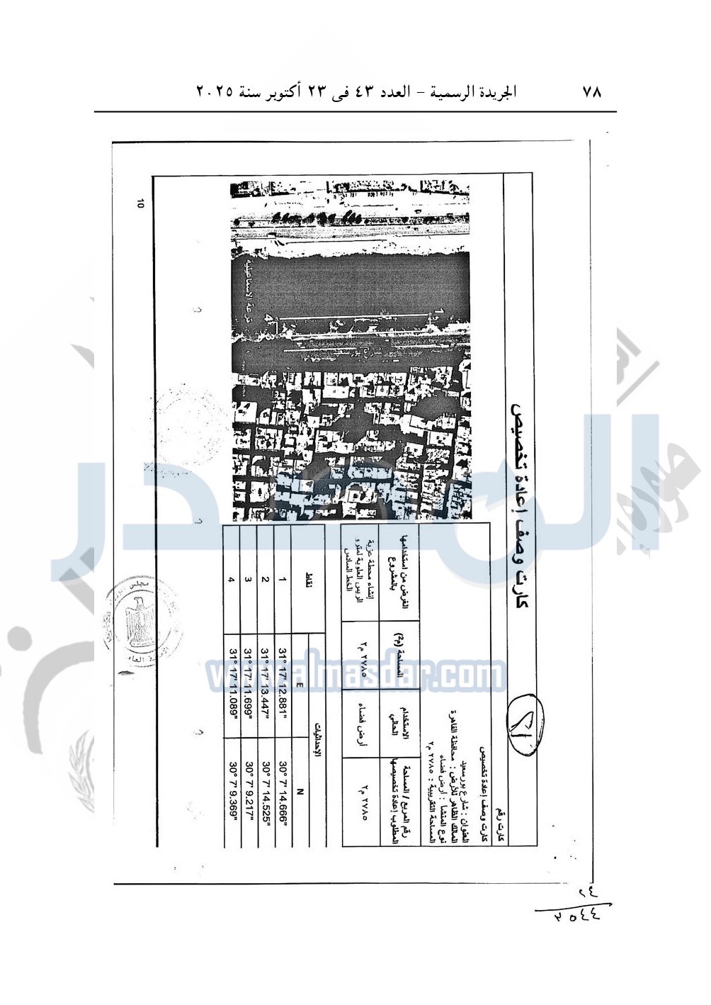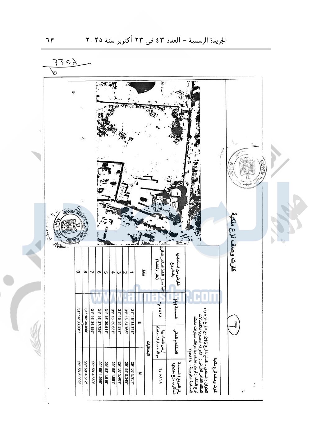 تخصيص الأراضى والعقارات المملوكة لجهات حكومية، والموضح بيانها، وملاكها الظاهرين بالخرائط المساحية والكشوف وكروت الوصف المرفقة، ويُعدل تخصيصها لصالح الهيئة القومية للأنفاق.