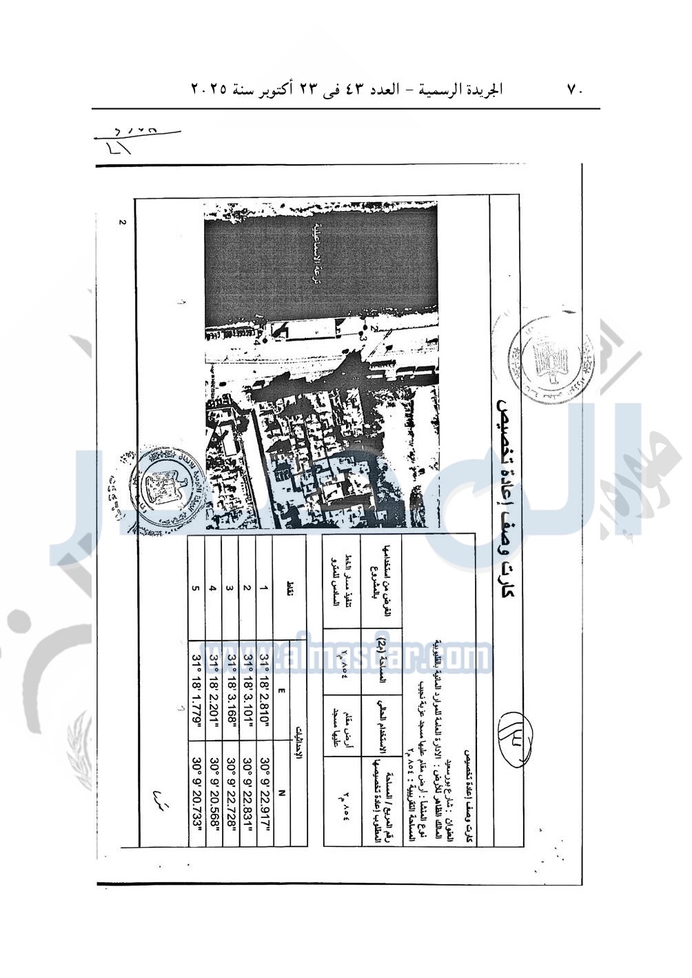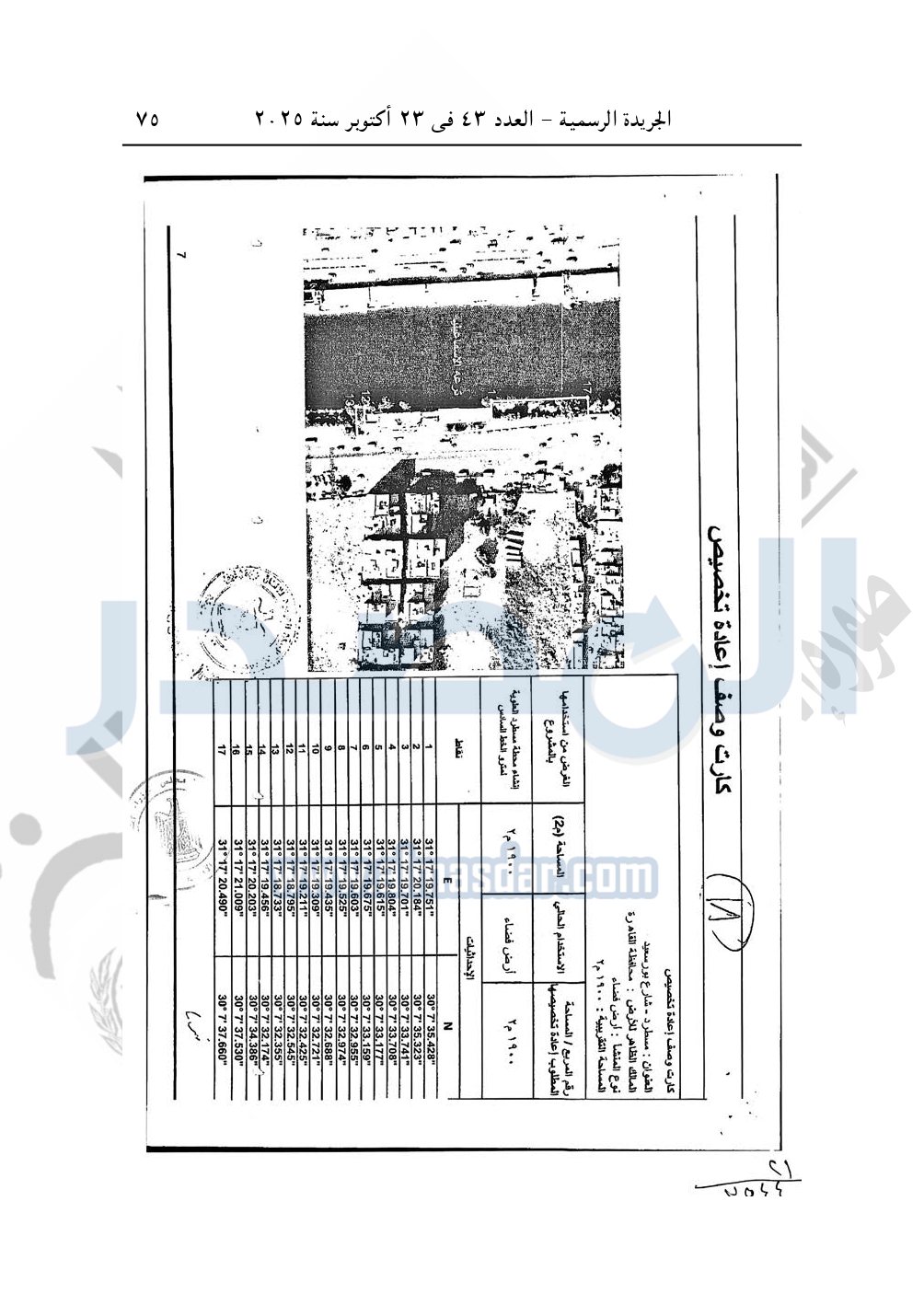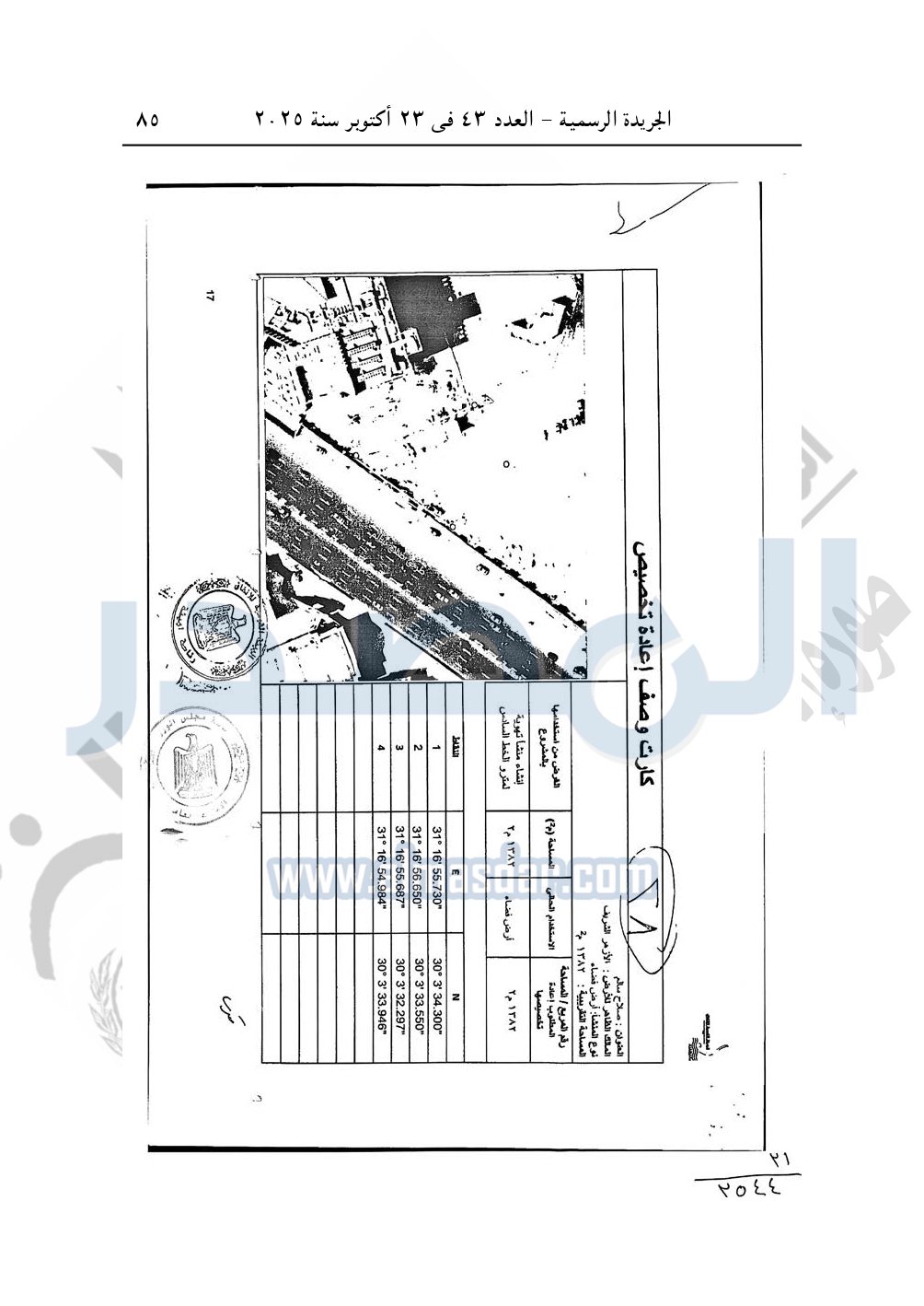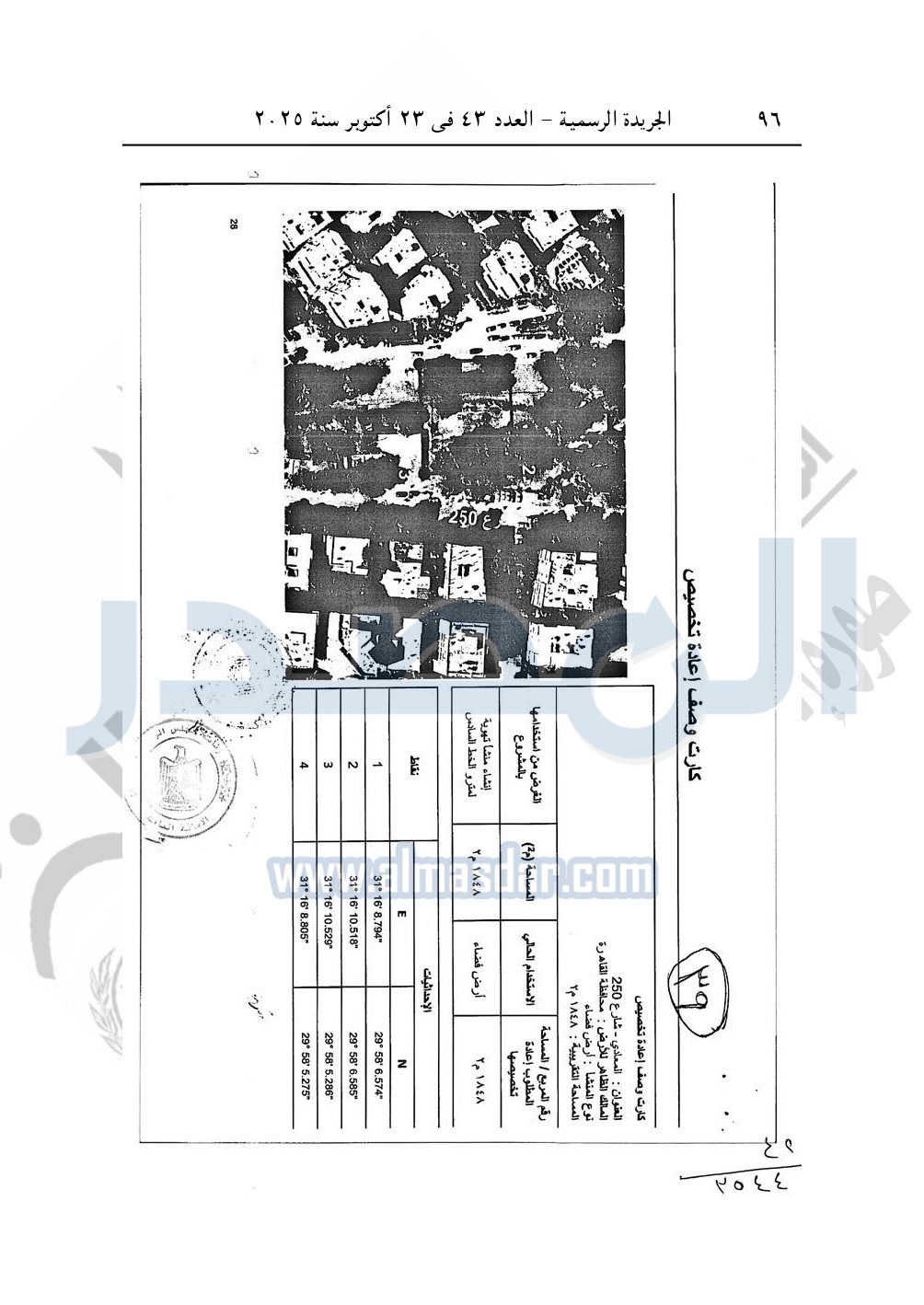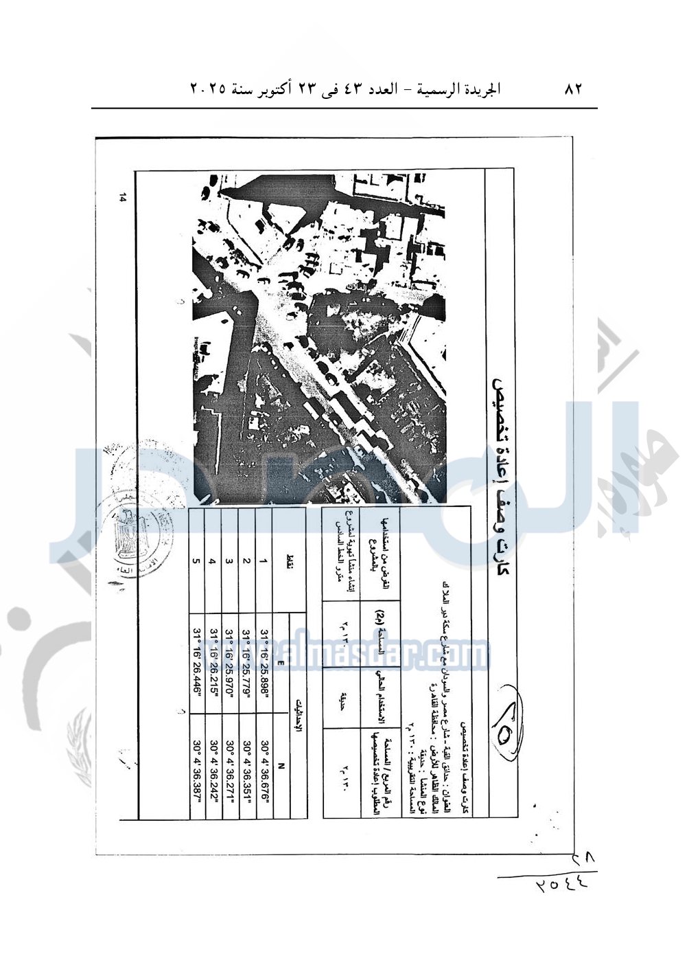 تخصيص الأراضى والعقارات المملوكة لجهات حكومية، والموضح بيانها، وملاكها الظاهرين بالخرائط المساحية والكشوف وكروت الوصف المرفقة، ويُعدل تخصيصها لصالح الهيئة القومية للأنفاق.