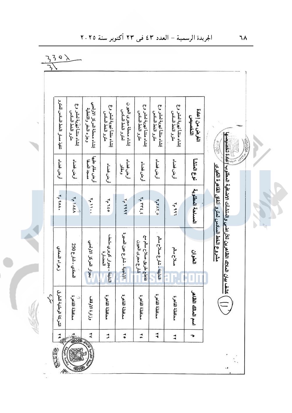 نزع ملكية أراضي وعقارات لتنفيذ مشروع إنشاء الخط السادس لمترو الأنفاق
