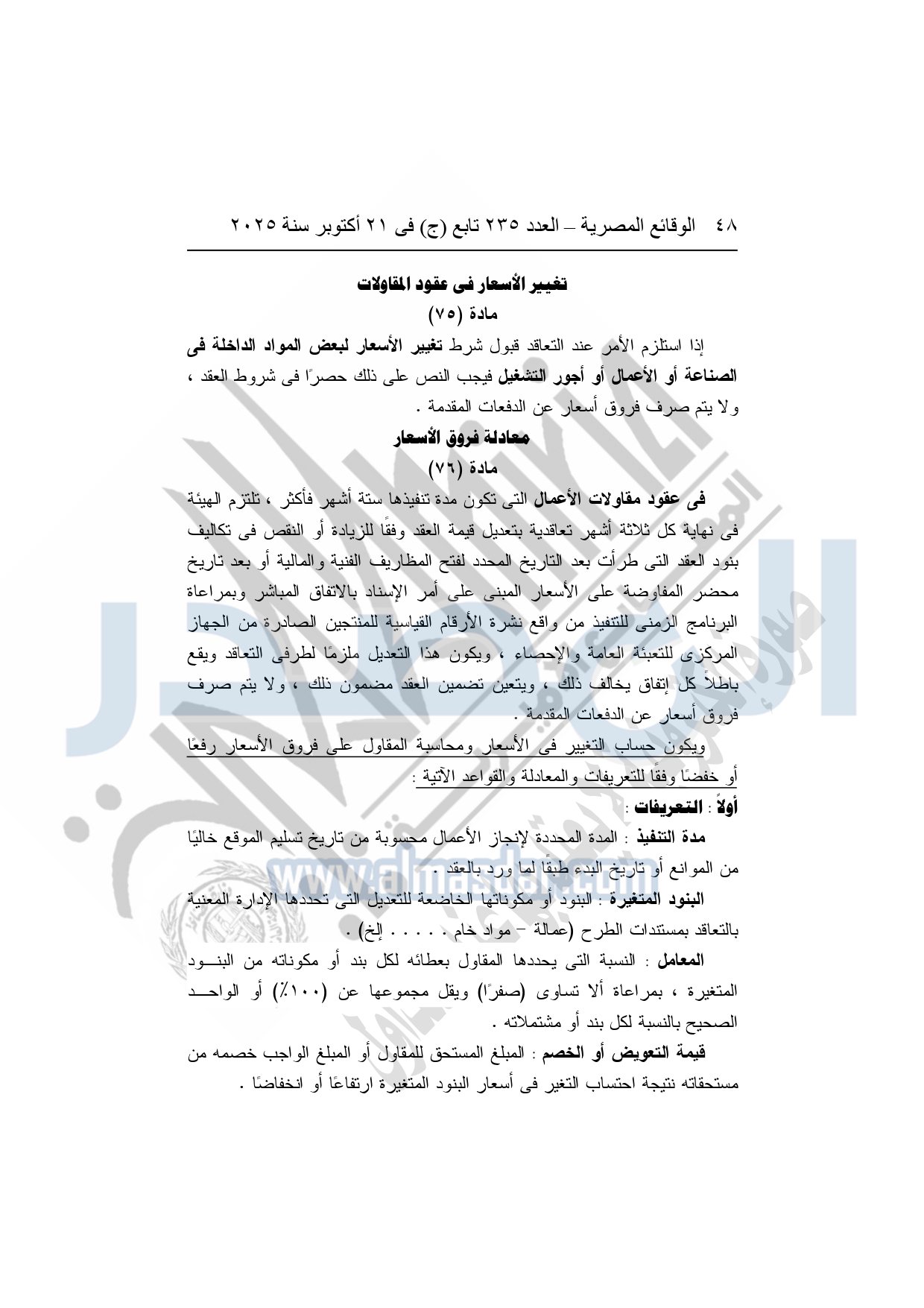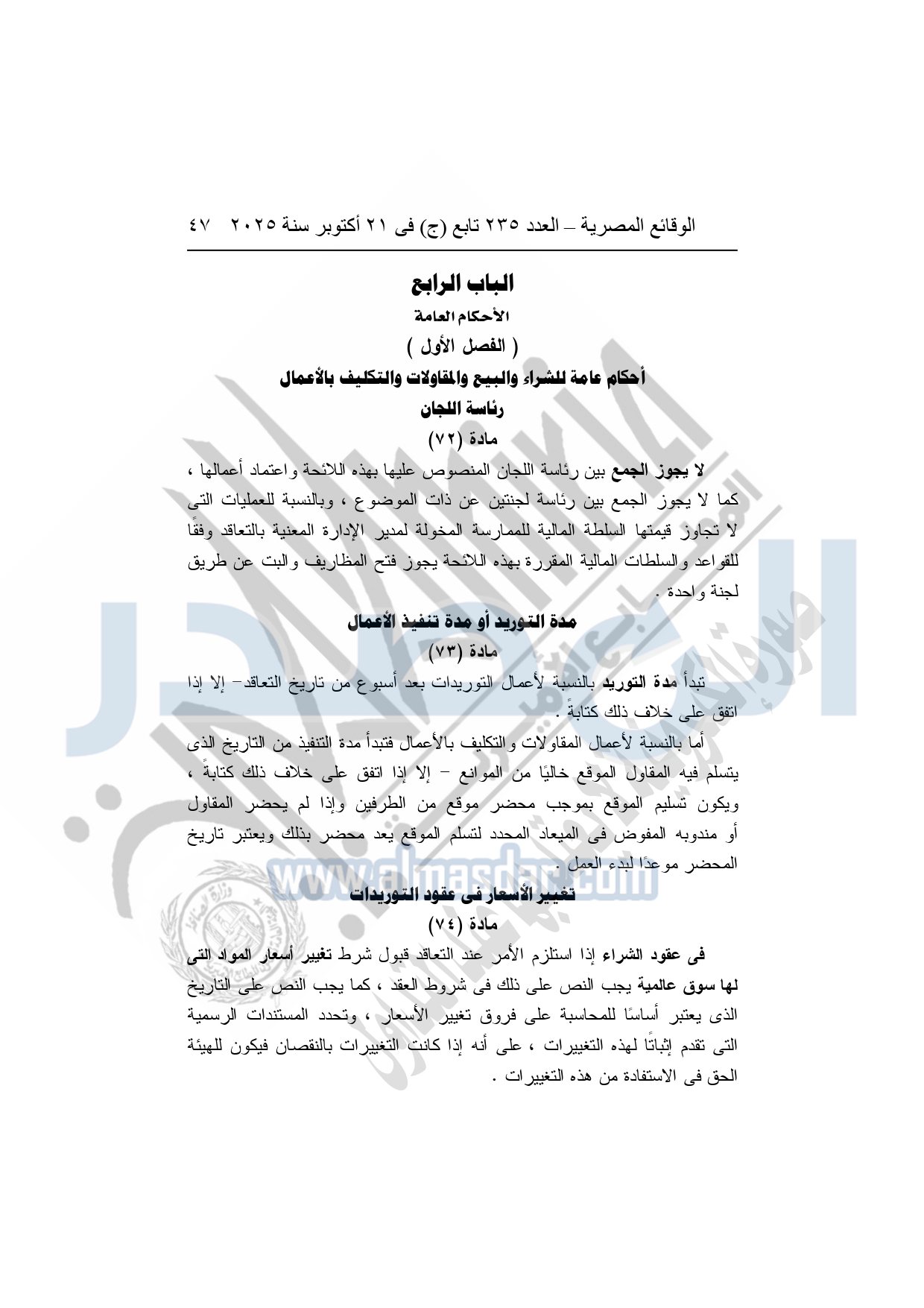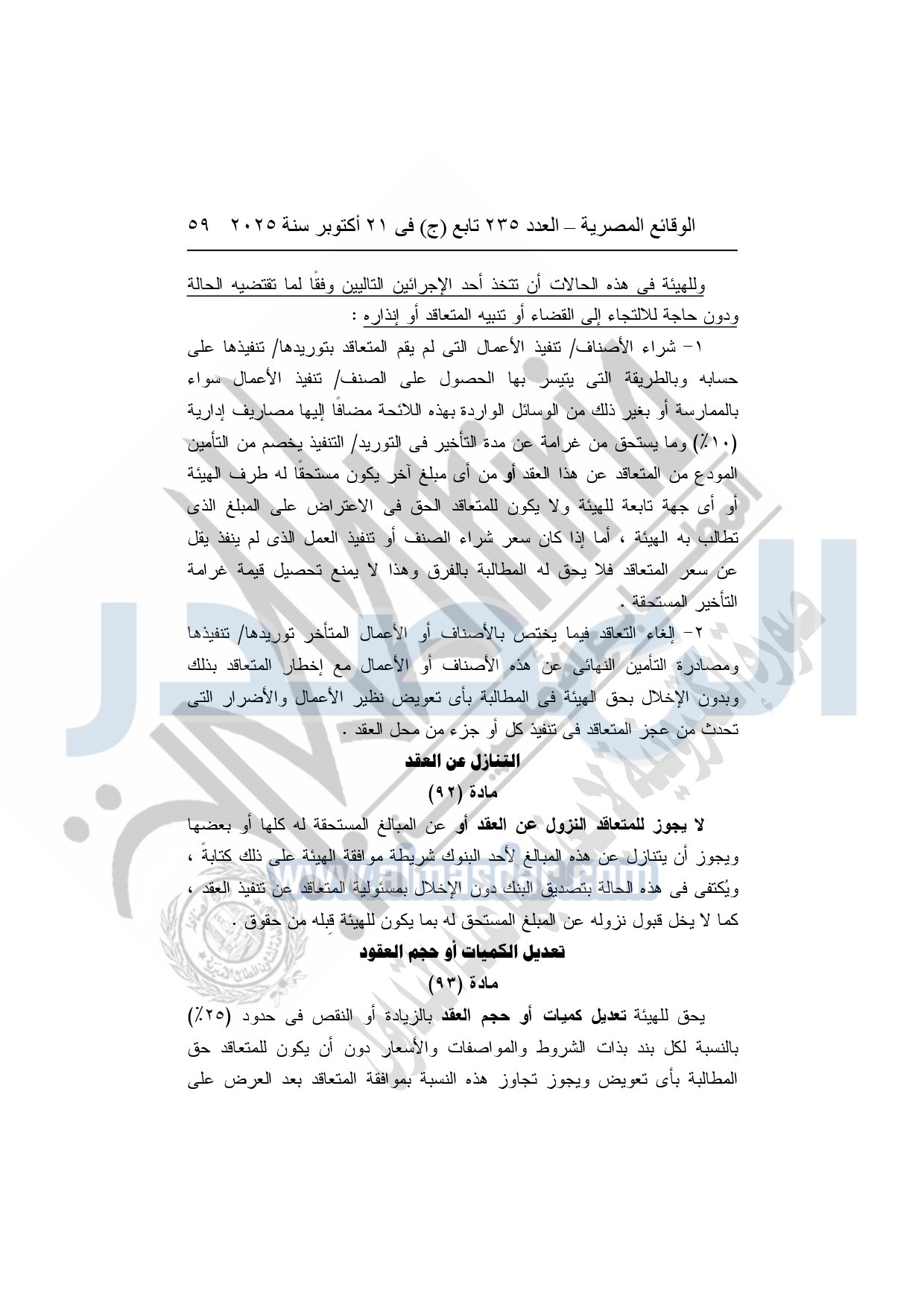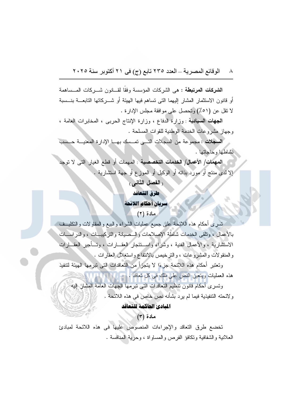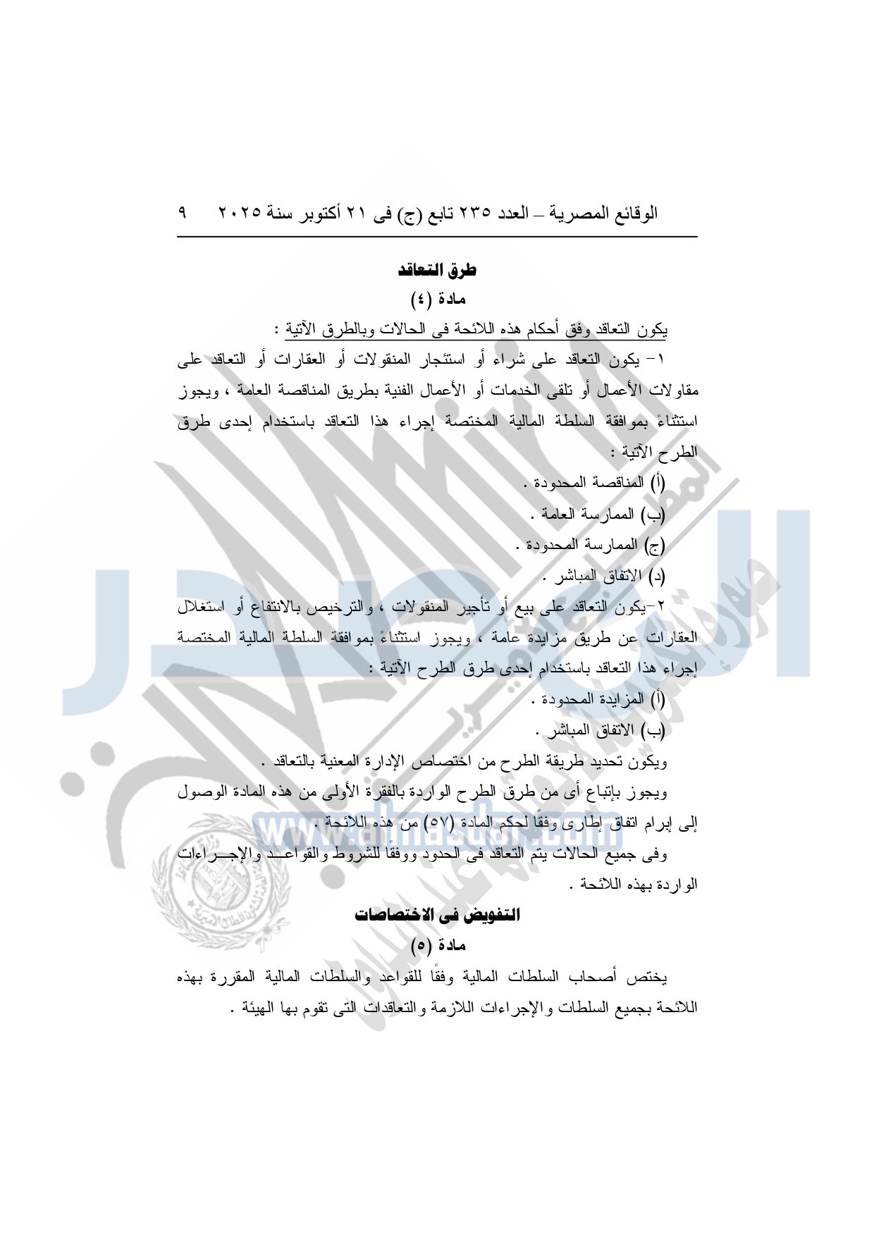 نشرت الوقائع المصرية في العدد 235 تابع "ج"، بتاريخ 21 أكتوبر 2025، قرار هيئة قناة السويس، رقم 1242 لسنة 2025، بشأن إصدار لائحة التعاقدات التي تبرمها هيئة قناة السويس.