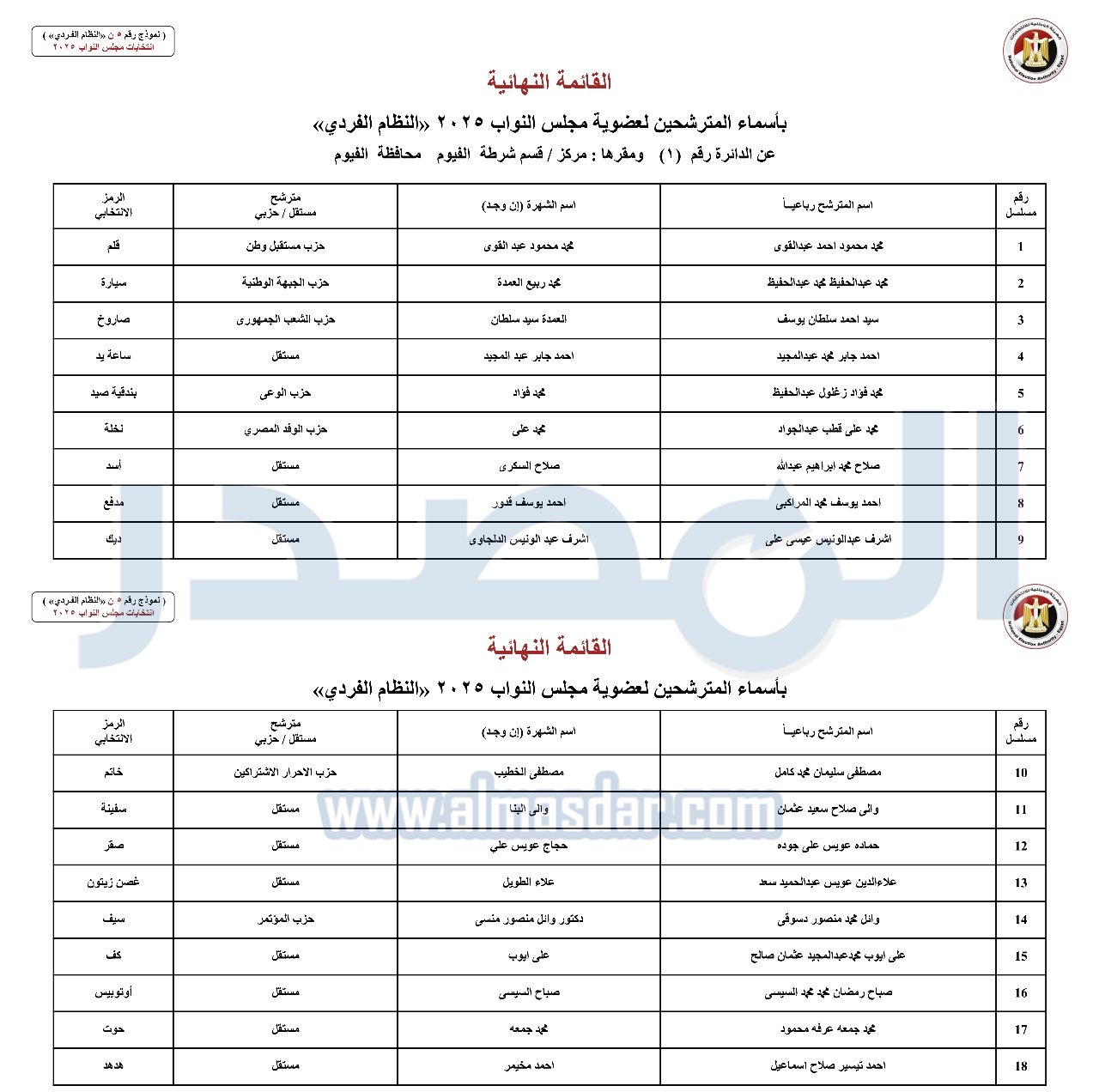 «المصدر» تنشر القائمة النهائية لمرشحي مجلس النواب عن النظام الفردى بمحافظة الفيوم