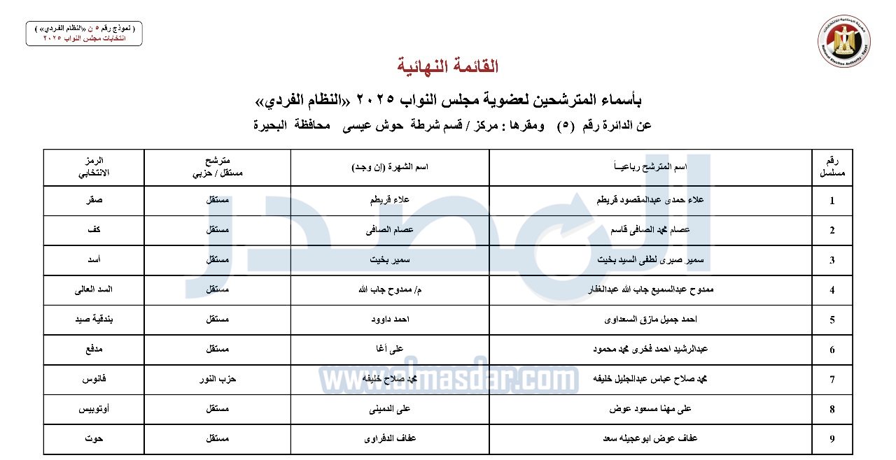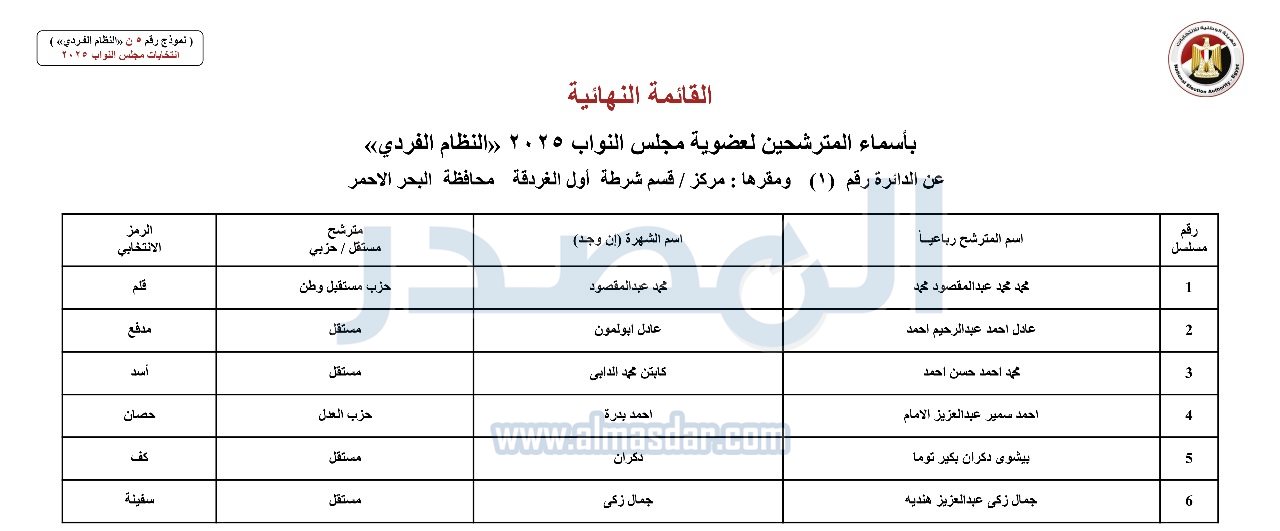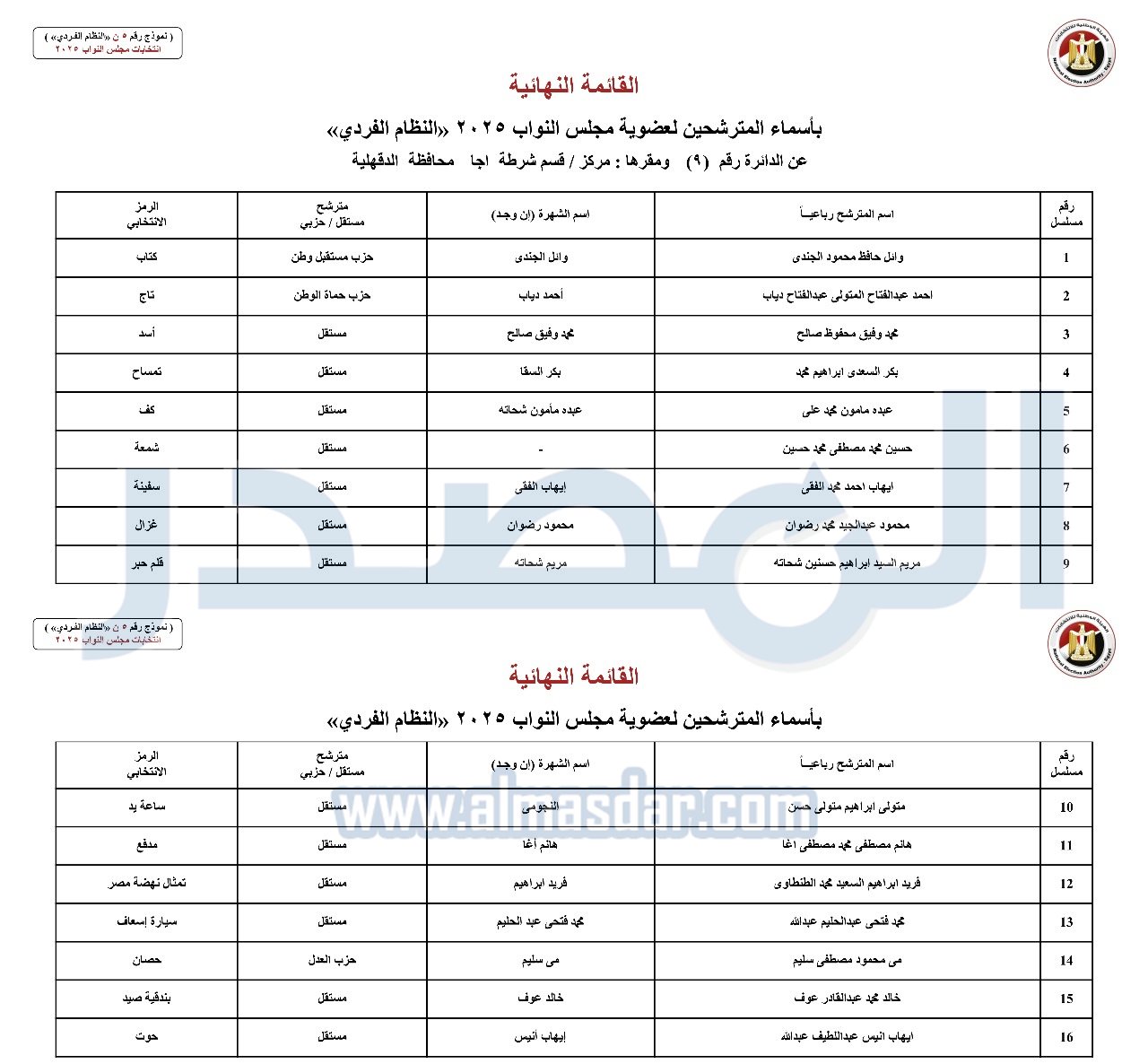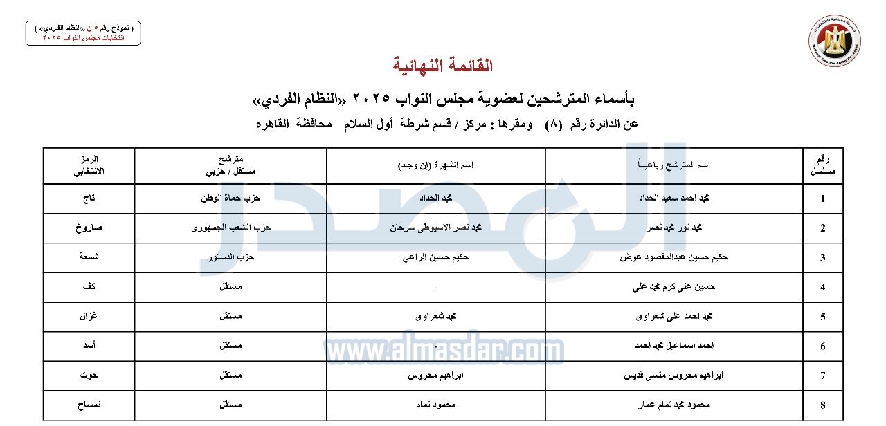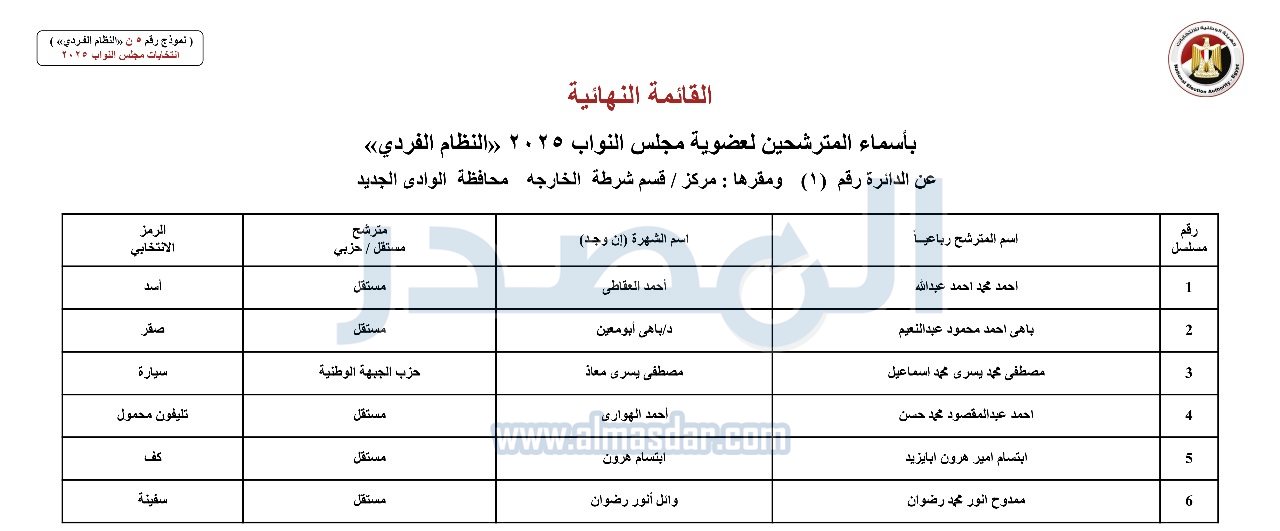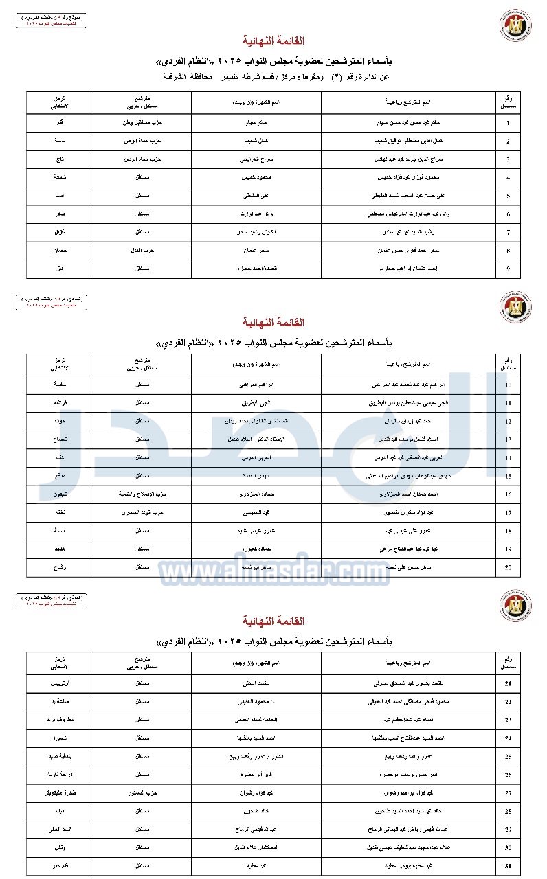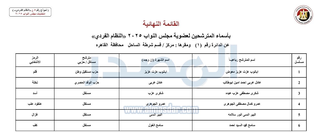 «المصدر» تنشر القائمة النهائية لمرشحى مجلس النواب 2025 على مستوى الجمهورية