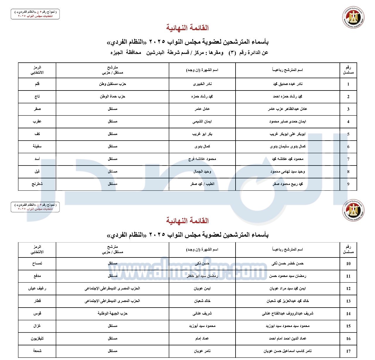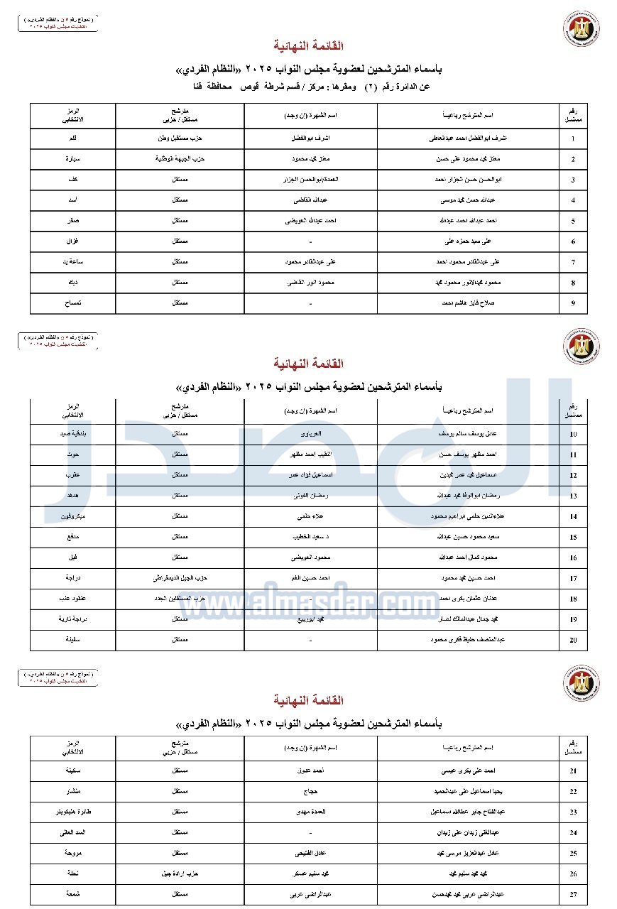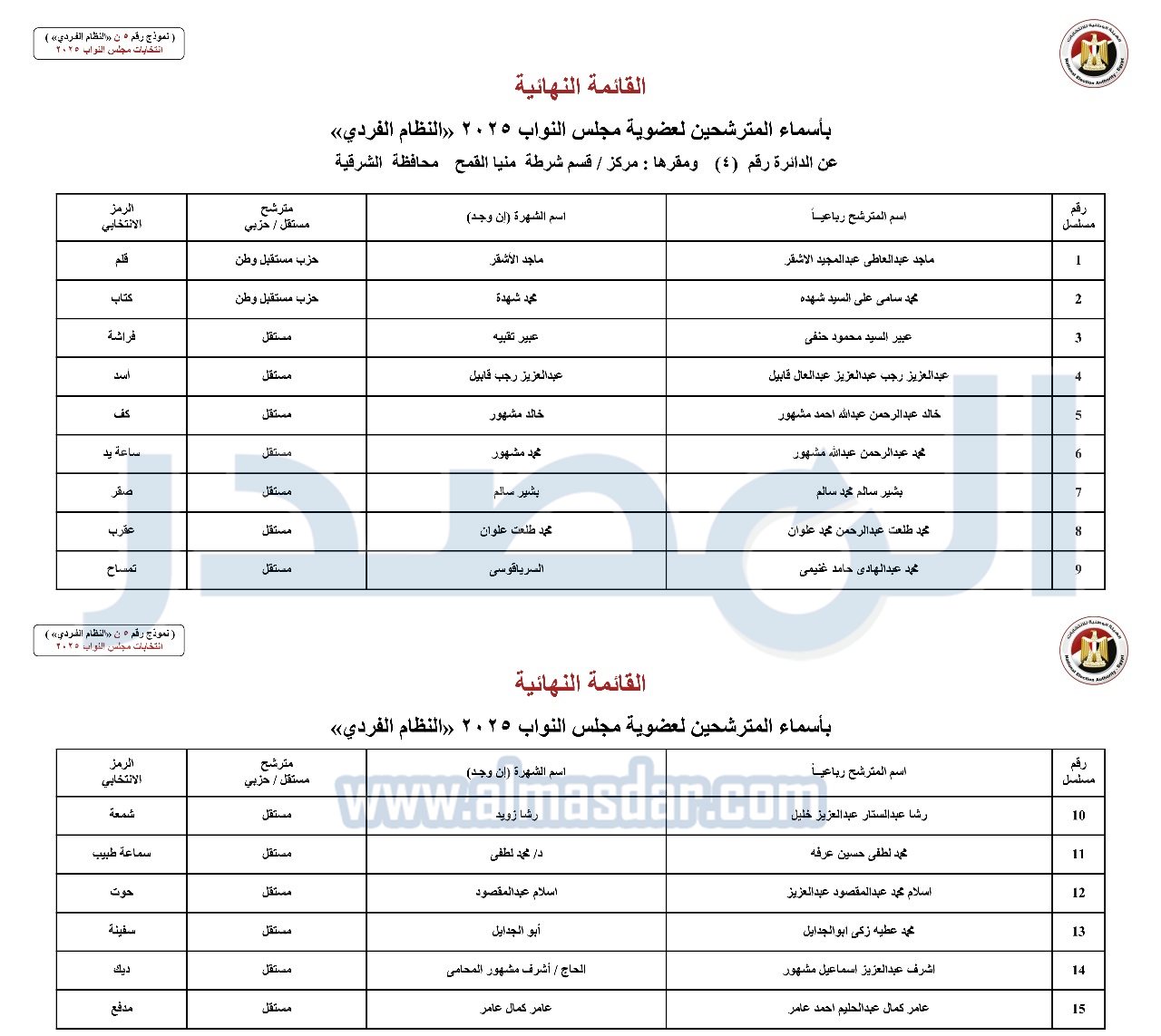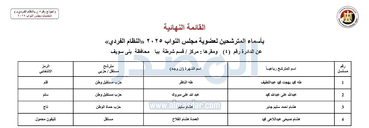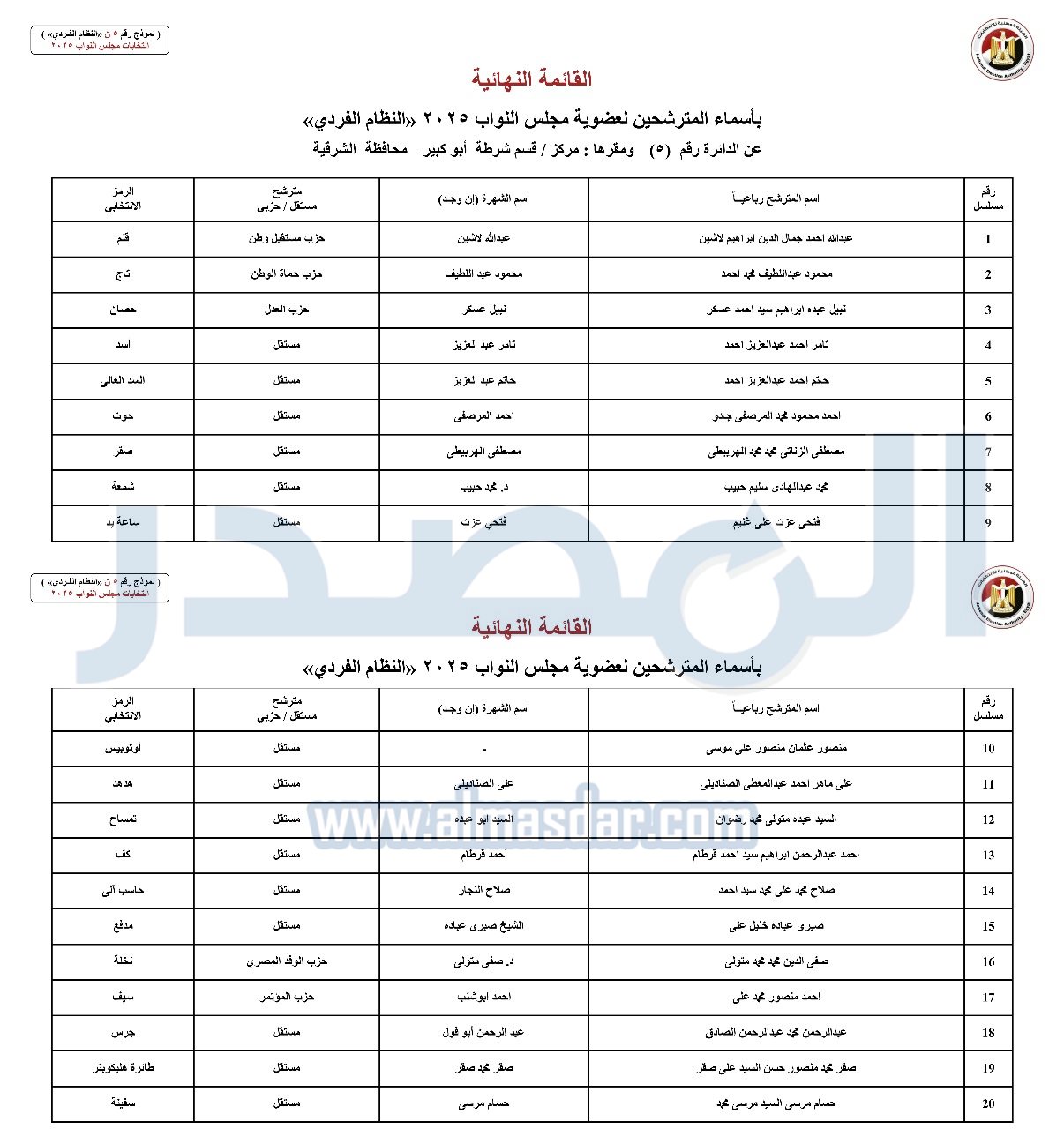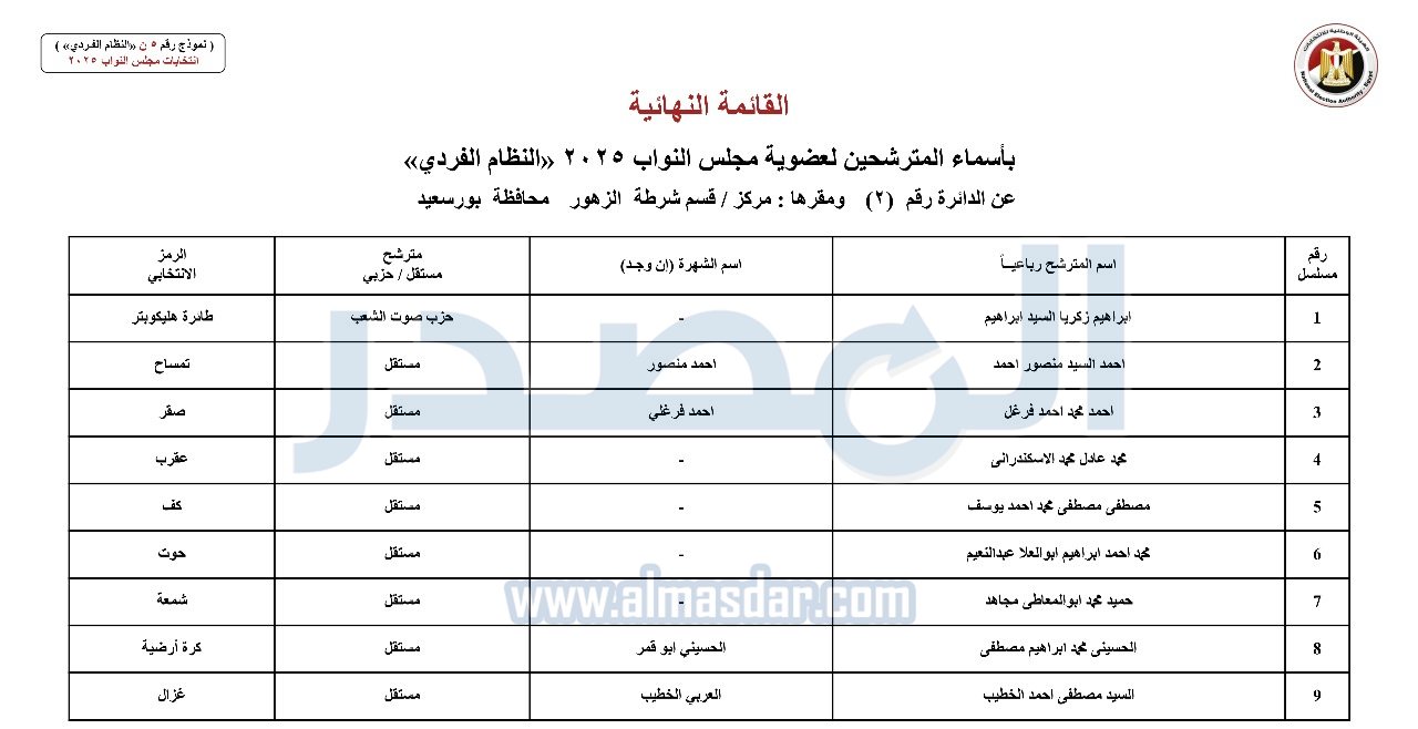 «المصدر» تنشر القائمة النهائية لمرشحى مجلس النواب 2025 على مستوى الجمهورية