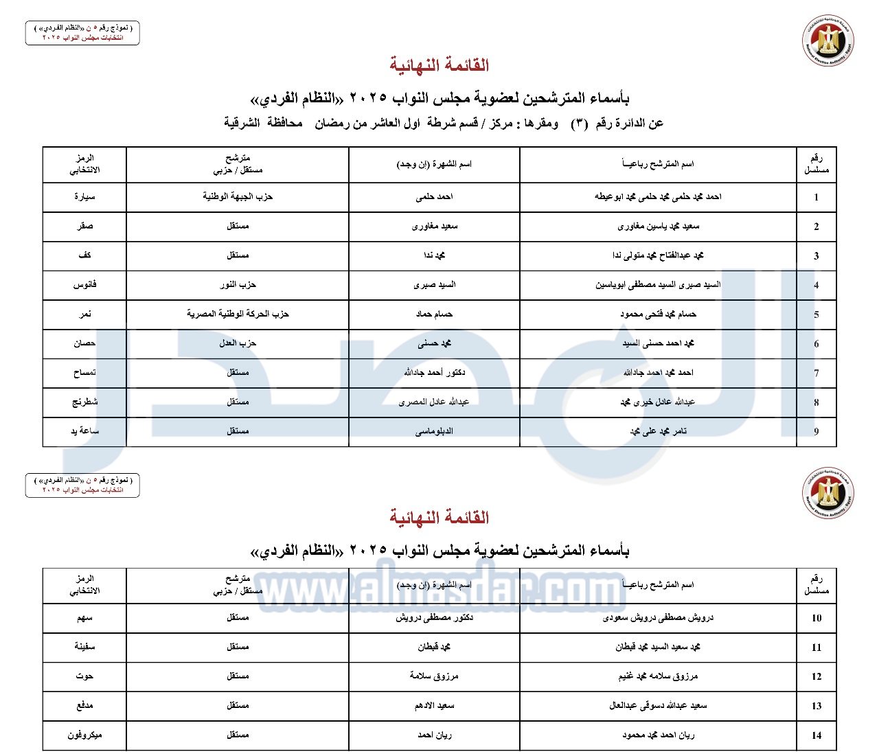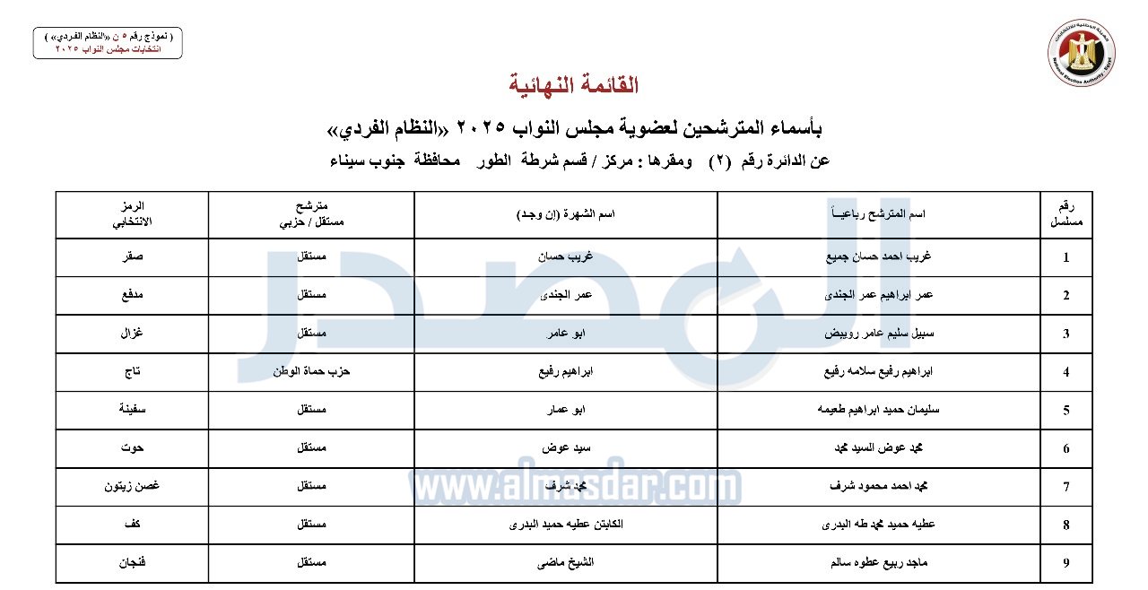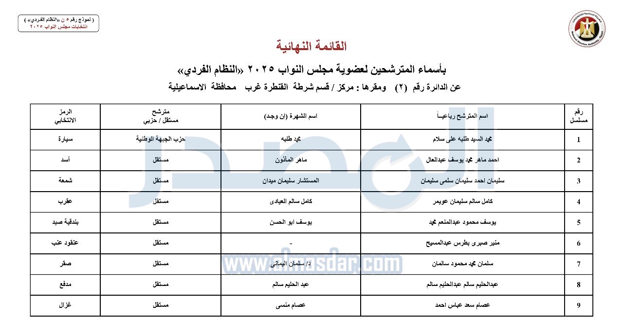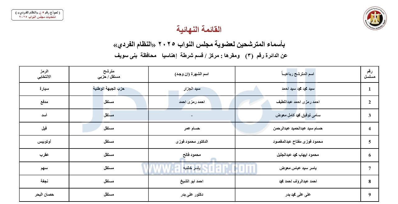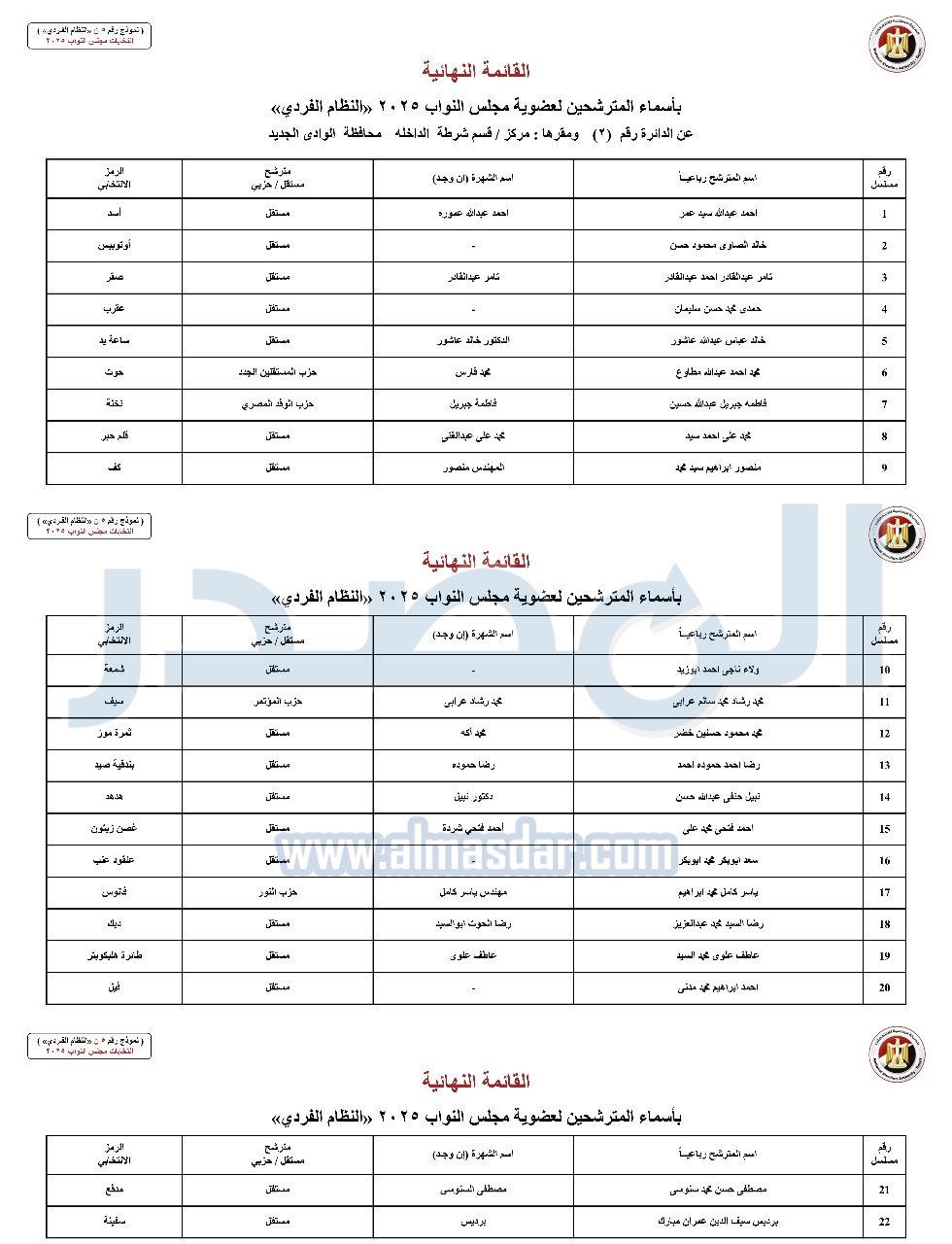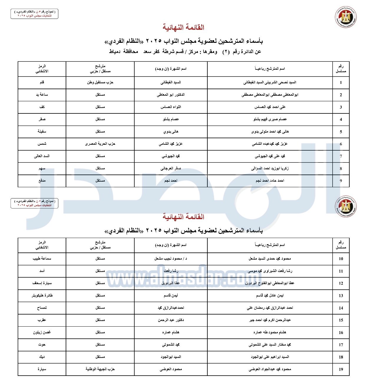 «المصدر» تنشر القائمة النهائية لمرشحى مجلس النواب 2025 على مستوى الجمهورية
