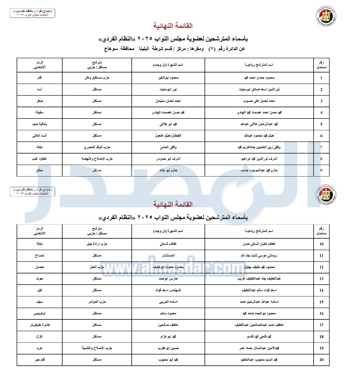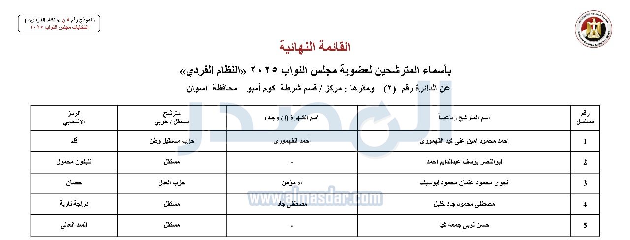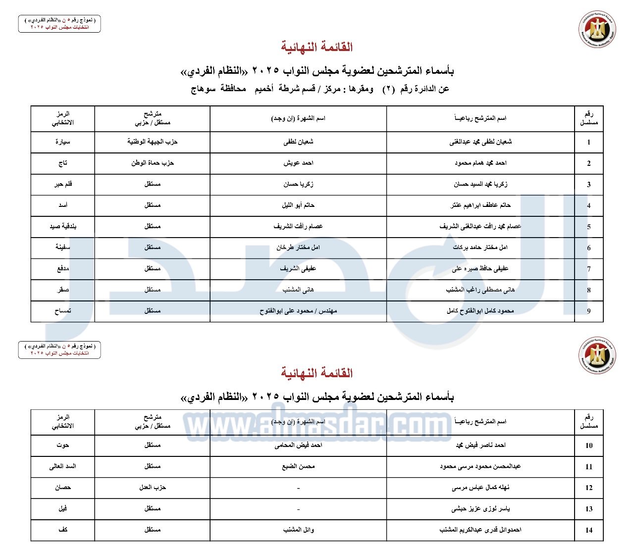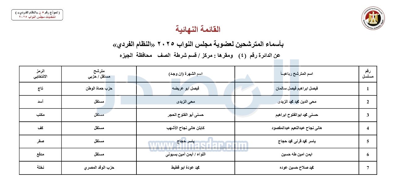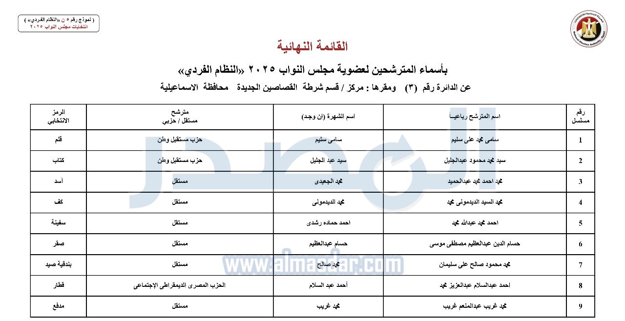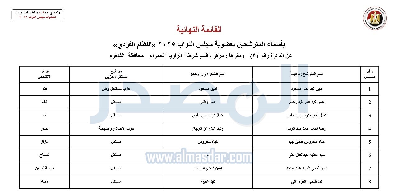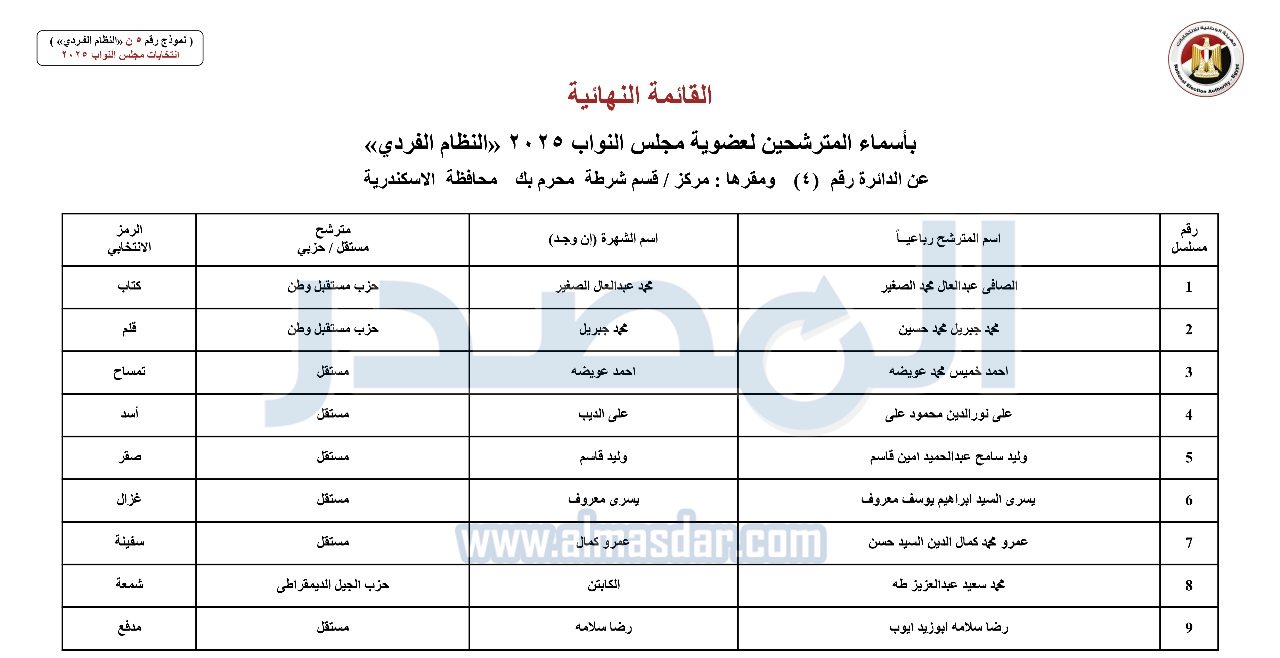 «المصدر» تنشر القائمة النهائية لمرشحى مجلس النواب 2025 على مستوى الجمهورية